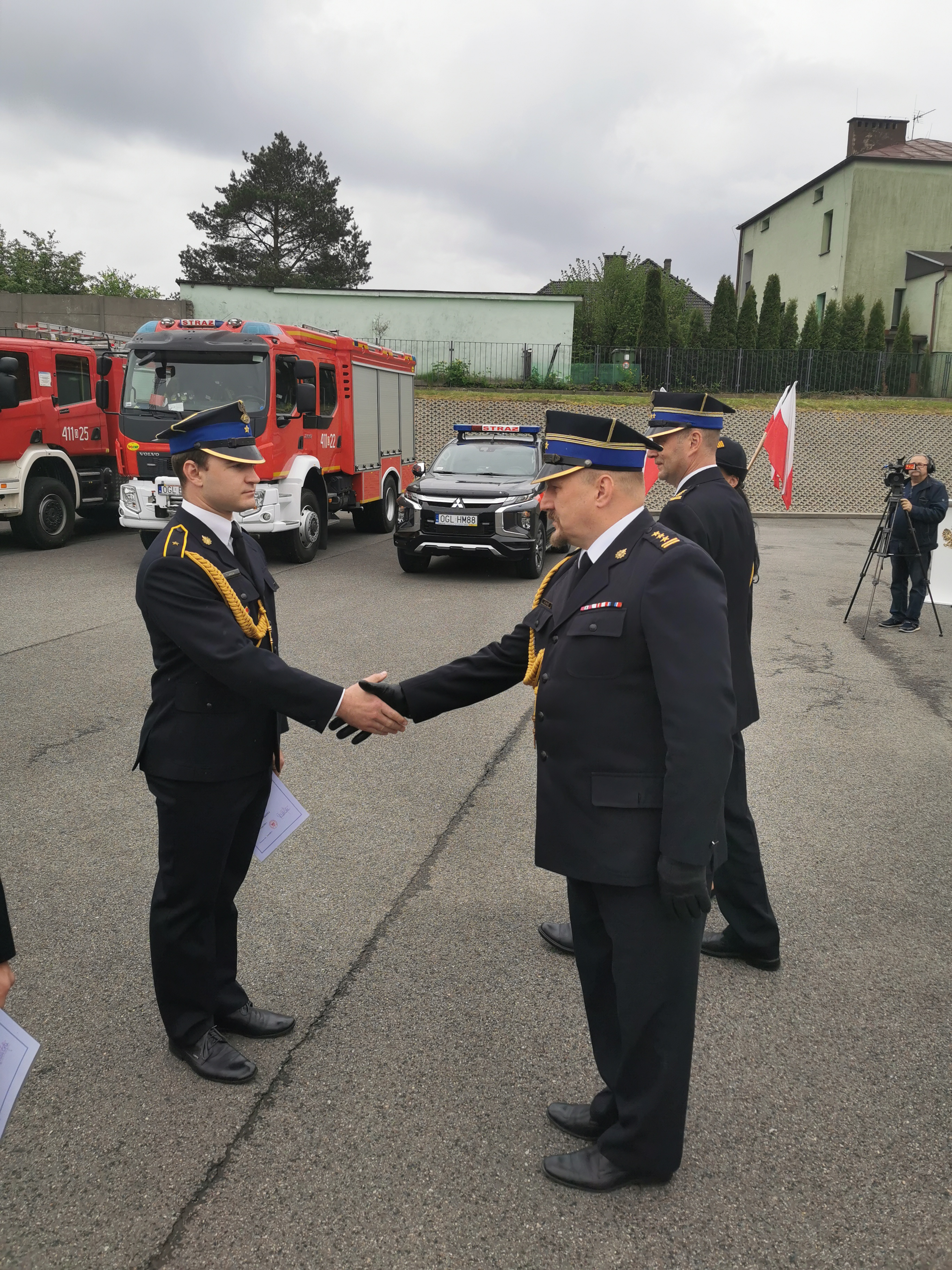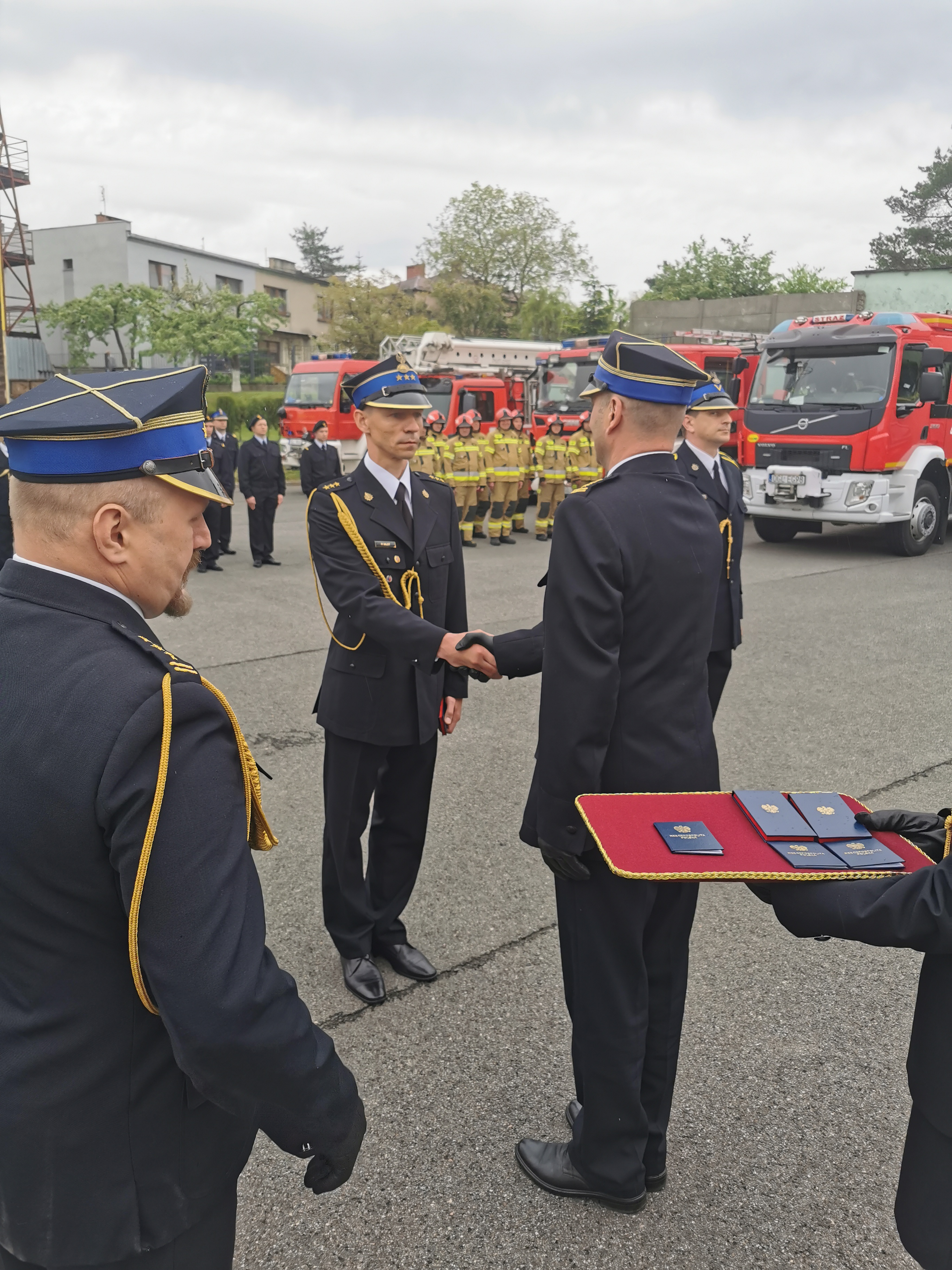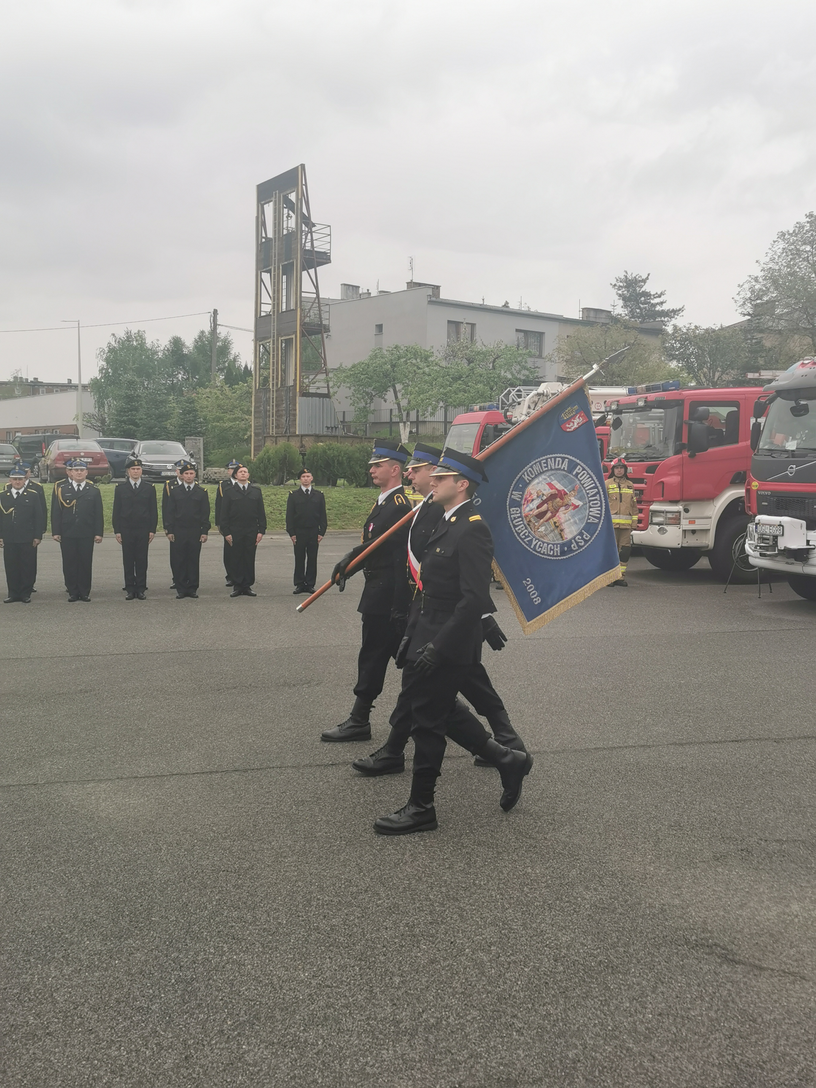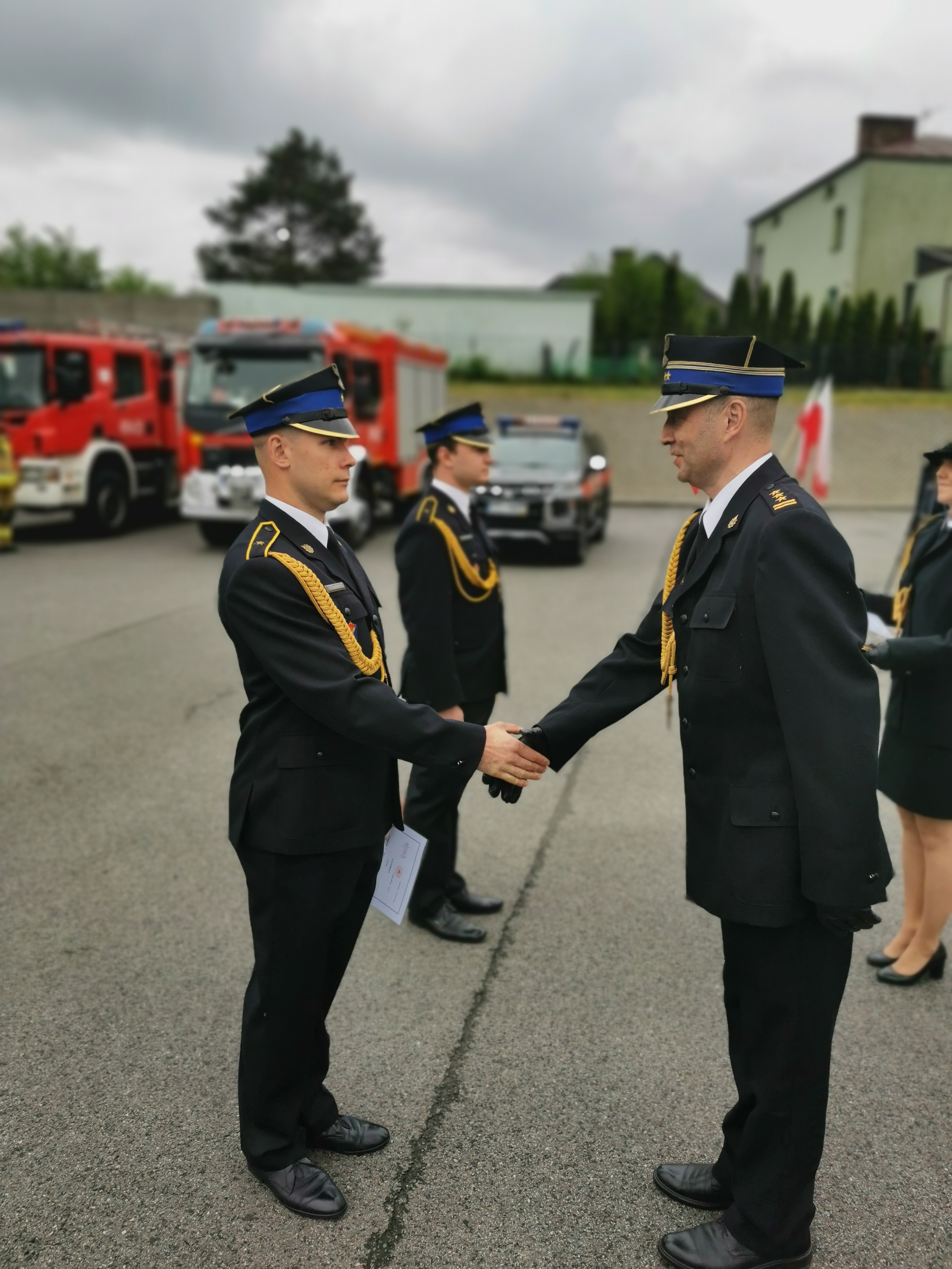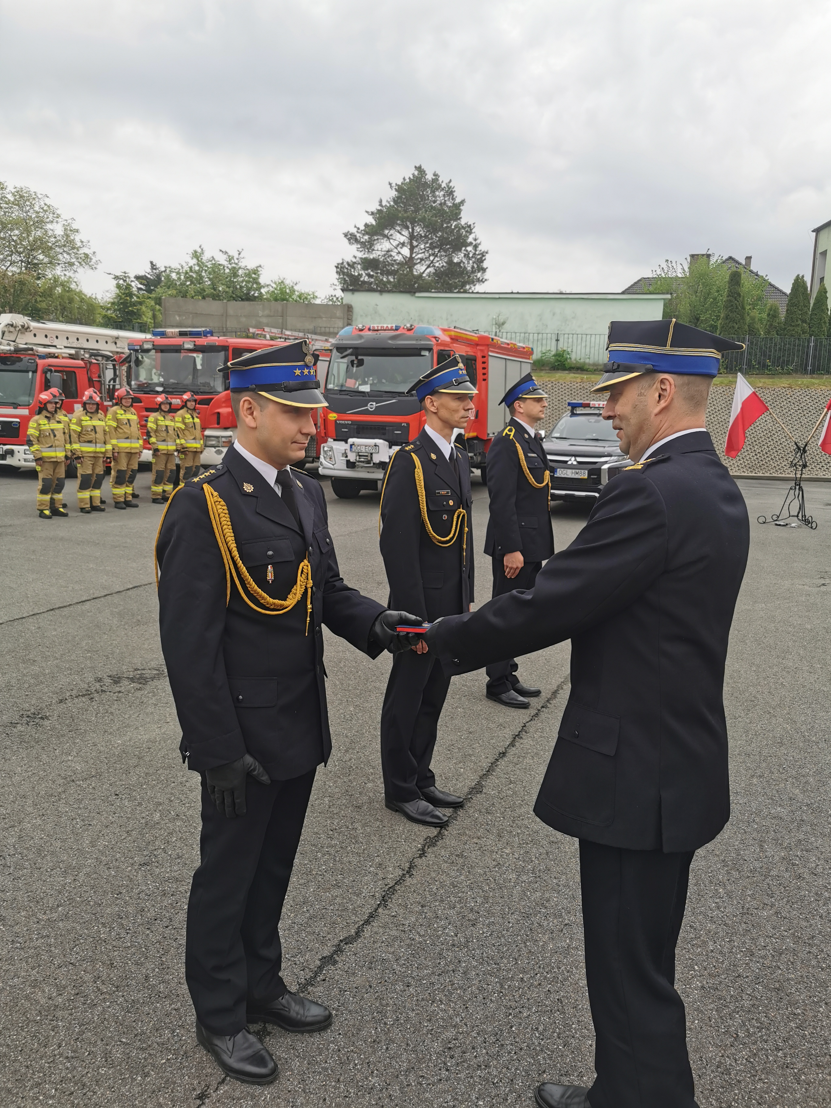 Uroczystość rozpoczęła się od złożenia meldunku Zastępcy Opolskiego Komendanta Wojewódzkiego PSP st. bryg. Arkadiuszowi Kuśmierskiemu przez dowódcę uroczystości st. kpt. Mateusza Szymusia.