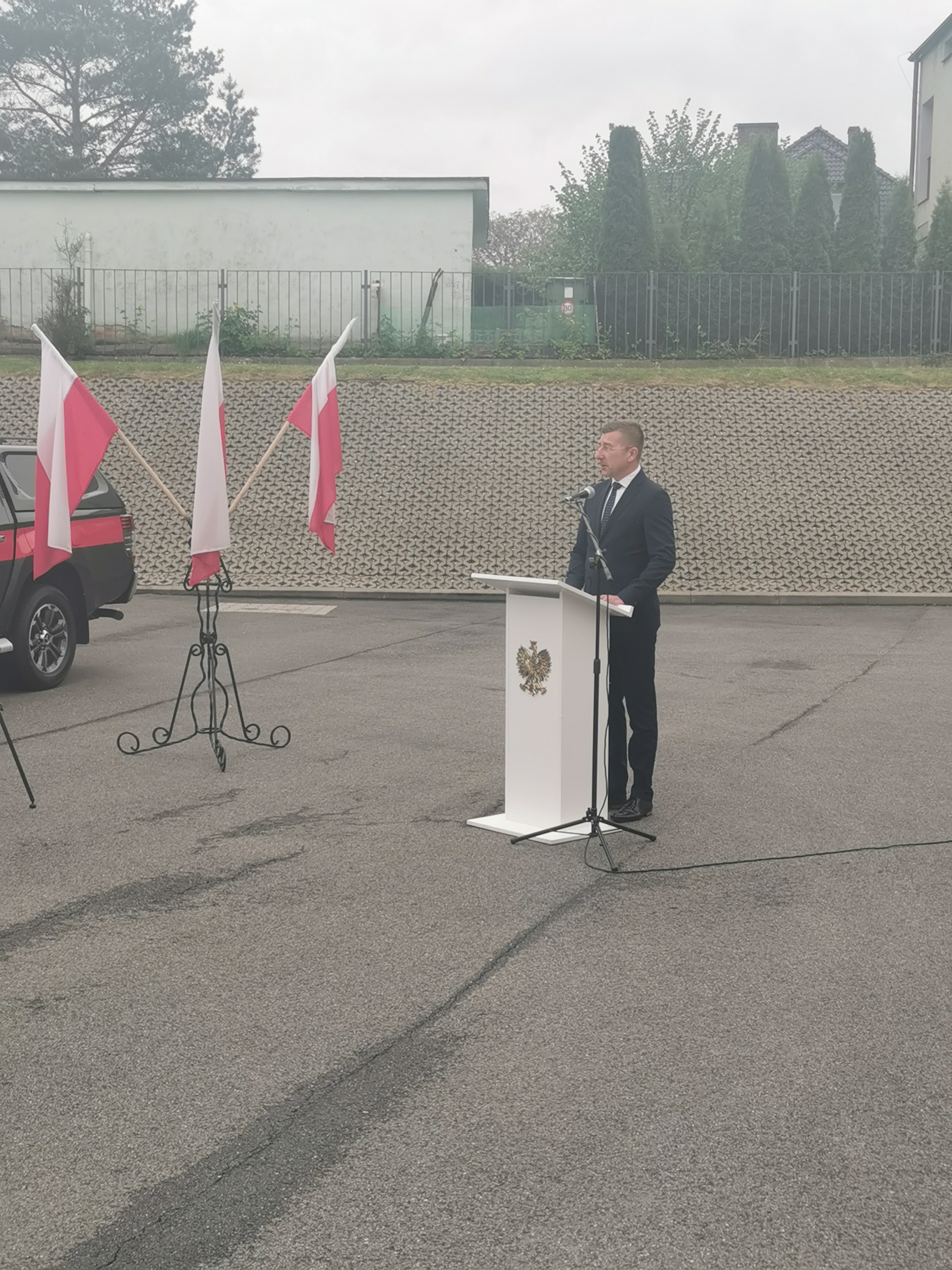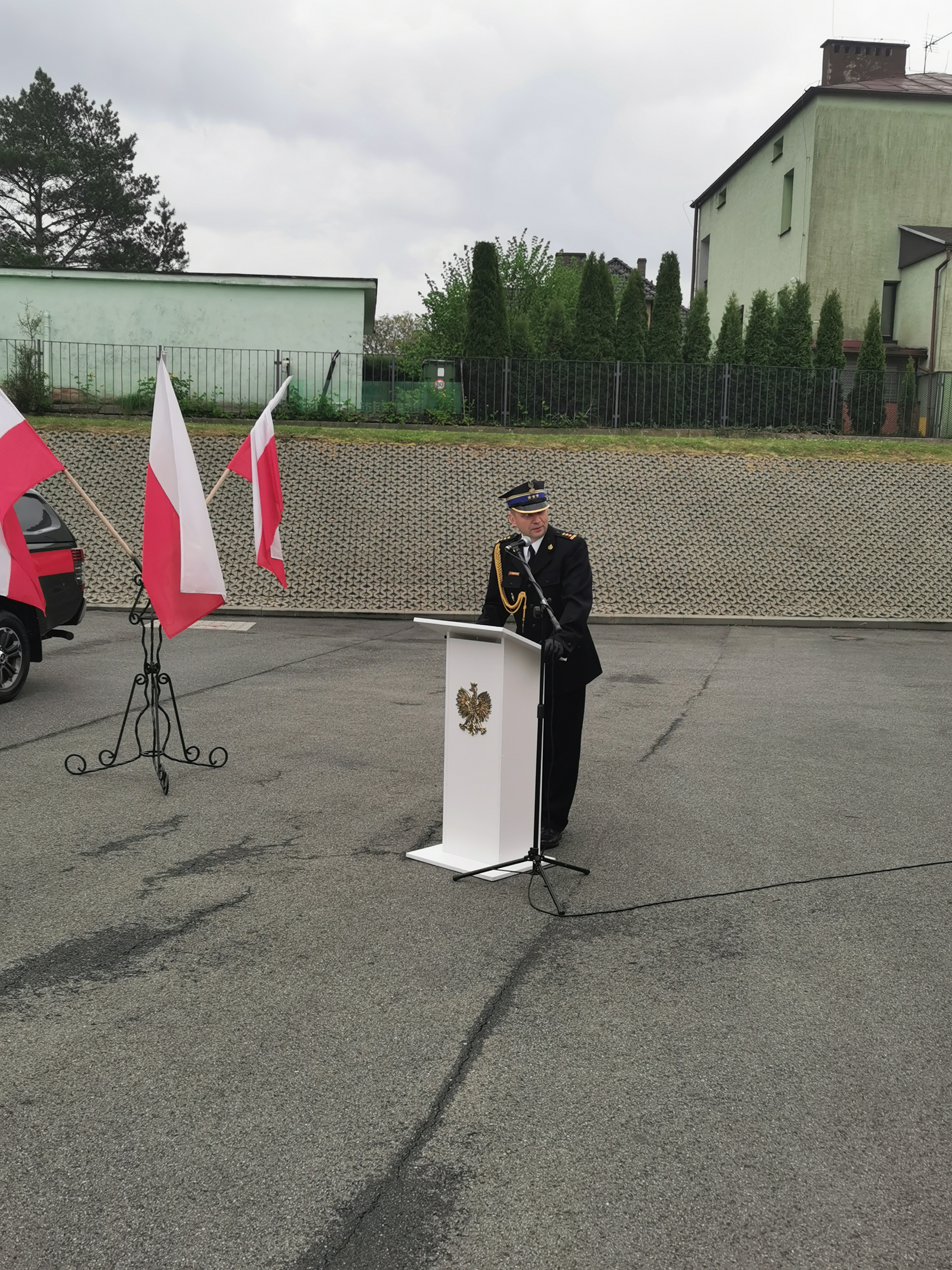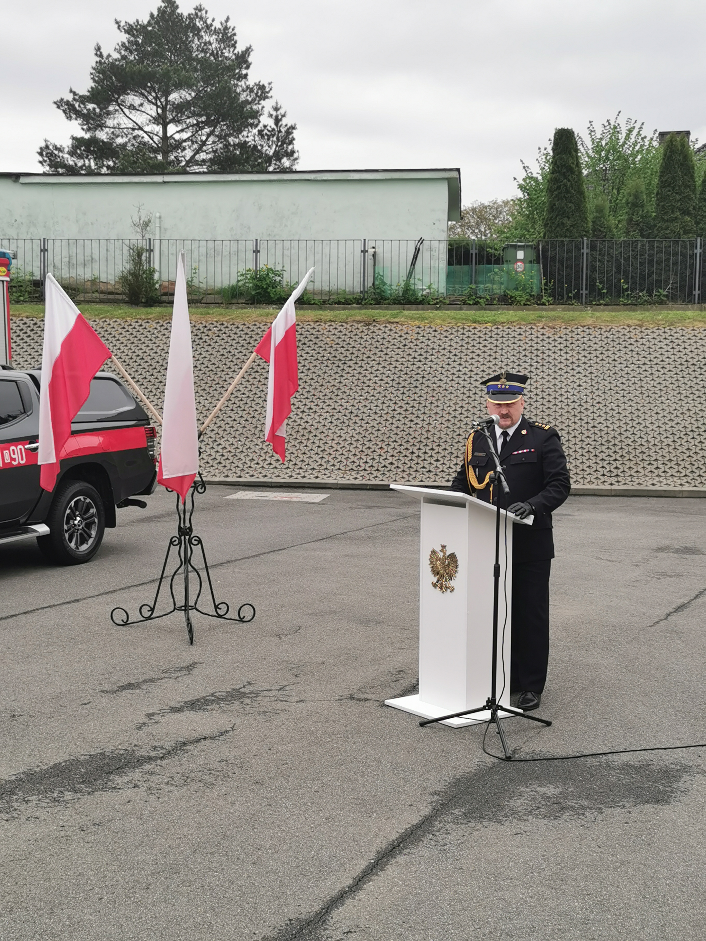 Po uroczystym podniesieniu flagi narodowej i odśpiewaniu hymnu państwowego, zgromadzonych gości oraz funkcjonariuszy i pracowników przywitał st. bryg. Wojciech Semeniuk Komendant Powiatowy PSP w Głubczycach, prosząc na wstępie o uczczenie minutą ciszy pamięci strażaków, którzy odeszli na wieczną służbę. W dalszej części swojego wystąpienia, szef głubczyckich strażaków podsumował miniony rok, zwracając szczególną uwagę na specyficzny charakter ostatnich 12 miesięcy, które upłynęły w obliczu walki z pandemią COVID-19. Szczere podziękowania popłynęły do strażaków Państwowej i Ochotniczej Straży Pożarnej powiatu głubczyckiego, których zaangażowanie, poświęcenie i determinacja, podczas ratowania życia, zdrowia i mienia ludzkiego zasługują na słowa najwyższego uznania. Zwracając się do zaproszonych gości, komendant Semeniuk wyraził ogromną wdzięczność za Ich wyrozumiałość, przychylność i pomoc, na którą zawsze mogą liczyć głubczyccy strażacy.