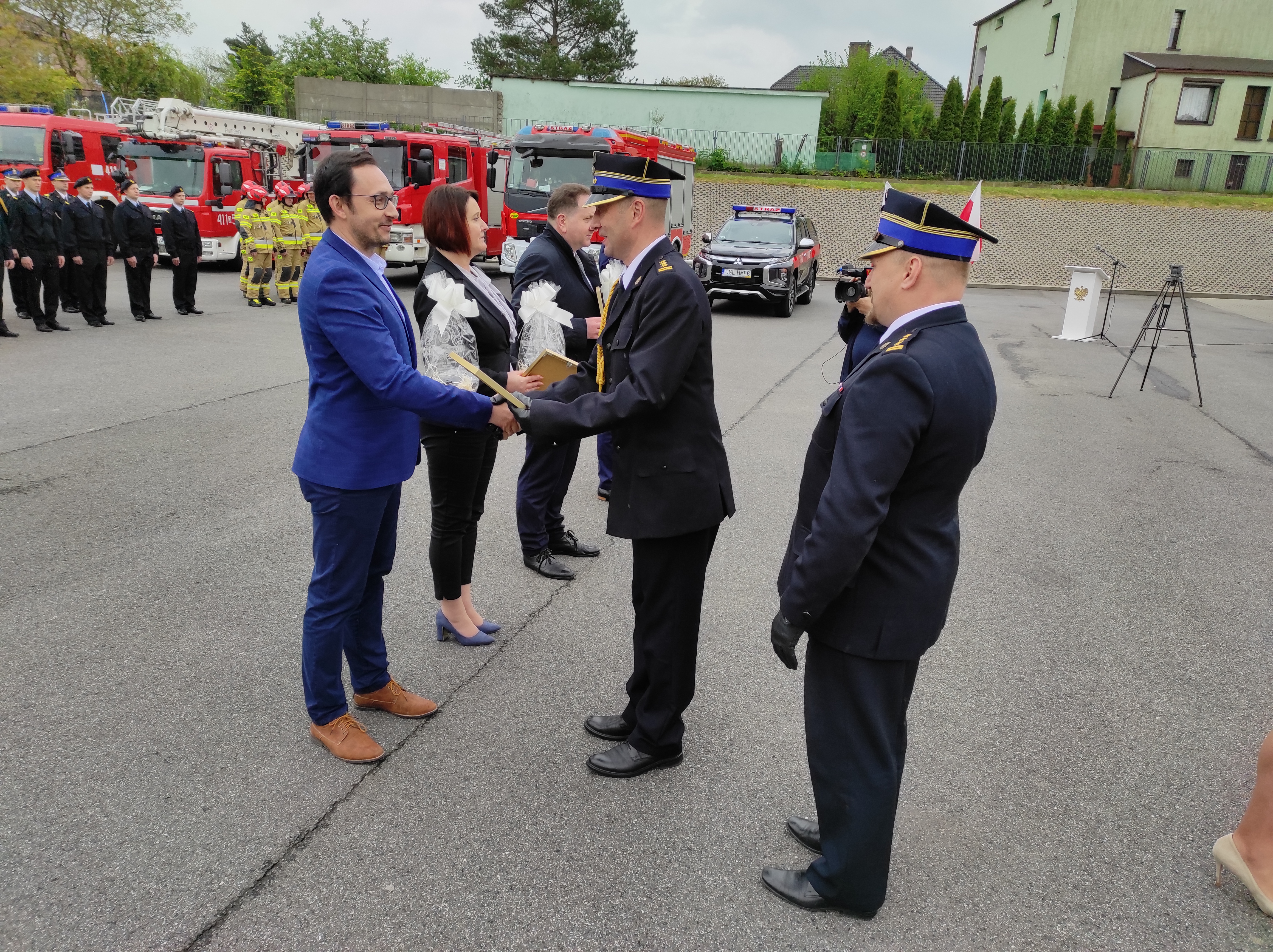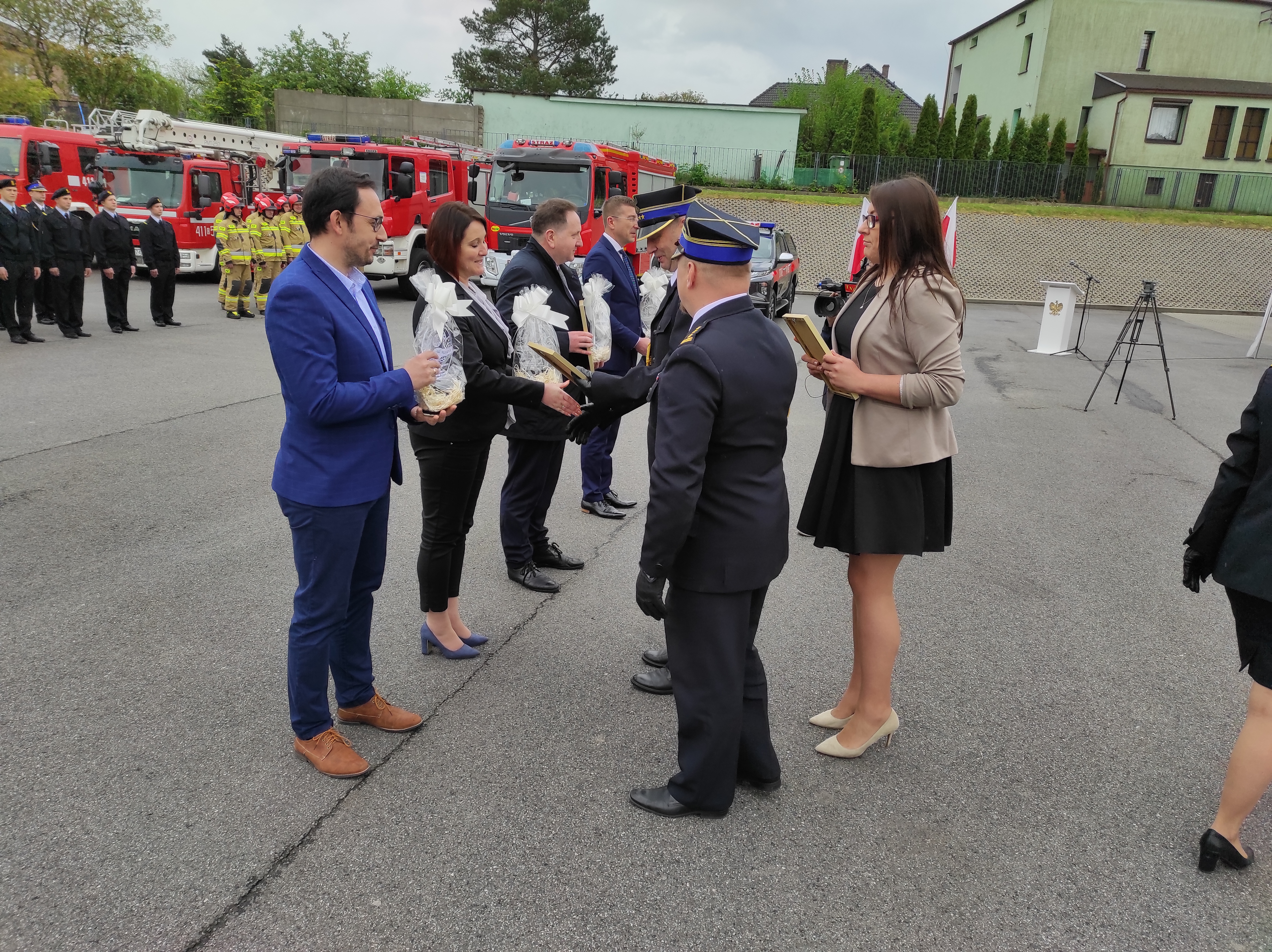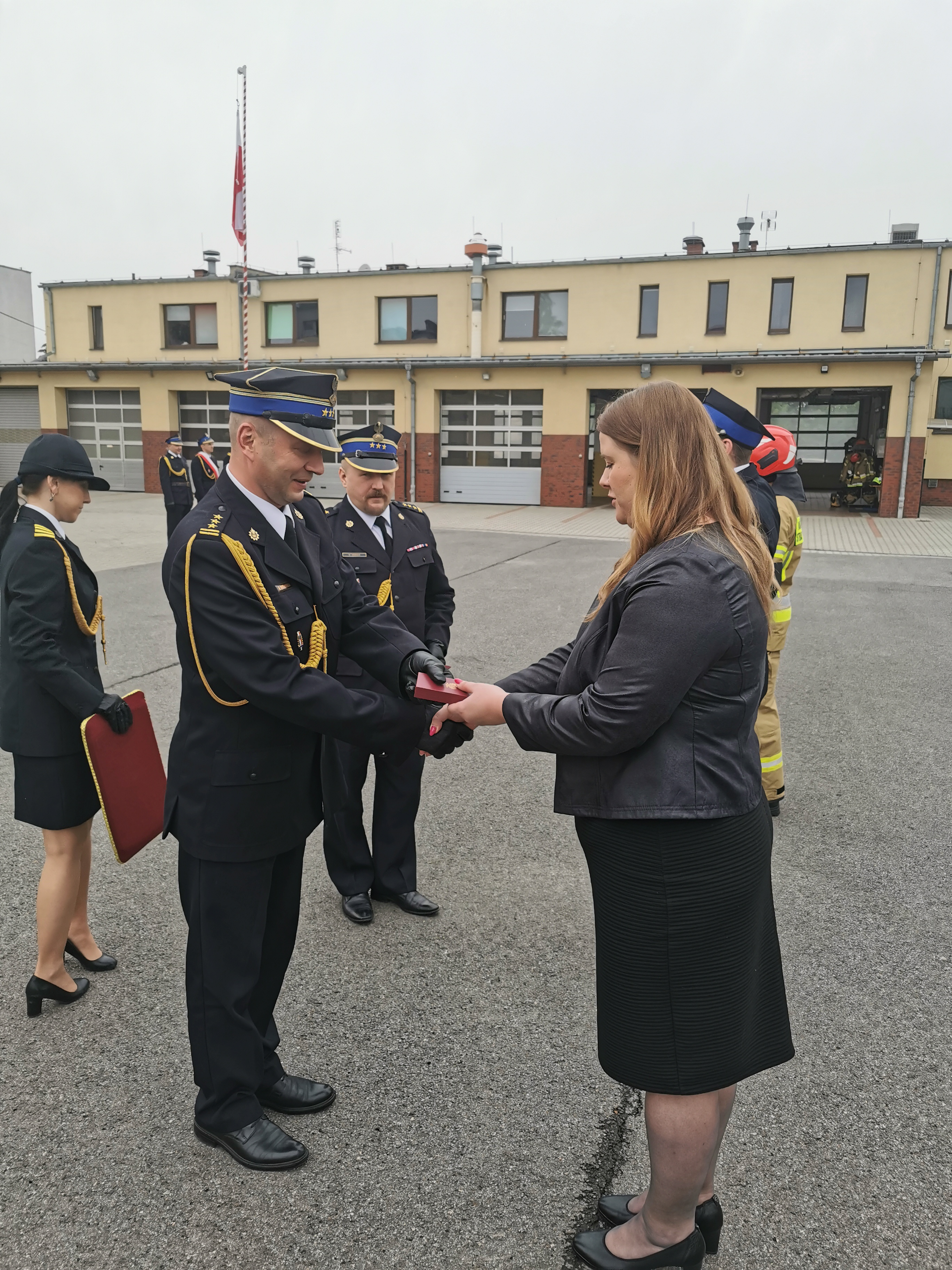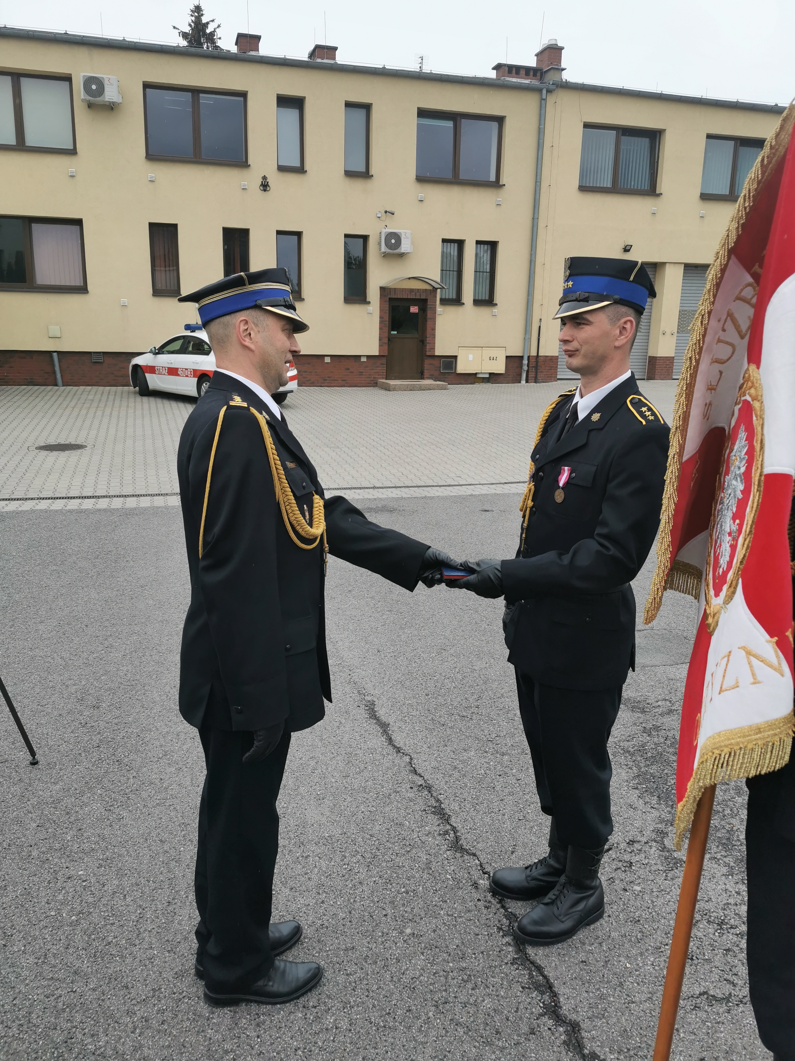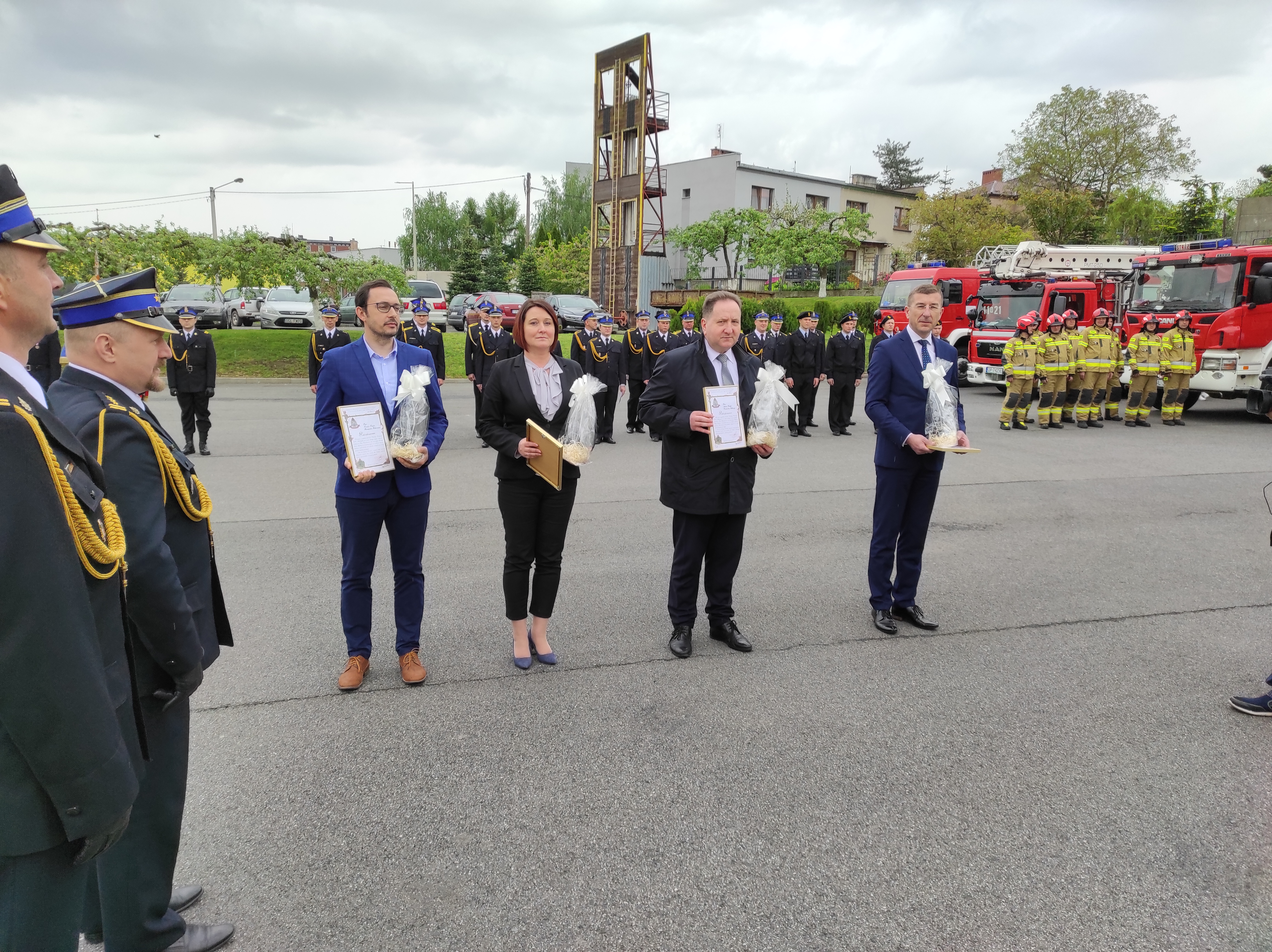 W dalszej części uroczystości odczytano treść listów okolicznościowych, po których nastąpił moment wręczenia strażakom i pracownikom KP PSP w Głubczycach odznaczeń i wyróżnień, a także aktów awansowych o nadaniu wyższych stopni służbowych. Podczas uroczystości wręczono również pamiątkowe statuetki oraz podziękowania dla reprezentantów instytucji samorządowych, które w 2020 r. w ramach funduszu wparcia PSP współfinansowały realizację zakupu nowego samochodu operacyjnego dla tutejszej JRG.
