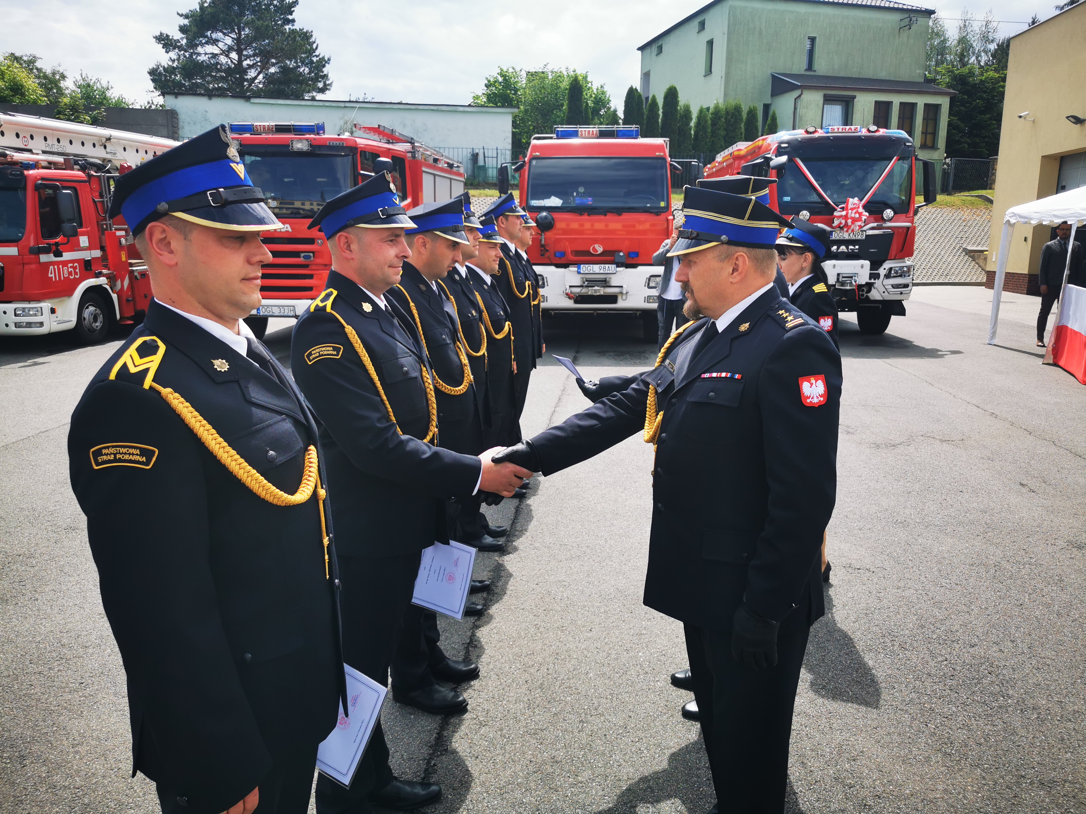 W dalszej części uroczystości nastąpił moment wręczenia strażakom KP PSP w Głubczycach odznaczeń i wyróżnień, a także aktów awansowych o nadaniu wyższych stopni służbowych.