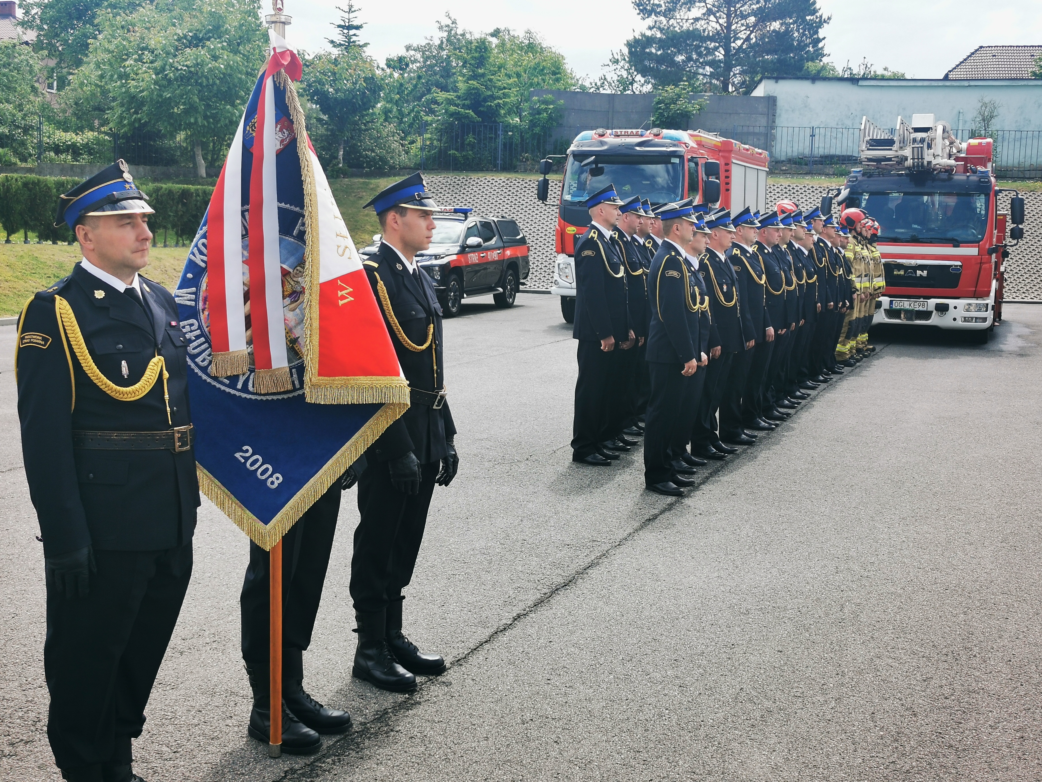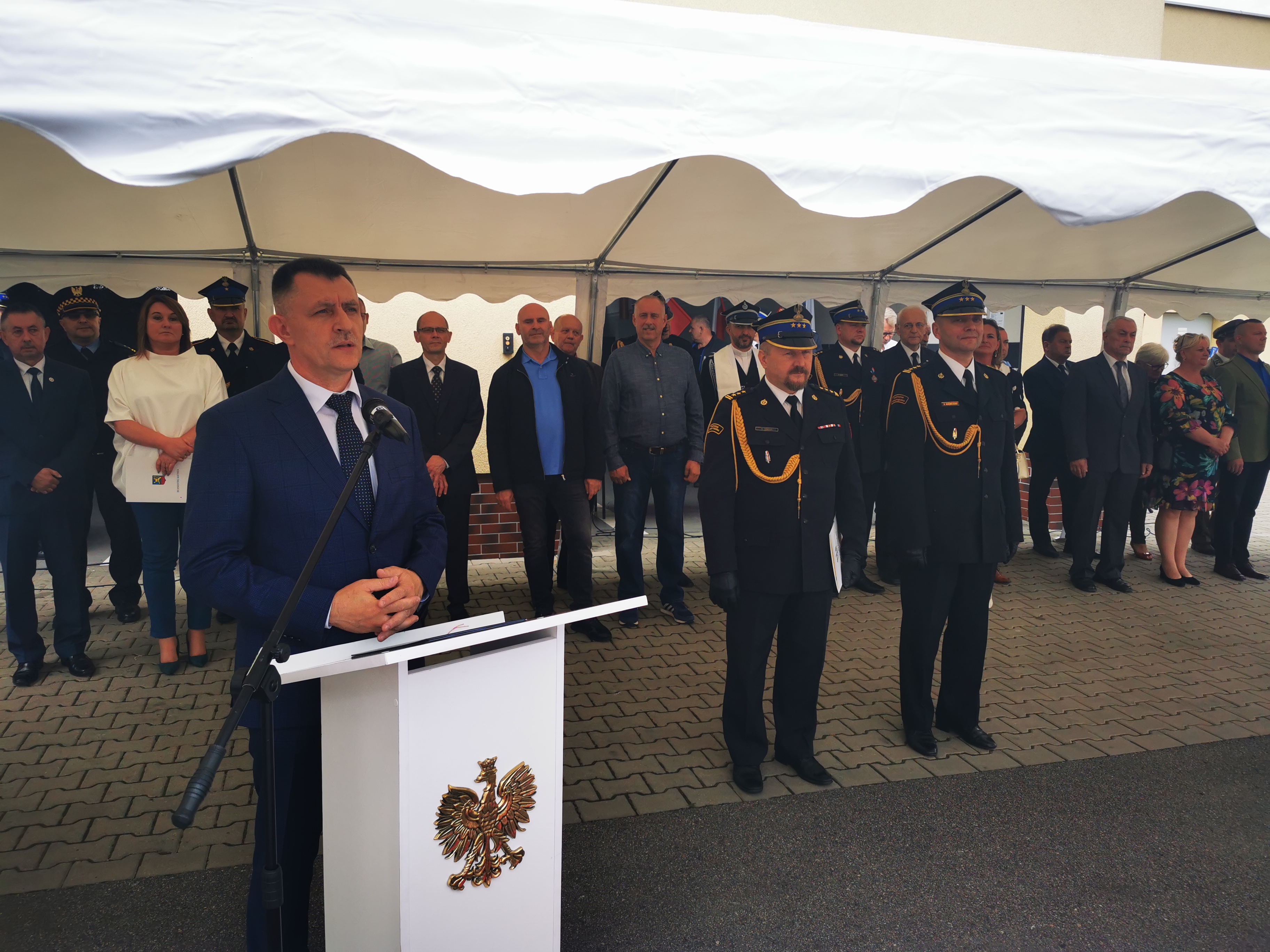 Po złożeniu meldunku przełożonemu przez st. kpt. Mateusza Szymusia - dowódcę uroczystości, nastąpiło podniesieniu flagi narodowej i odśpiewaniu hymnu państwowego. Następnie zgromadzonych gości oraz funkcjonariuszy i pracowników przywitał st. bryg. Wojciech Semeniuk - Komendant Powiatowy PSP w Głubczycach, prosząc na wstępie o uczczenie minutą ciszy pamięci zmarłych strażaków PSP i OSP, członków ich rodzin, a także ofiar epidemii koronawirusa oraz ofiar wojny w Ukrainie.