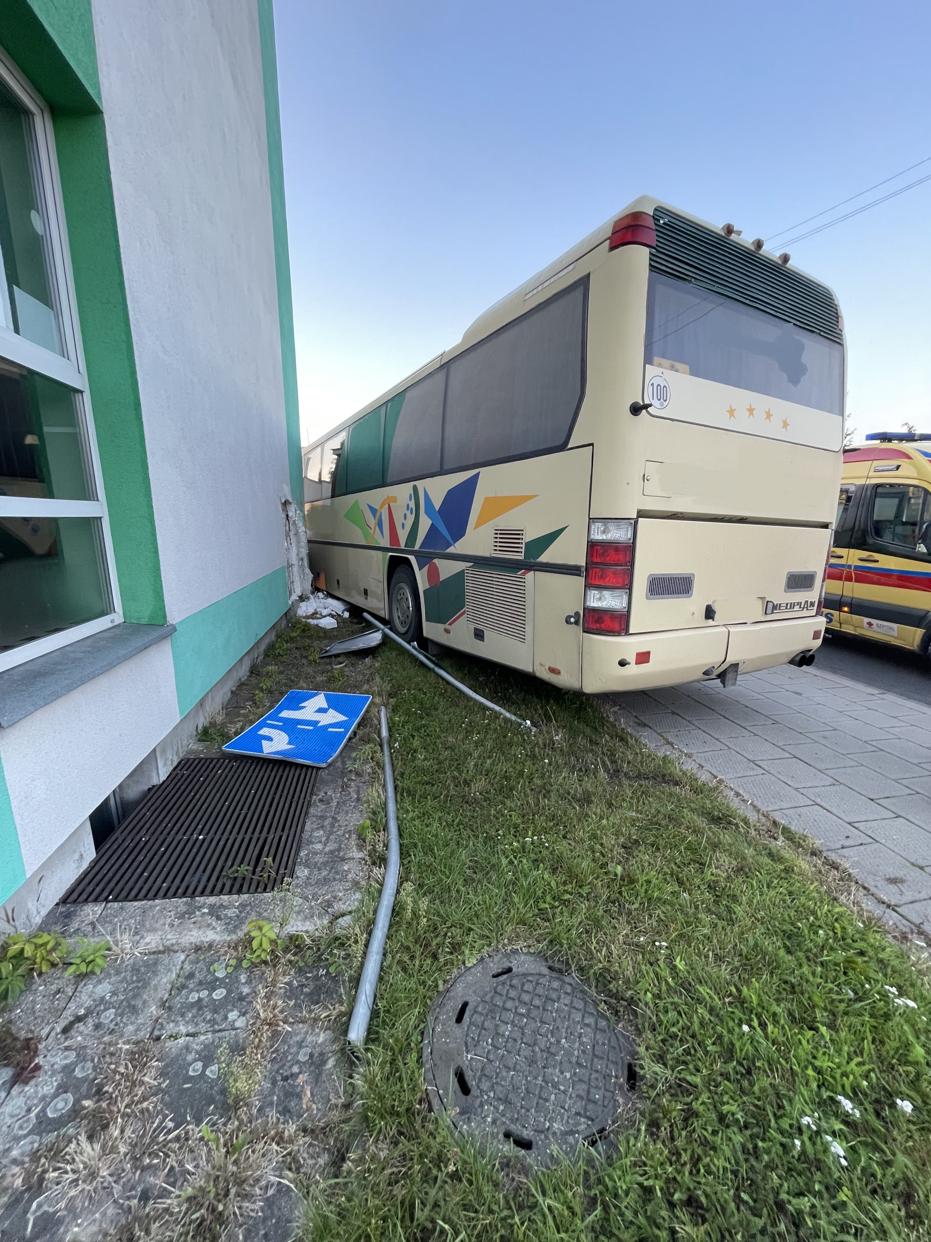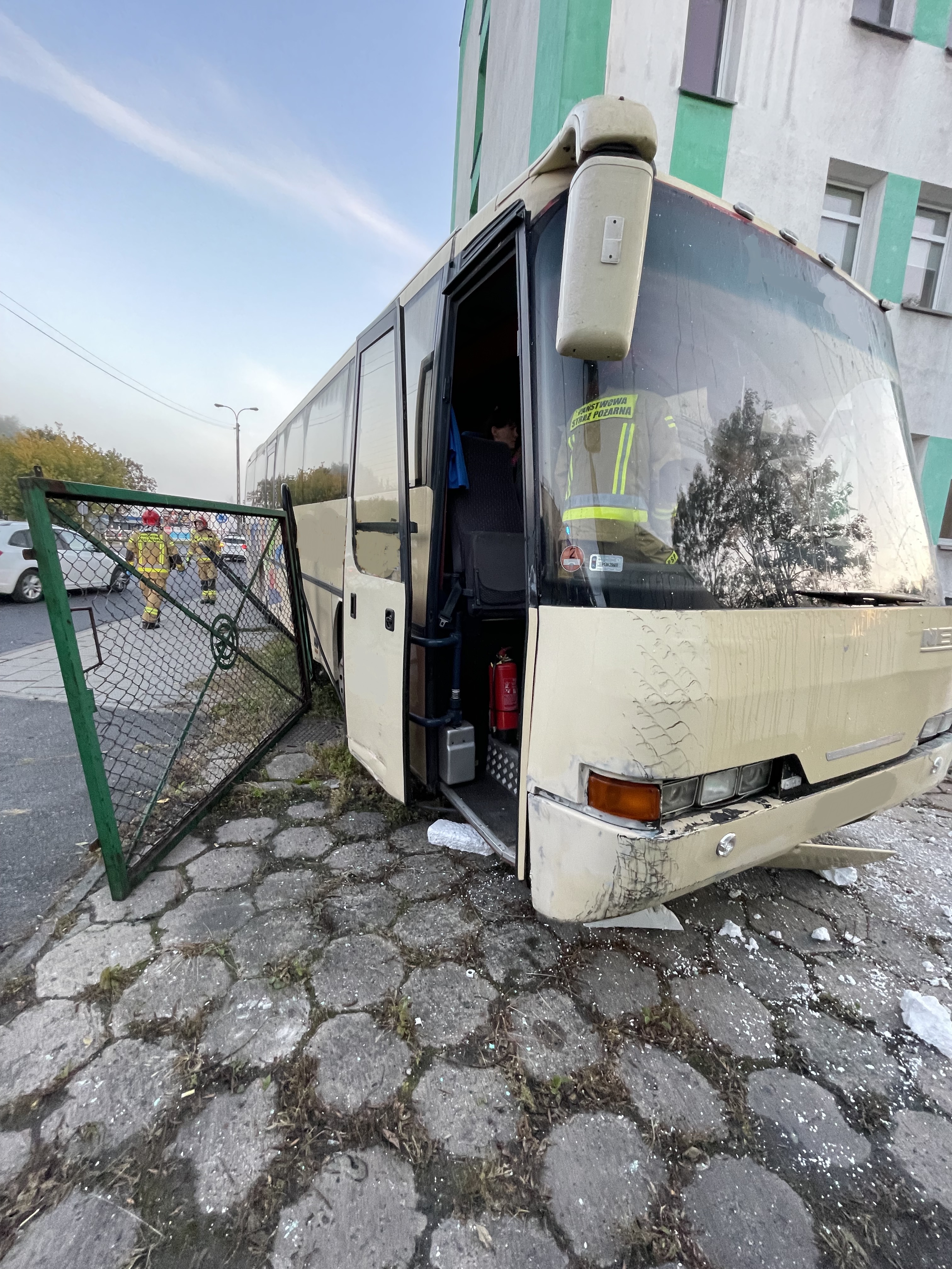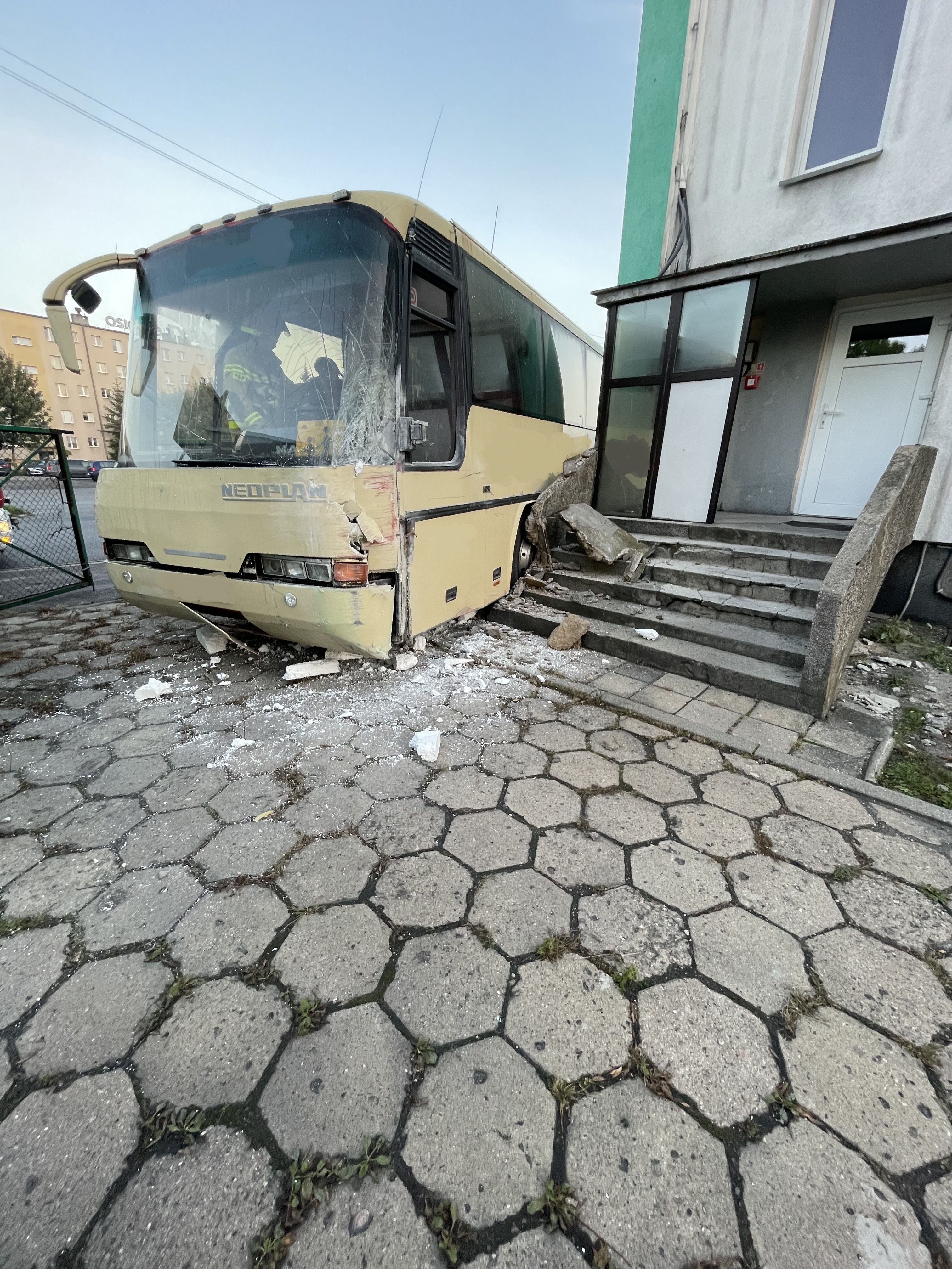 AUTOBUS UDERZYŁ W BUDYNEK