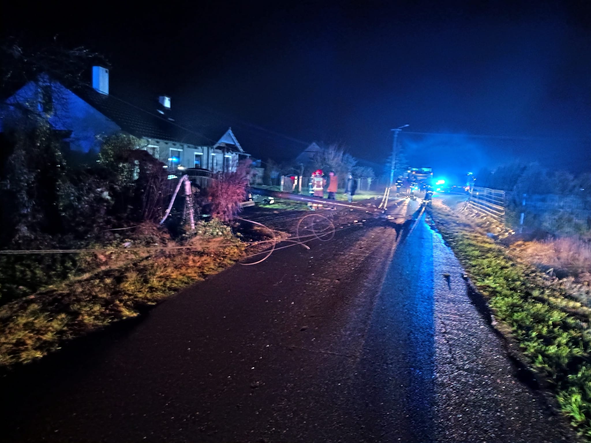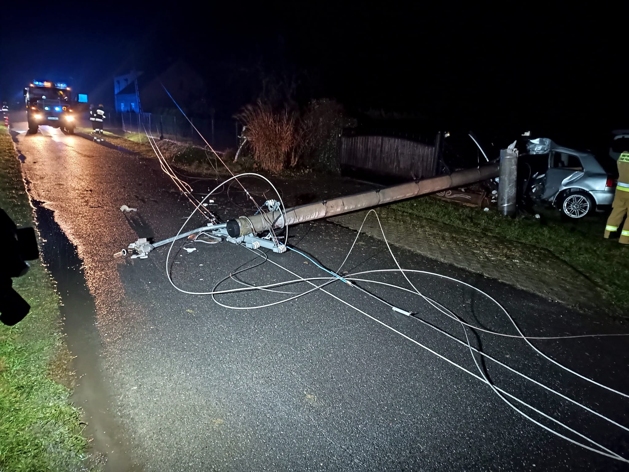 19 grudnia 2023 r. o godzinie 21.23 do Stanowiska Kierowania Komendanta Powiatowego Państwowej Straży Pożarnej w Gnieźnie wpłynęła informacja dotycząca wypadku drogowego w miejscowości Węgorzewo gm. Kiszkowo. Na miejsce zdarzenia zadysponowano jeden zastęp z Jednostki Ratowniczo-Gaśniczej w Gnieźnie oraz po jednym zastępie z OSP Kiszkowo i OSP Rybno Wielkie. Po przybyciu na miejsce zdarzenia pierwszego zastępu zastano samochód osobowy poza jezdnią w pozycji na kołach. Auto wcześniej uderzyło w skrzynkę prądową, uszkodziło płot, ścięło słup energetyczny i zatrzymało się na bramie wjazdowej prywatnej posesji. Wokół miejsca zdarzenia na ziemi leżały zerwane linie energetyczne natomiast złamany słup energetyczny tarasował przejazd drogą.