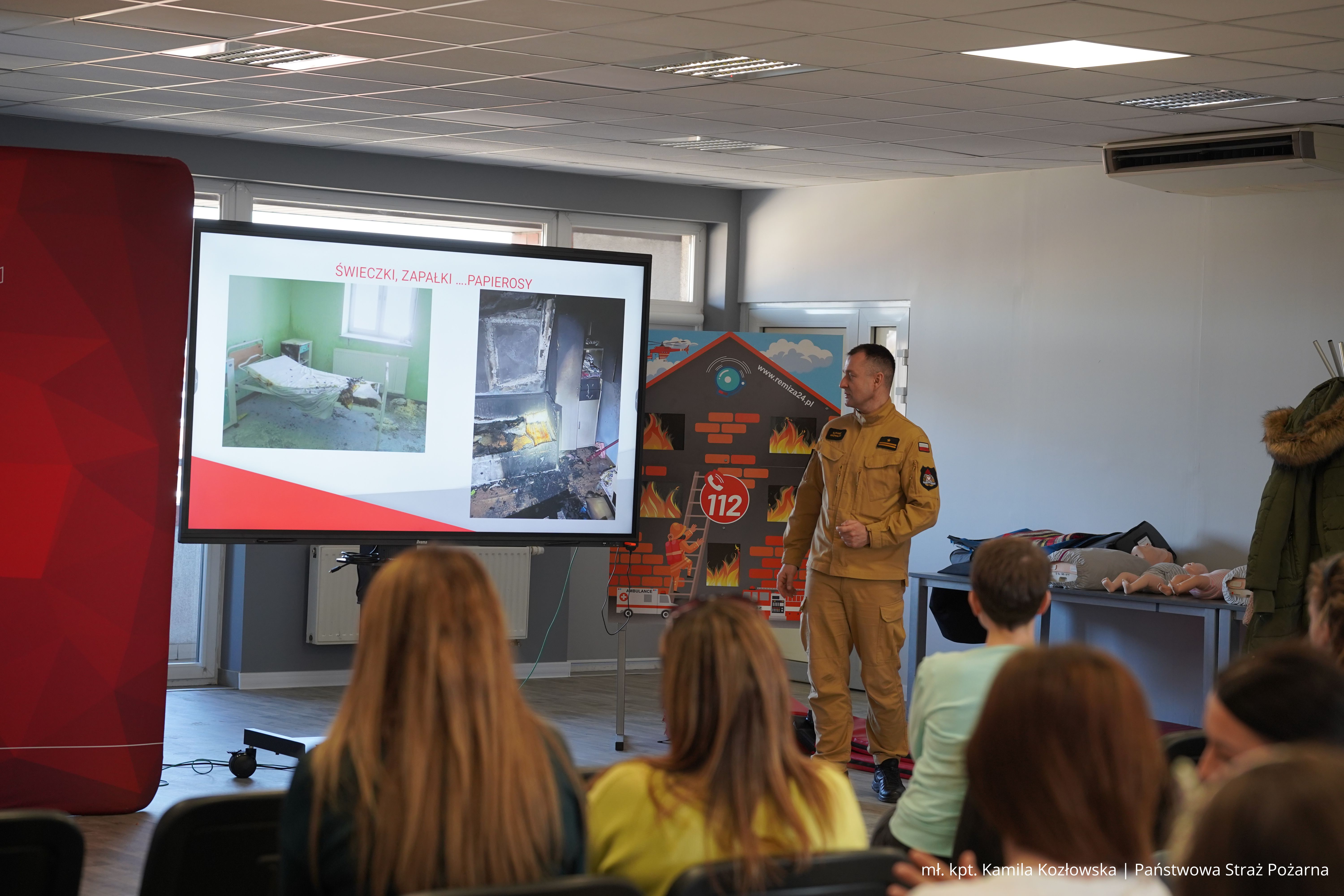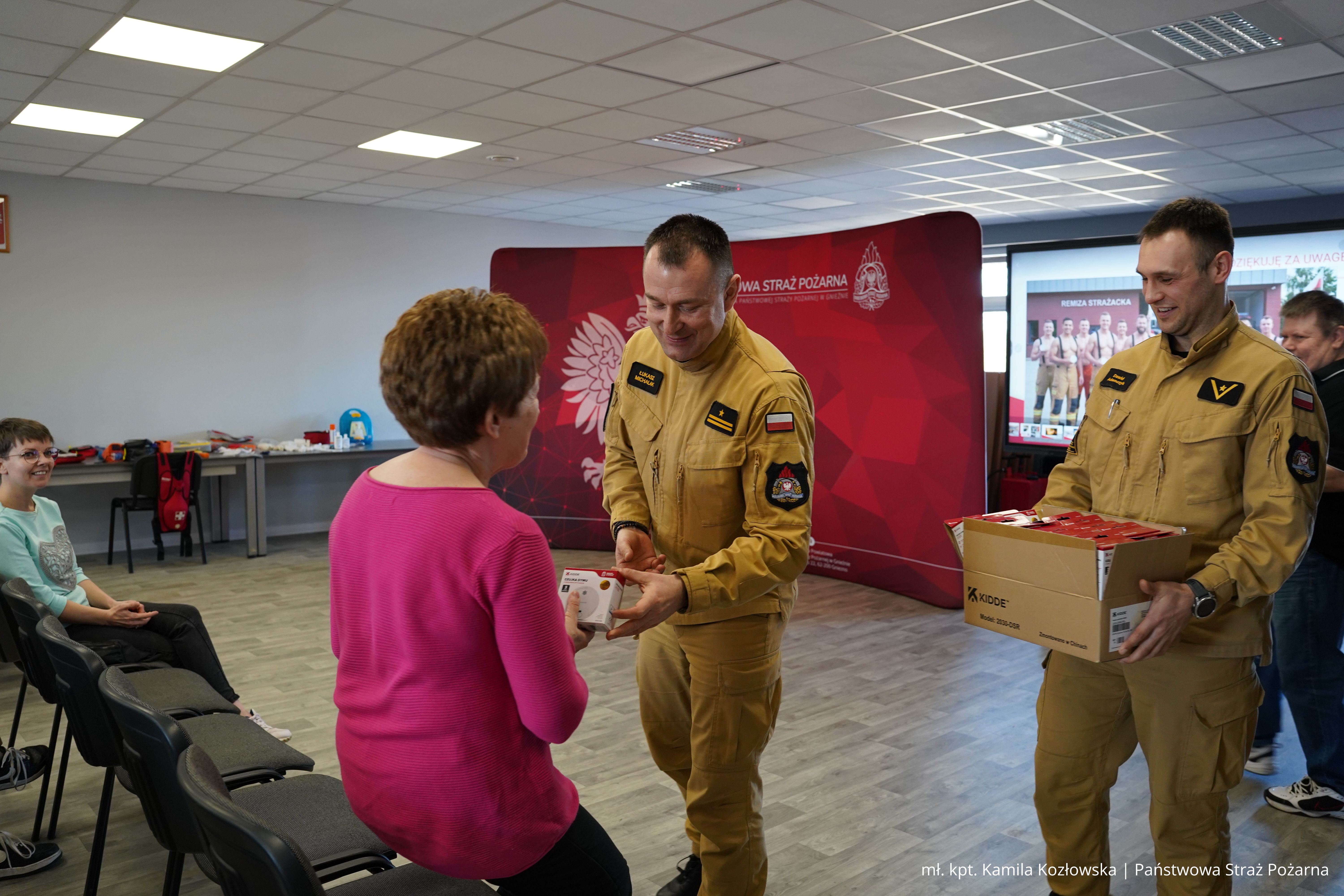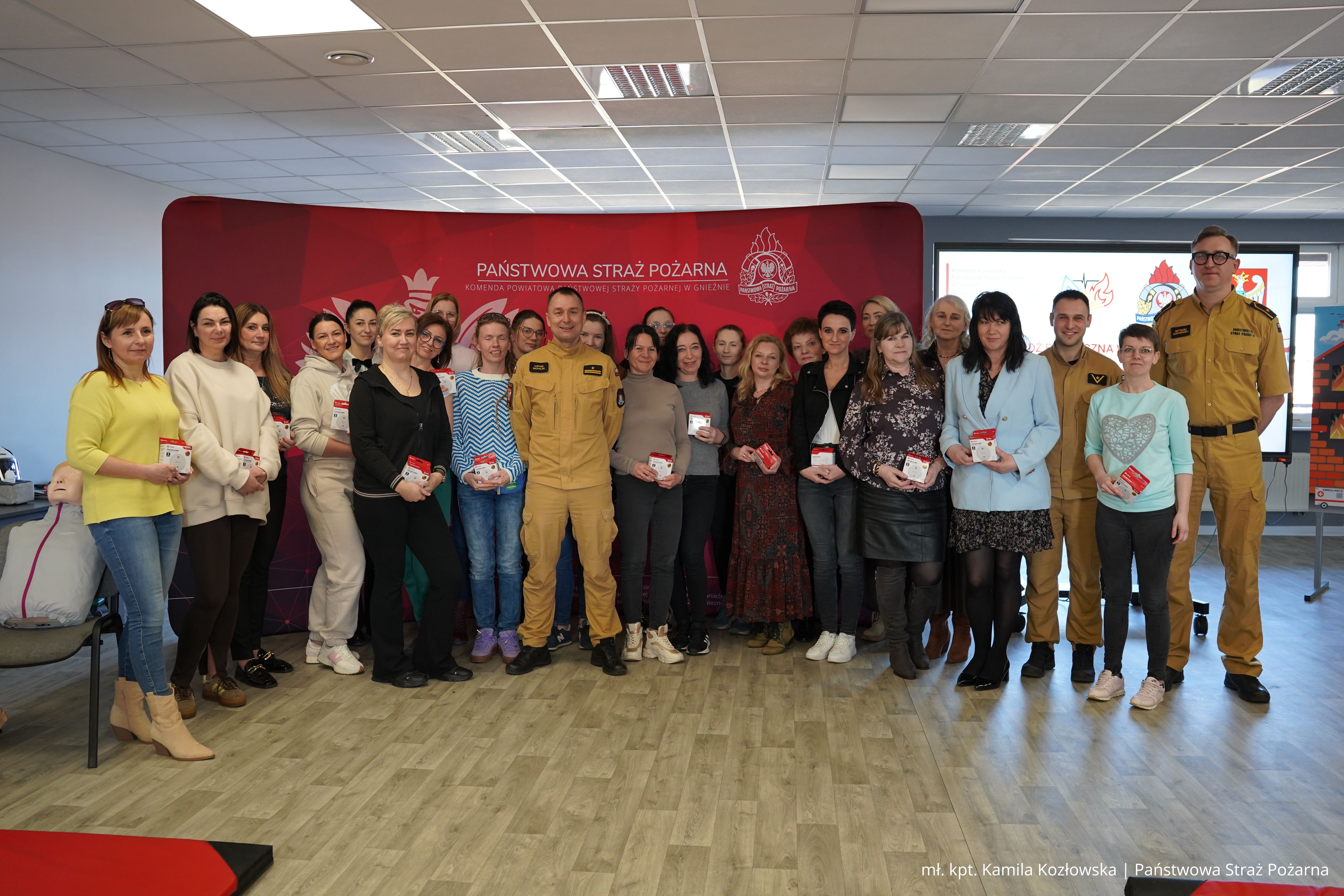 7 marca br. w siedzibie Komendy Powiatowej Państwowej Straży Pożarnej w Gnieźnie, w sali im. mł. bryg. Marka Wegnera gnieźnieńscy strażacy w przeddzień Międzynarodowego Dnia Kobiet zaprosili mieszkanki powiatu gnieźnieńskiego na warsztaty pt. „Bezpieczny Dzień Kobiet”. Głównym ich celem było podniesienie świadomości dotyczących zagrożeń, które mogą wystąpić w miejscu, które przez wszystkich uważane jest za bezpieczne tj. własnym domu a także zdobycie umiejętności z zakresu udzielania pomocy przedmedycznej na wypadek wystąpienia różnych zagrożeń dla zdrowia i życia. Zgromadzone uczestniczki osobiście przywitała pani komendant powiatowy PSP w Gnieźnie bryg. Marta Kacprzycka. W pierwszej części warsztatów przybyłe na to spotkanie panie wysłuchały wykładu przedstawionego przez zastępcę komendanta powiatowego PSP w Gnieźnie mł. bryg. Łukasz Michalak pt. „Bądź bezpieczna w swoim domu czyli jak uniknąć zagrożeń”. Zakres poznanych zagadnień był bardzo obszerny i obejmował m.in. zagrożenia związane z tlenkiem węgla powstającym w procesach spalania, użytkowaniem biokominków, pożary olejów i tłuszczów w domowych kuchniach, ładowaniem urządzeń w tym telefonów, hulajnóg elektrycznych, powerbanków a także zagrożeń pożarowych, które mogą wywołać dzieci oraz zwierzęta domowe. W trakcie wykładu uczestniczki bardzo aktywnie dzieliły się swoimi doświadczeniami życiowym na temat przedstawionych zagrożeń. Poznały również rozwiązania ich uniknięcia oraz skuteczne sposoby postępowania po ich wystąpieniu. Na koniec wykładu każda z nich otrzymała prezent niespodziankę w postaci czujki dymu, które tutejsza komenda otrzymała z puli przekazanej do PSP z Ministerstwa Spraw Wewnętrznych i Administracji w ramach Programu Ochrony Ludności i Obrony Cywilnej.