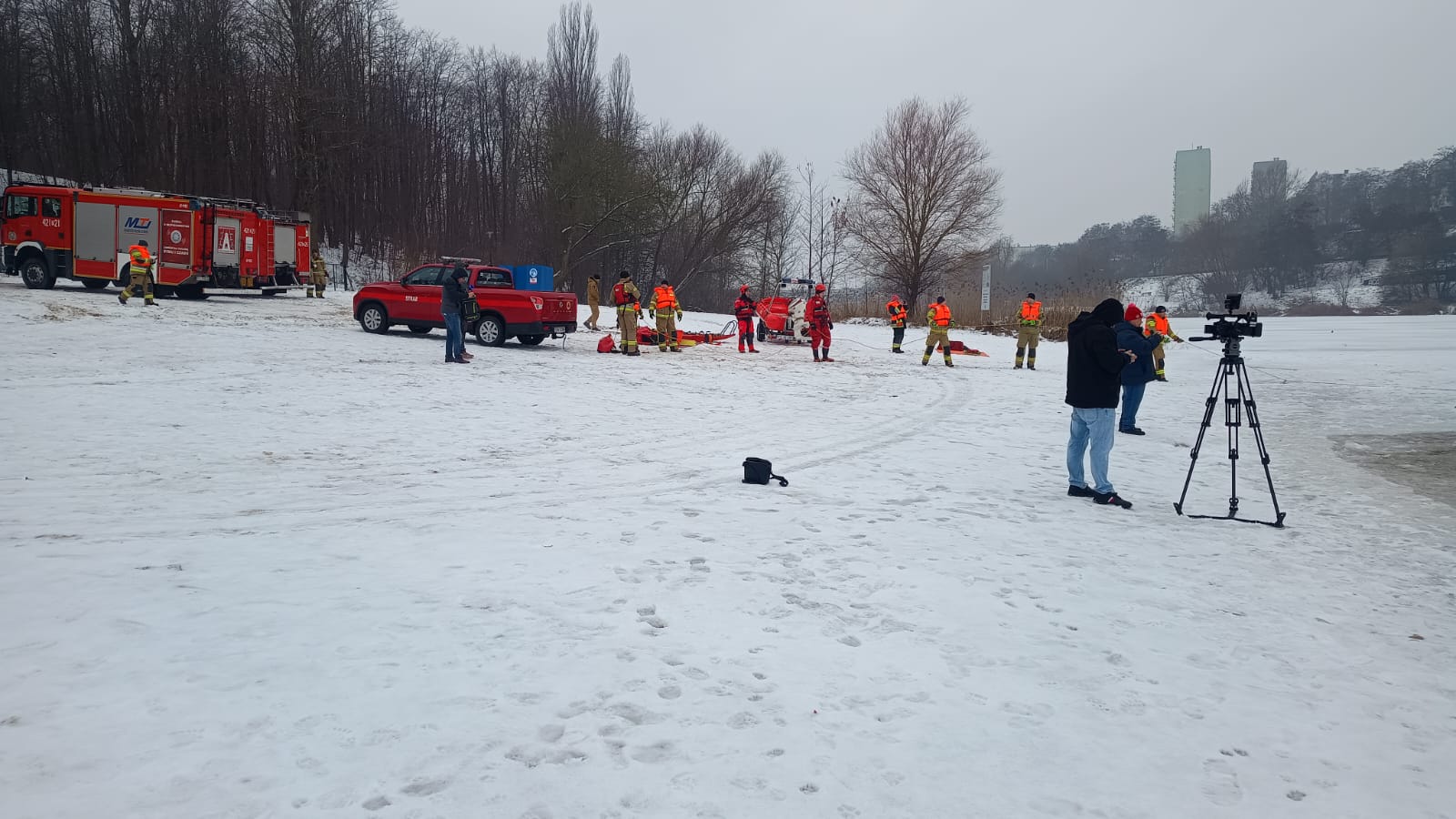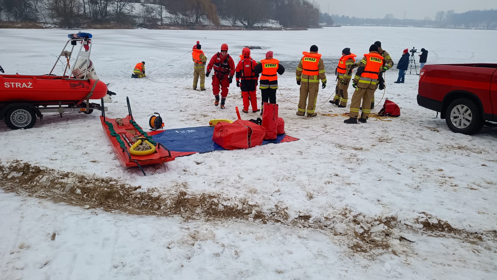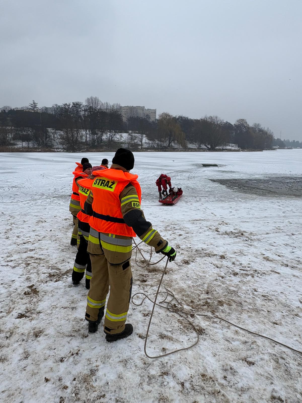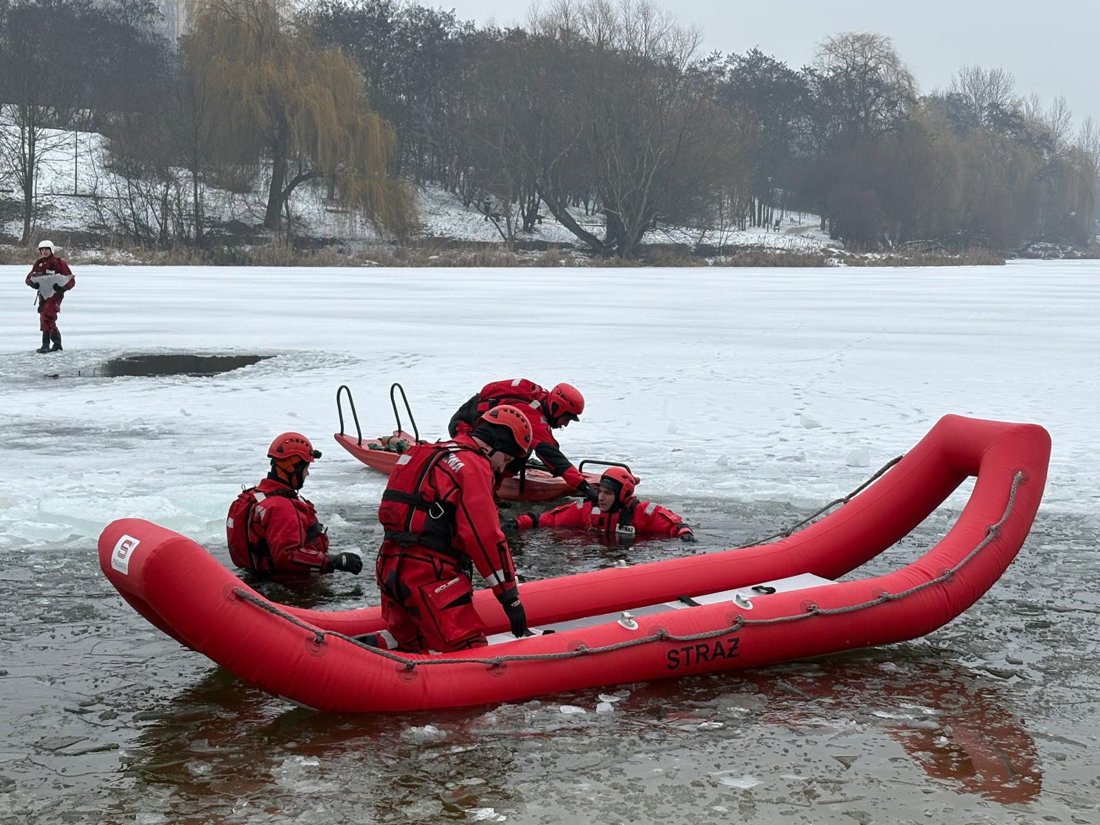 Ćwiczenia na lodzie - otwarte ćwiczenia z ratownictwa lodowego nad jeziorem Winiary