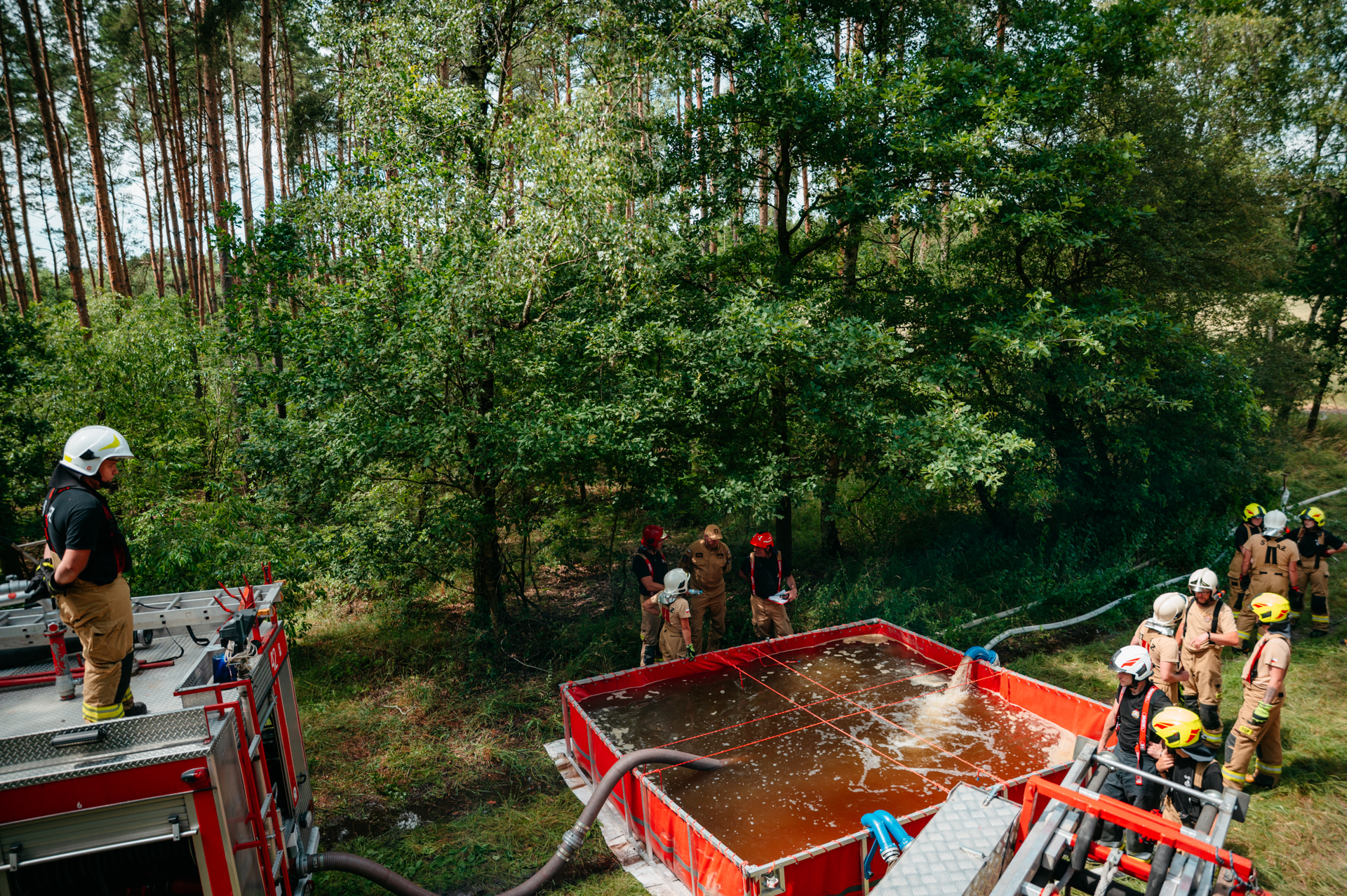 Po zakończonej części warsztatowej uczestnicy mogli wykorzystać przyswojoną wiedzę podczas realnego rozwinięcia sił i środków zakładającego organizację działań przy pożarze lasu.