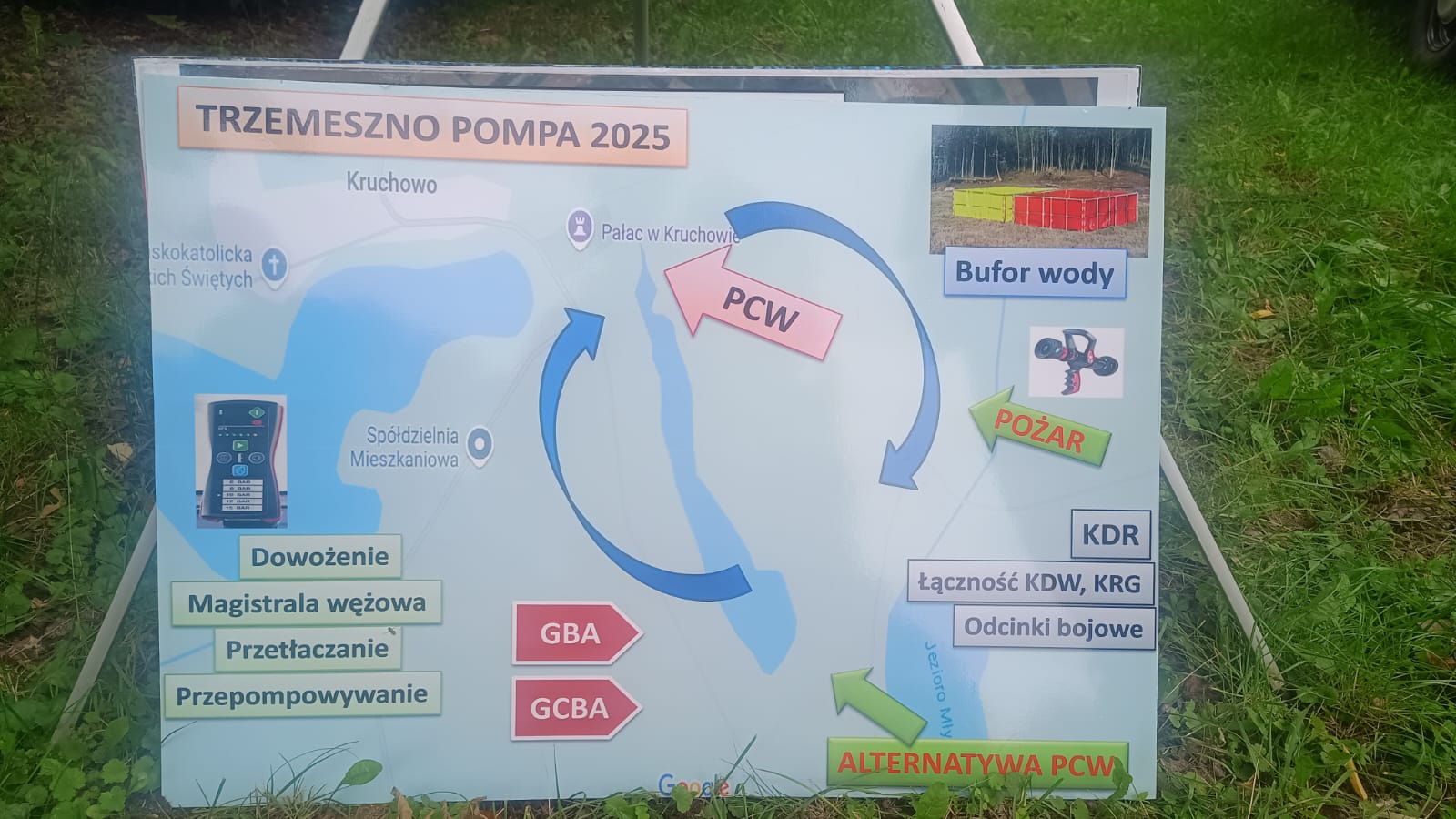 Ćwiczenia kończą cykl szkoleń z zakresu organizacji zaopatrzenia wodnego, które zostały przeprowadzone dla wszystkich jednostek Ochotniczych Straży Pożarnych z terenu powiatu gnieźnieńskiego. Główne założenia ćwiczeń to poszerzenie wiedzy z zakresu organizacji zaopatrzenia wodnego na terenie działań ratowniczo- gaśniczych tj. budowa punktu czerpania wody (PCW) z wykorzystaniem zbiorników przenośnych, bufora wodnego, obsługi układów wodno-pianowych w pojazdach m.in. budowa autopompy, zassanie wody, tankowanie zbiornika wody pojazdu przez mały by-pass i duży by-pass.