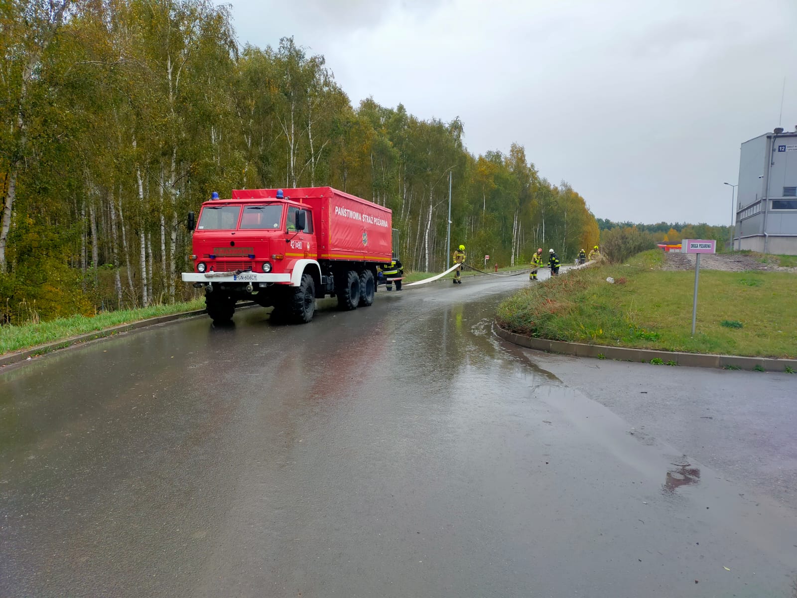 Po wzbudzeniu alarmu pożarowego sygnał z monitoringu dotarł do Straży Pożarnej, gdzie dyżurny natychmiast zadysponował na miejsce zdarzenia zastępy z PSP i OSP. W tym czasie kierownictwo zakładu zarządziło ewakuację pracowników w miejsce zbiórki, dzięki czemu sprawdzono wewnętrzne procedury alarmowania funkcjonujące w zakładzie.