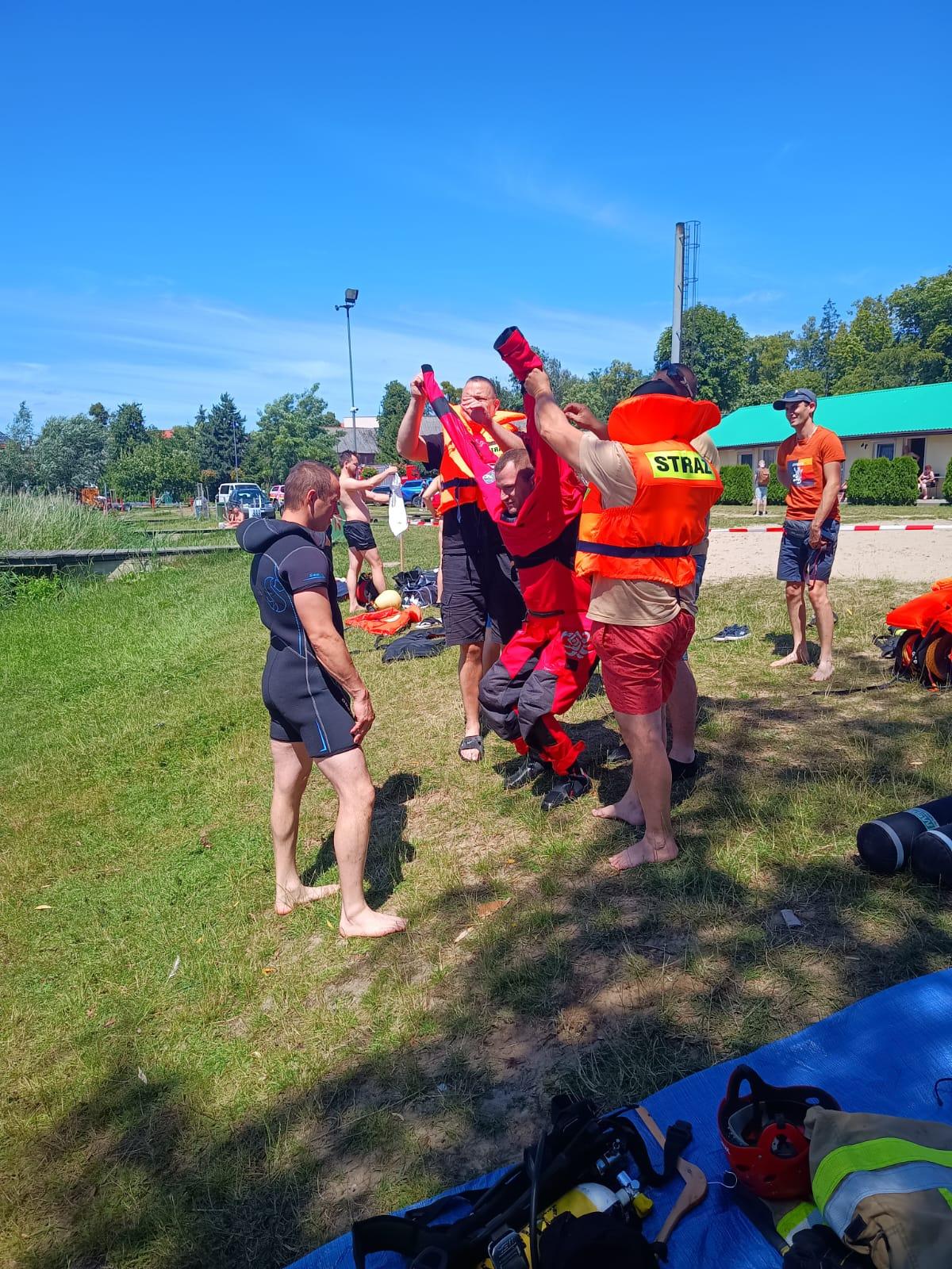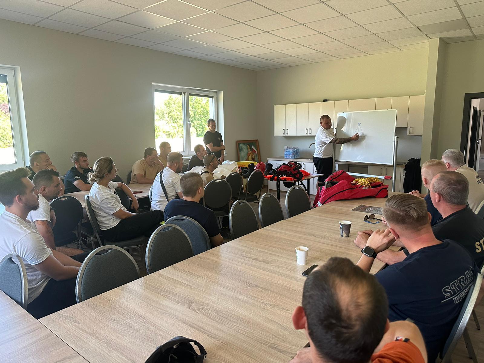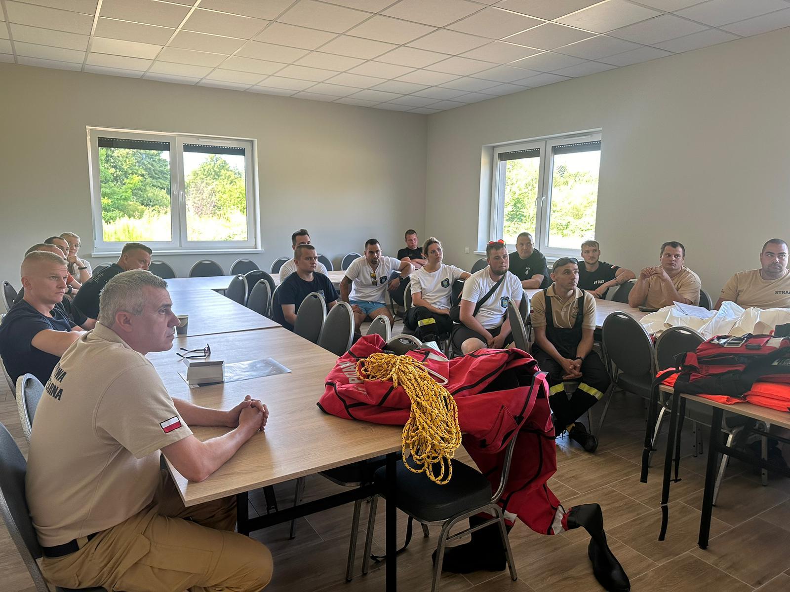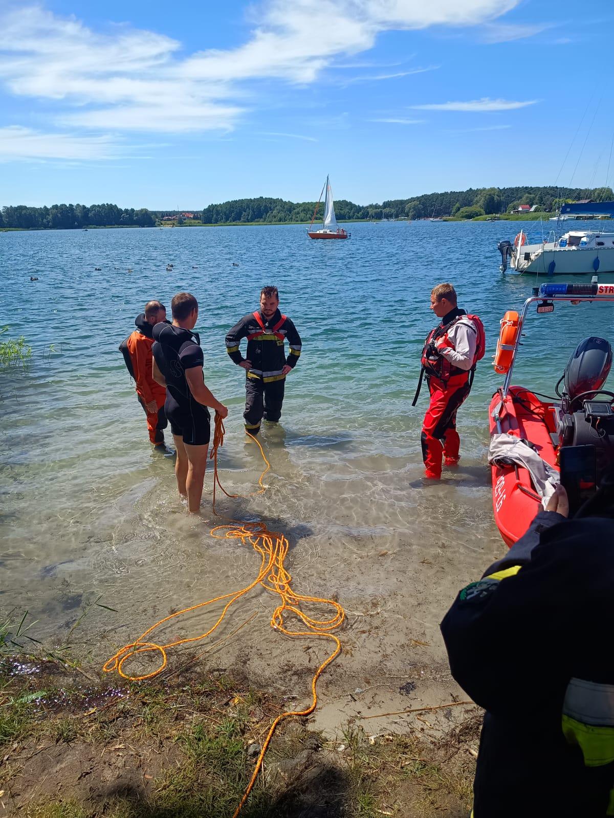 6 lipca 2024 r. strażacy z terenu powiatu gnieźnieńskiego szkolili swoje umiejętności z ratownictwa wodnego. Dzięki gościnności druhów z OSP w Powidzu, wśród których jest nasz funkcjonariusz st.asp. Dominik Nawrocki mogliśmy sprawdzić swoje umiejętności w realnych warunkach nad j. Powidzkim. Szkolenie rozpoczęło się w remizie OSP Powidz, gdzie została przeprowadzona część teoretyczna ćwiczeń na której omówiono i pokazano wyposażenie strażaków stosowane do działań w ratownictwie wodnym oraz zasady BHP. Następnie zastępy udały się nad jezioro, gdzie zwodowano łodzie i przeprowadzono część praktyczną. Strażacy w tej części ćwiczeń doskonalili swoje umiejętności z zakresu metod i technik podejmowania osób poszkodowanych z wody oraz ich ewakuacji. Ćwiczono również technikę podnoszenia wywróconej łodzi typu omega i podejmowanie poszkodowanych z wody. Na koniec zwrócono uwagę na ubiór ratowników podczas działań na wodzie. W tym celu strażacy w ubraniach specjalnych typu „nomex” zabezpieczeni liną mogli wejść do wody by sprawdzić jak trudno utrzymać się na powierzchni wody mając na sobie ubranie bojowe i buty bojowe. Ćwiczenie to pokazało jak ważnym elementem jest odpowiedni ubiór strażaka, który powinien być dopasowany do występującego zagrożenia. Jako ciekawostkę sprawdzono również jak zachowują się aparaty powietrzne znajdujące się na wyposażeniu samochodów bojowych podczas zanurzenia w wodzie.