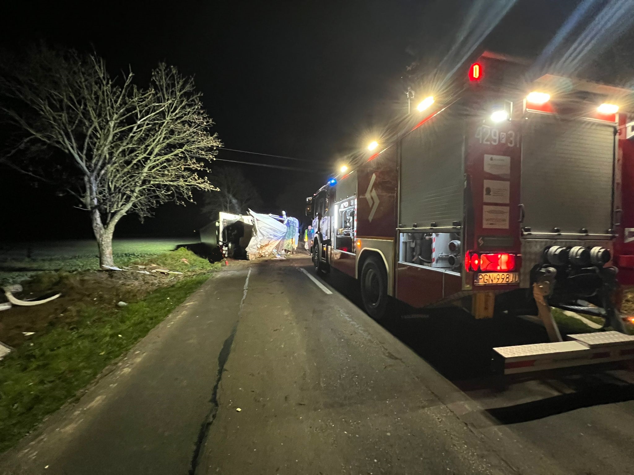 2 listopada 2022 r. tuż przed godziną 22 do Stanowiska Kierowania Komendanta Powiatowego Państwowej Straży Pożarnej w Gnieźnie wpłynęła informacja o kolizji samochodu ciężarowego (TIR) na drodze wojewódzkiej 190 w miejscowości Kłecko Kolonia. Na miejsce zdarzenia zadysponowano jeden zastęp z Jednostki Ratowniczo-Gaśniczej w Gnieźnie oraz jeden zastęp z OSP w Kłecku. Po przybyciu na miejsce zdarzenia pierwszego zastępu Straży Pożarnej zastano przewrócony samochód ciężarowy (TIR) przewożący półtusze trzody chlewnej, który leżał na boku w poprzek jezdni blokujący całkowicie przejazd. Kierujący pojazdem opuścił kabinę samochodu przed przybyciem służb ratunkowych. Do wypadku doszło na prostym odcinku drogi.