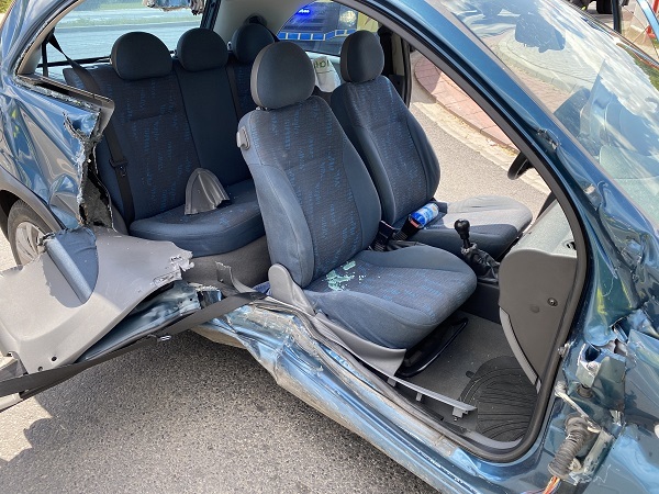 Tego samego dnia ok godziny 11:40 po zakończeniu działań na ul. Południowej gnieźnieńscy strażacy zostali przedysponowani do wypadku dwóch pojazdów osobowych na skrzyżowaniu ul. Osiniec z ul. Kawiary. Działania strażaków polegały na zabezpieczeniu miejsca zdarzenia, wykonaniu dostępu do osoby poszkodowanej oraz pomocy przy transporcie poszkodowanej do karetki. Poszkodowana została przetransportowana do szpitala w Gnieźnie. Oprócz zastępów z JRG Gniezno w działaniach udział brał jeden zastęp Ochotniczej Straży Pożarnej ze Zdziechowy, która zabezpieczała teren miasta. Na miejscu obecna była również policja która wyjaśnia przyczyny i okoliczności zdarzenia.