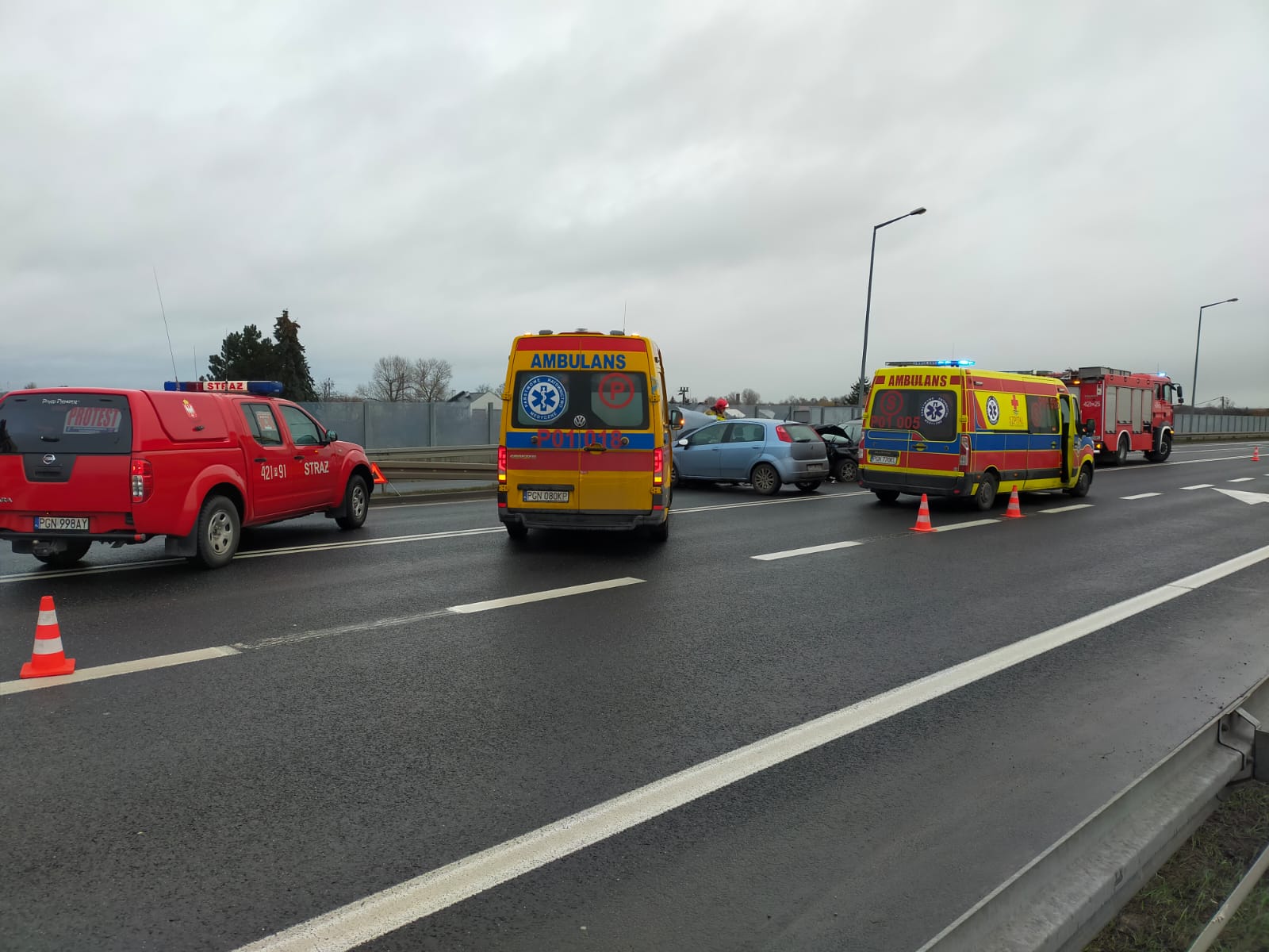 1 lutego 2023 r. o godzinie 8.45 do Stanowiska Kierowania Komendanta Powiatowego Państwowej Straży Pożarnej w Gnieźnie wpłynęła informacja o wypadku do którego doszło na obwodnicy Gniezna na Trasie Zjazdu Gnieźnieńskiego. Na miejsce zdarzenia zadysponowano trzy zastępy z Jednostki Ratowniczo-Gaśniczej w Gnieźnie. Po przybyciu na miejsce zdarzenia pierwszego zastępu zastano wypadek dwóch samochodów osobowych, pojazdy znajdowały się na jezdni w pozycji na kołach. Na miejscu obecny był Zespół Ratownictwa Medycznego, który udzielał poszkodowanym pomocy medycznej. Łącznie samochodami podróżowały trzy osoby, żadna z nich nie była zakleszczona w pojeździe.