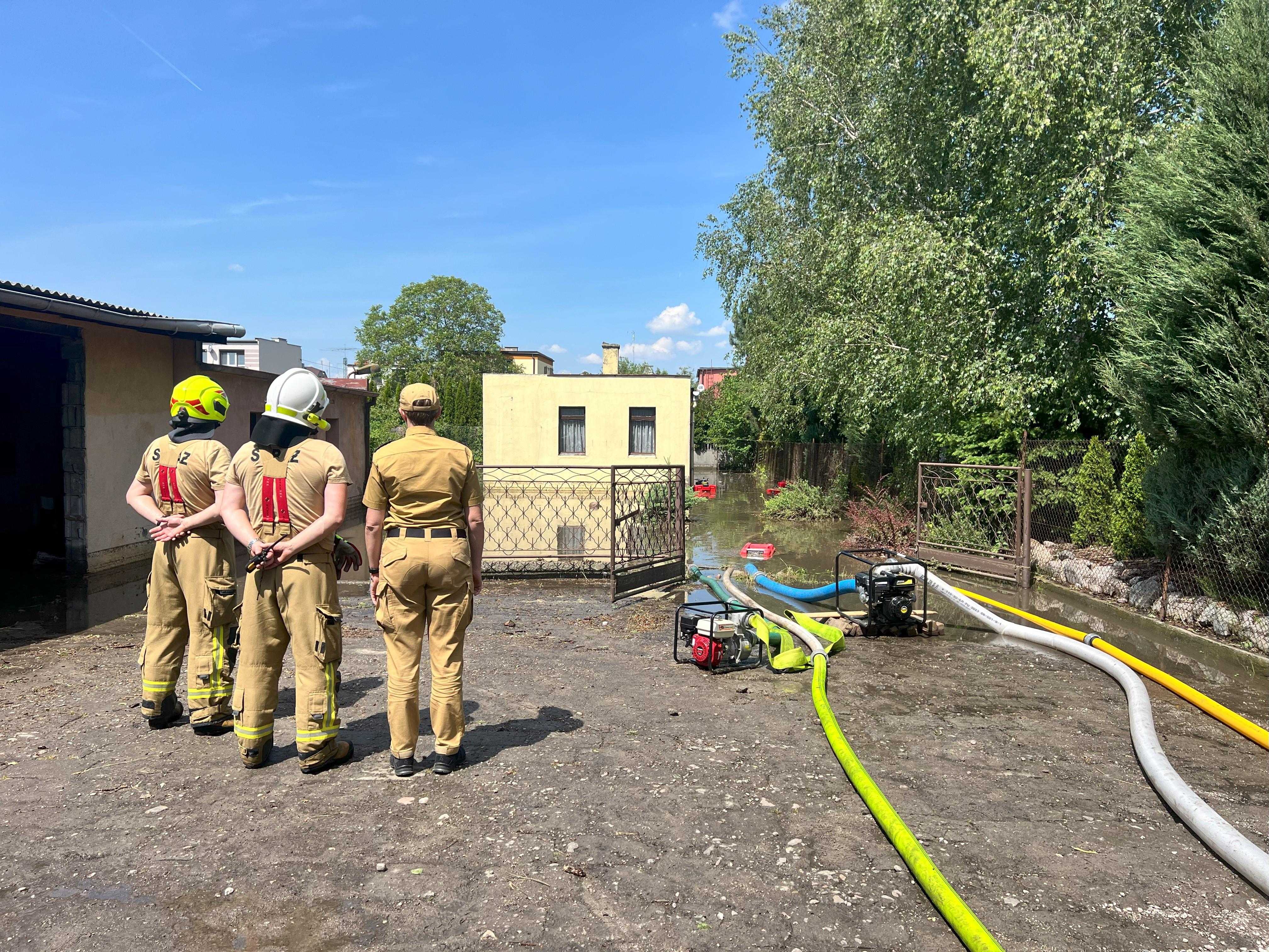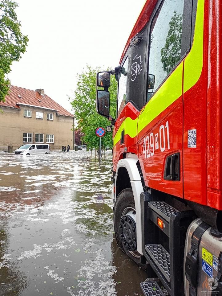 W ciągu całego dnia prowadzone były działania mające na celu usuwanie skutków nawałnicy. Łącznie wpłynęły 42 zgłoszenia związane z zalaniem trenów, posesji oraz piwnic.