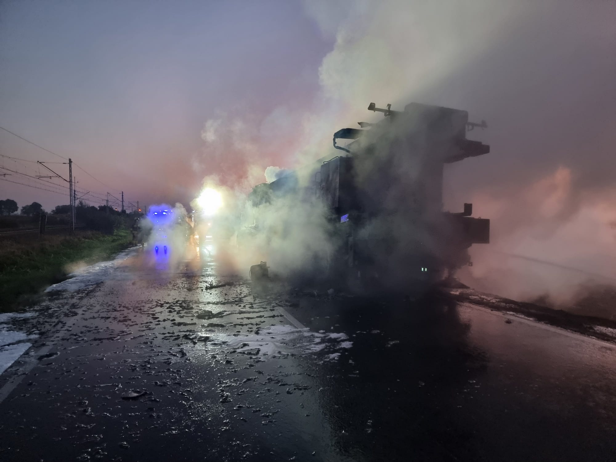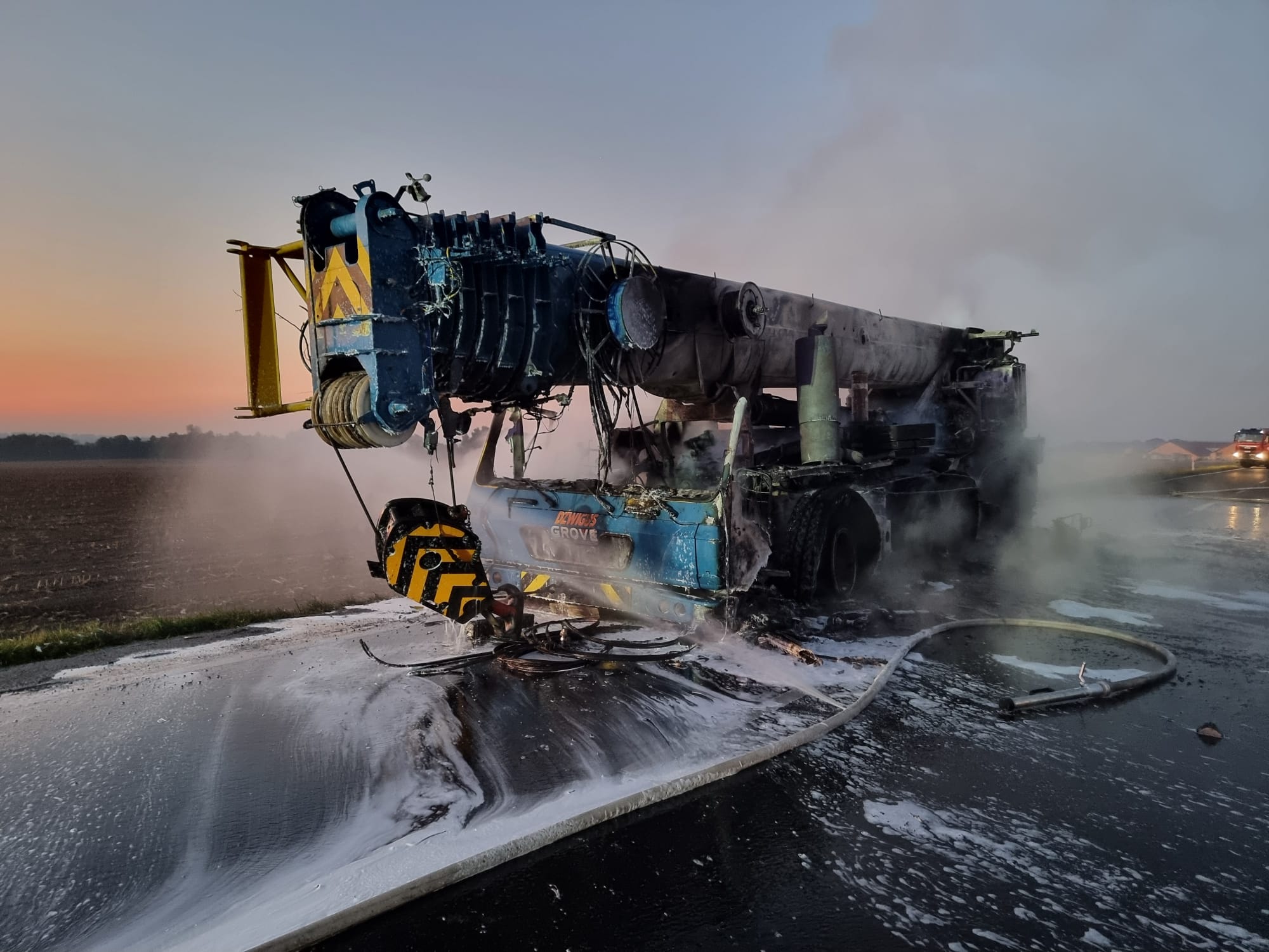 20 września 2024 r. o godzinie 5.31 do Stanowiska Kierowania Komendanta Powiatowego Państwowej Straży Pożarnej w Gnieźnie wpłynęła informacja dotycząca pożaru dźwigu na DK 15 w miejscowości Lubiń gm. Trzemeszno. Na miejsce zdarzenia zadysponowano jeden zastęp z Jednostki Ratowniczo-Gaśniczej w Gnieźnie oraz jeden zastęp z OSP Trzemeszno. Dodatkowo na miejsce zdarzenia przybyły cztery zastępy z terenu powiatu mogileńskiego (1xJRG oraz 3xOSP). Po przybyciu na miejsce zdarzenia pierwszego zastępu straży pożarnej zastano całkowity pożar dźwigu samojezdnego na DK 15. Kierujący pojazdem opuścił pojazd przed przybyciem służb ratunkowych i nie wymagał pomocy medycznej.