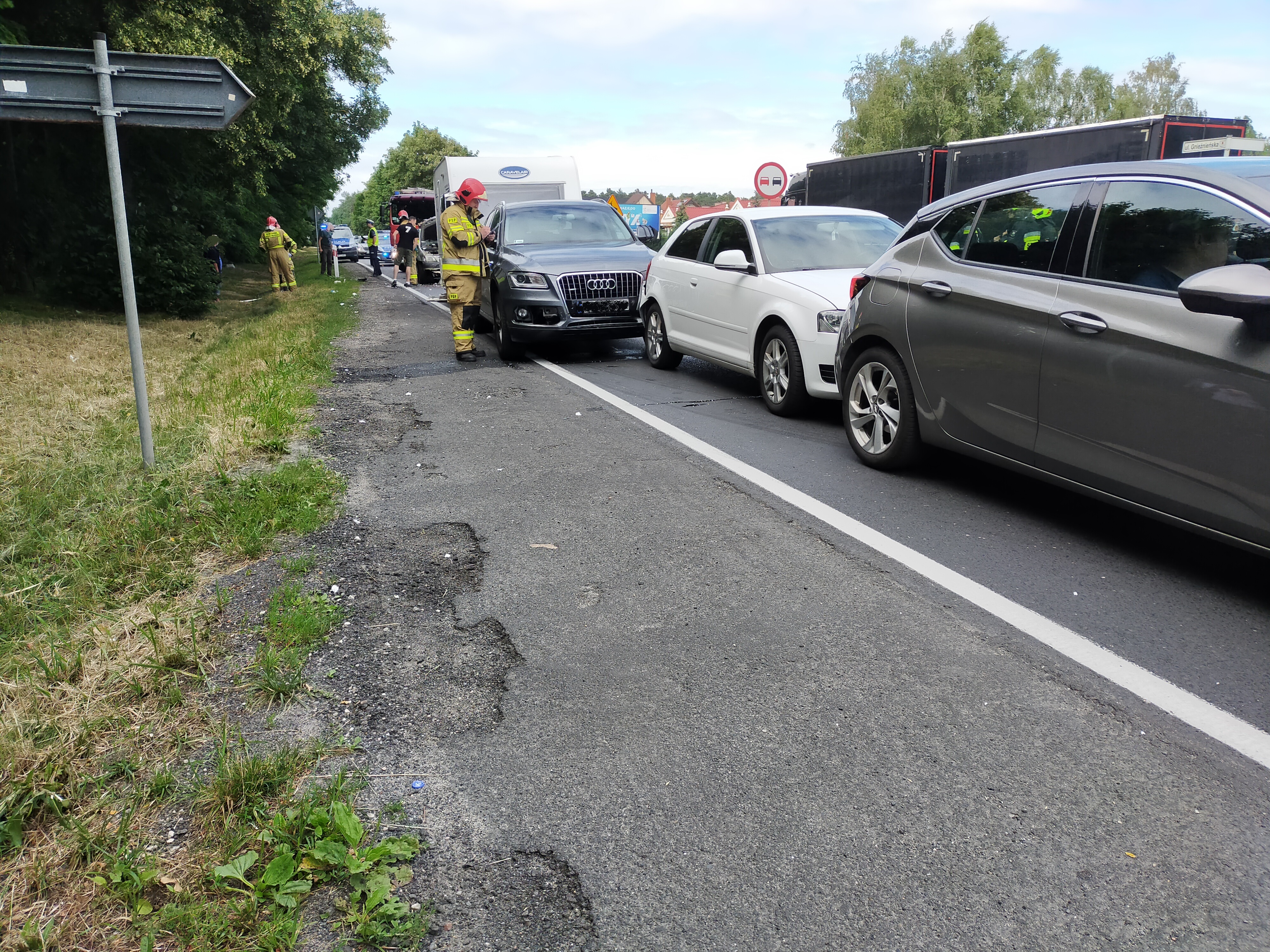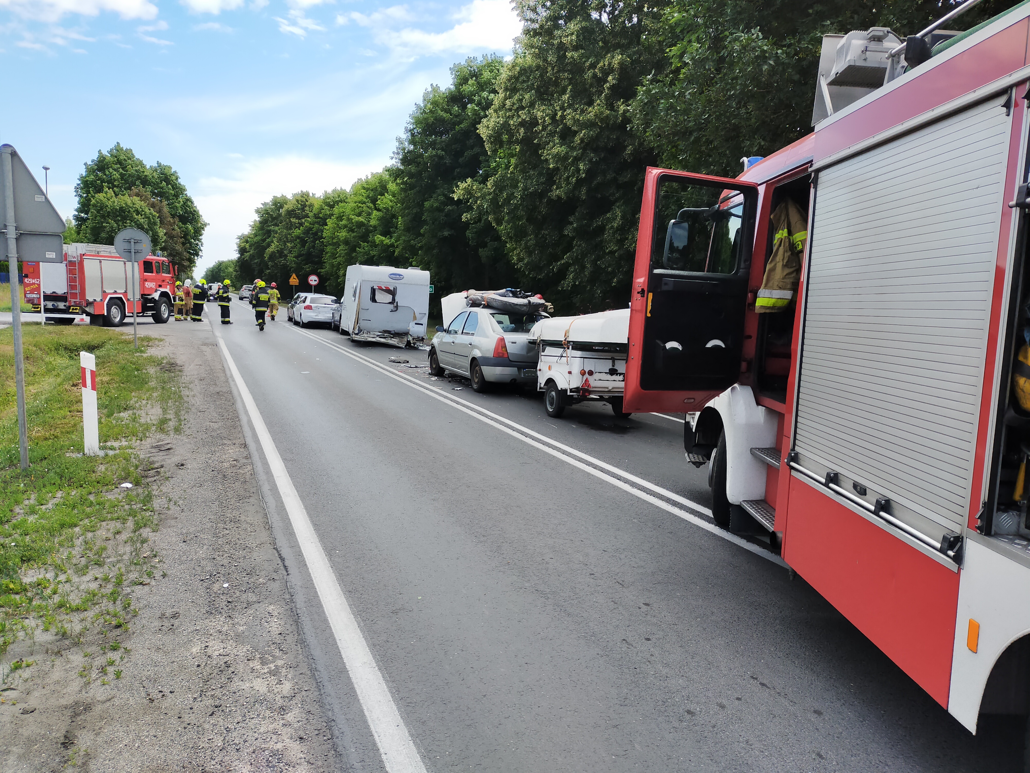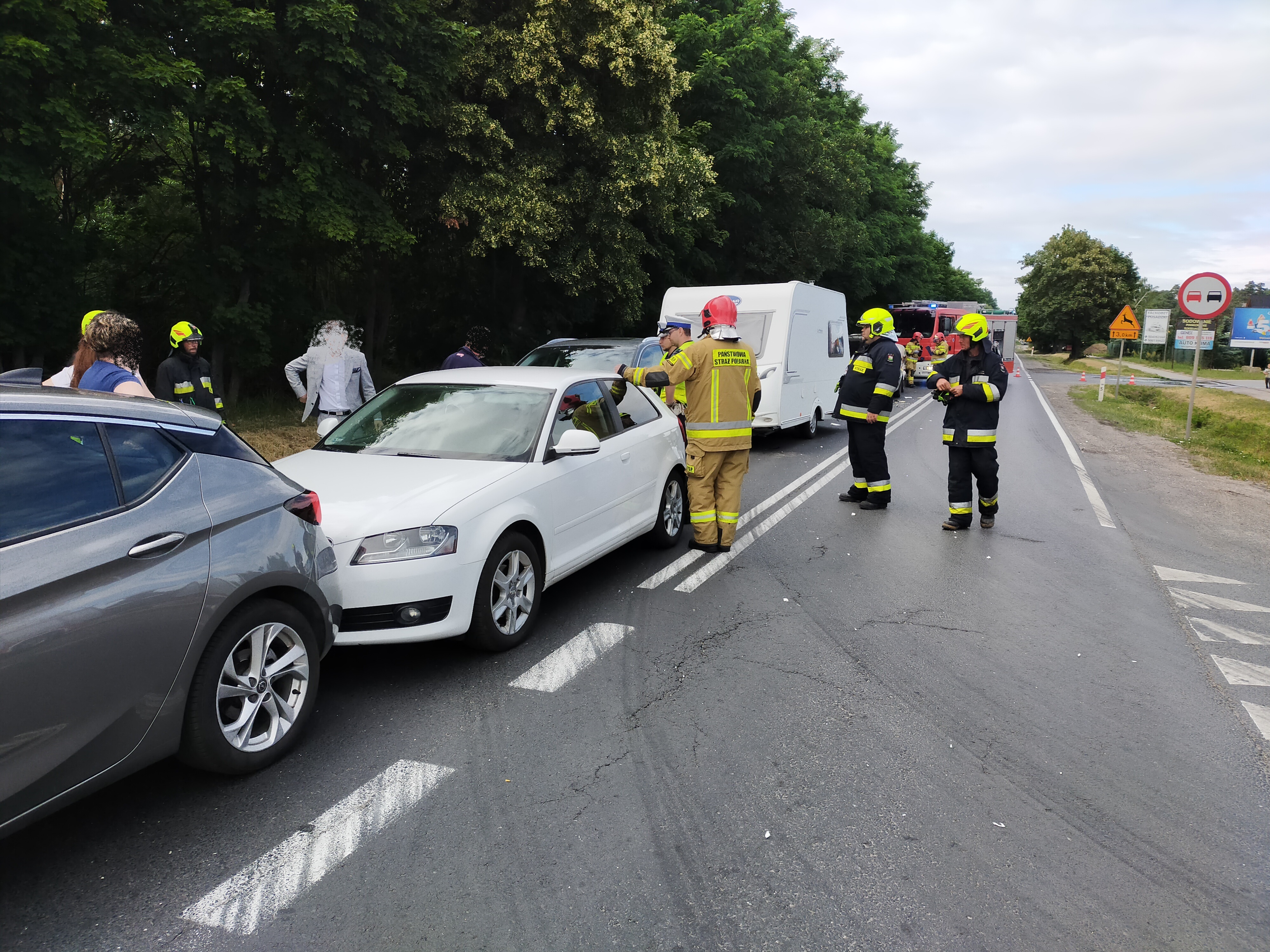 Działania Straży Pożarnej polegały na zabezpieczeniu miejsca zdarzenia i ustaleniu czy ktoś z podróżujących wymaga pomocy medycznej na wskutek kolizji. Jednemu poszkodowanemu strażacy udzielili kwalifikowanej pierwszej pomocy. Pozostałe osoby nie zgłaszały żadnych dolegliwości. Na czas prowadzonych działań ruch odbywał się wahadłowo przez parking znajdujący się na wysokości miejsca zdarzenia natomiast część drogi na której stały uszkodzone pojazdy była całkowicie zablokowana. Strażacy przy użyciu sorbentu usunęli z drogi rozlane płyny eksploatacyjne. Na miejscu obecna była Policja, która ustala okoliczności zdarzenia.