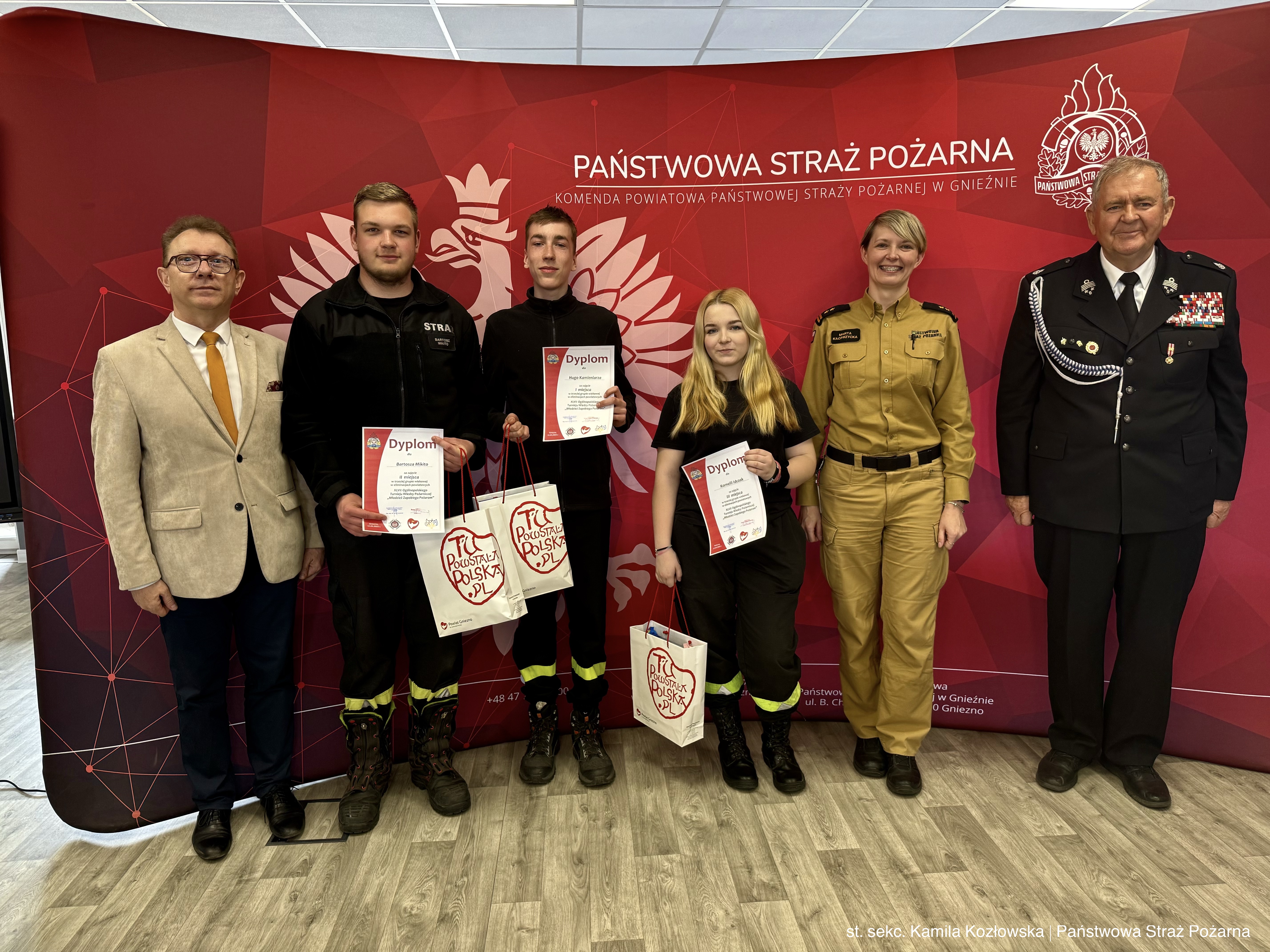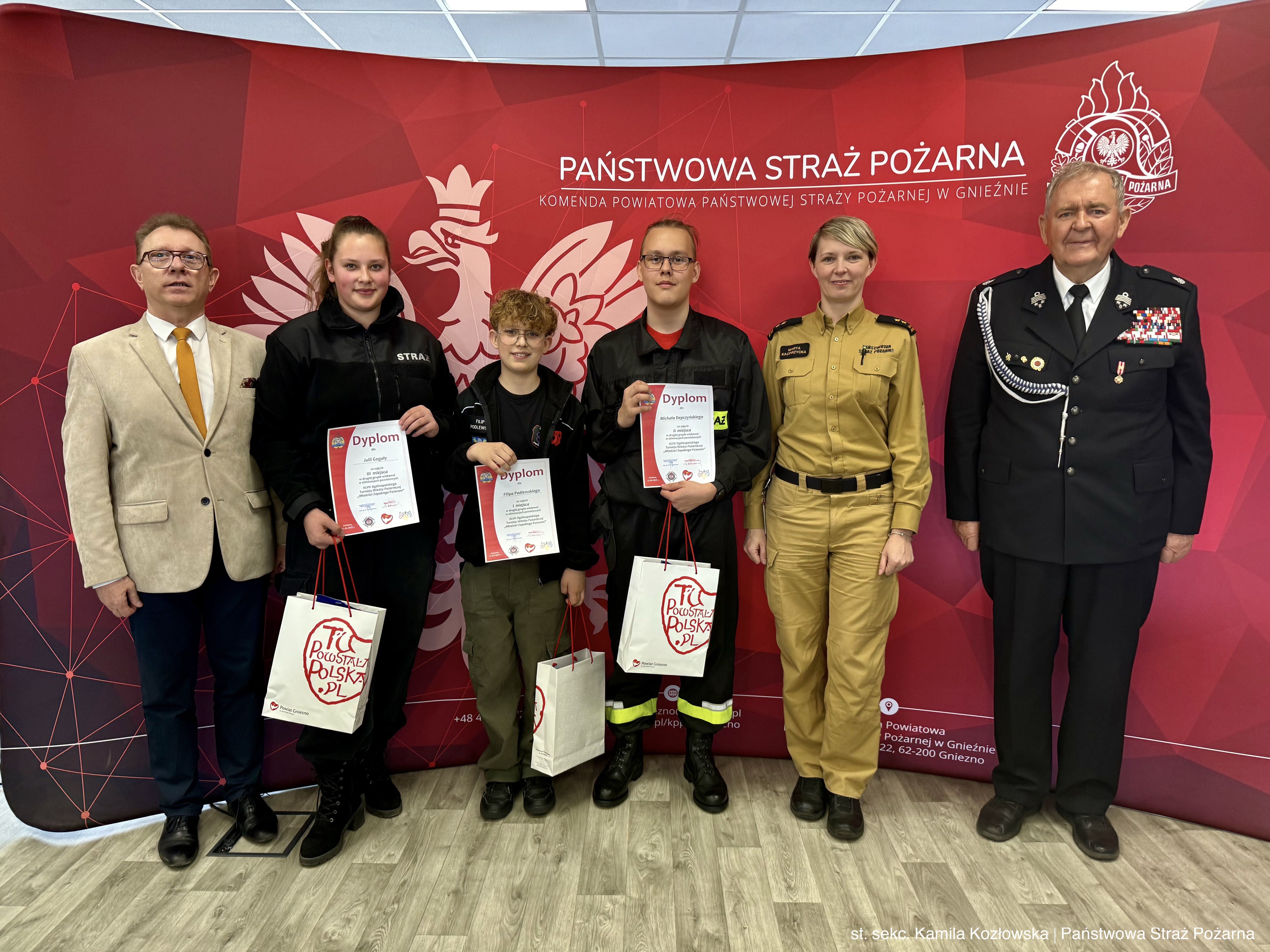 Laureaci oraz pozostali uczestnicy otrzymali nagrody ufundowane przez Starostwo Powiatowe w Gnieźnie oraz Oddział Wojewódzki Związku Ochotniczych Straży Pożarnych RP w Poznaniu. Zwycięstwo w eliminacjach powiatowych gwarantuje przepustkę do dalszej rywalizacji na szczeblu wojewódzkim. Wszystkim gratulujemy osiągniętych wyników, a za finalistów trzymamy kciuki w dalszych etapach konkursu.