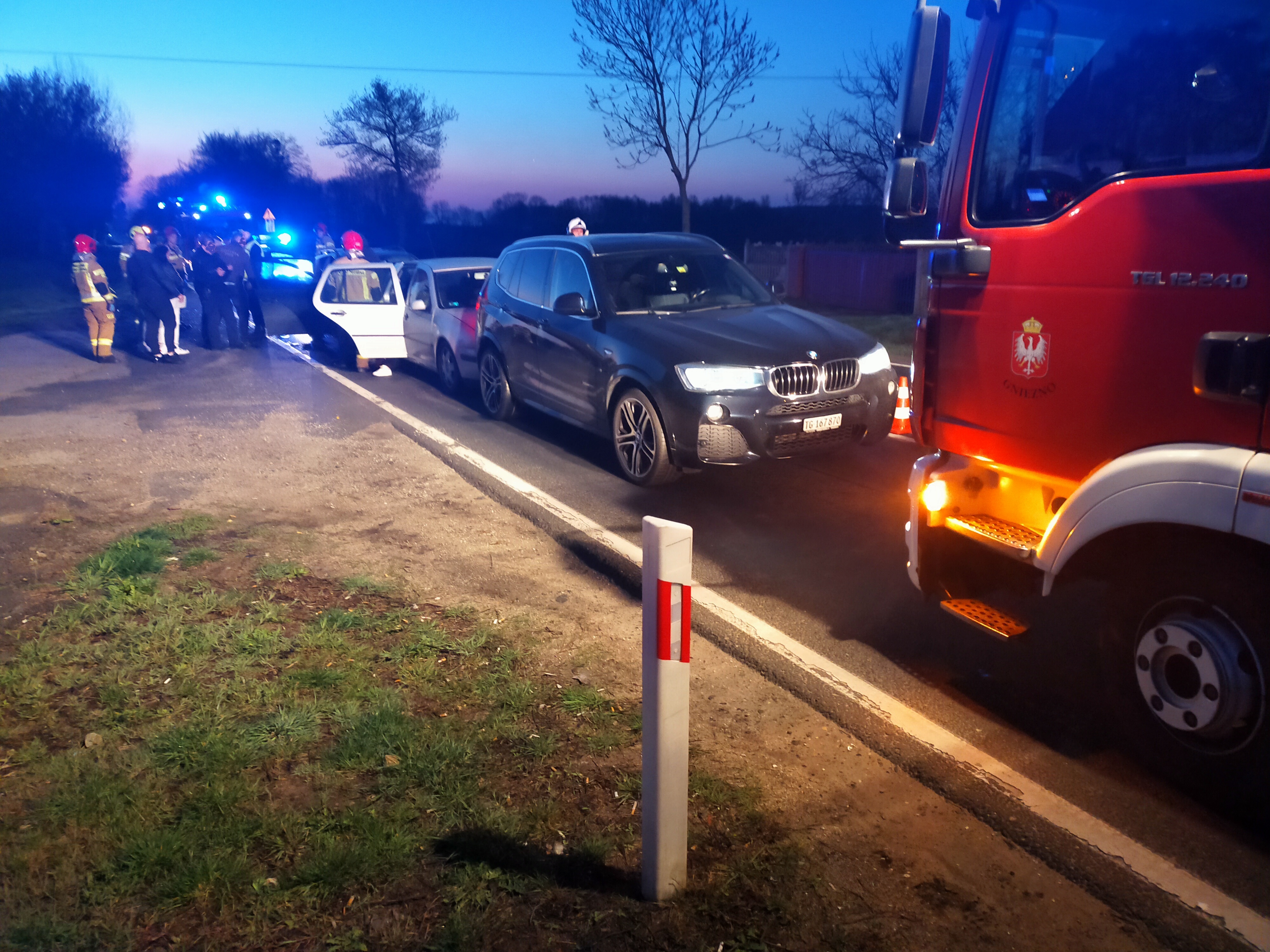 24 kwietnia 2022 roku o godzinie 4.34 do Stanowiska Kierowania Komendanta Powiatowego Państwowej Straży Pożarnej w Gnieźnie wpłynęła informacja o kolizji do której doszło na DK 15 w miejscowości Wymysłowo gm. Trzemeszno. Na miejsce zdarzenia zadysponowano jeden zastęp z Jednostki Ratowniczo-Gaśniczej w Gnieźnie, dwa zastępy z OSP Trzemeszno oraz jeden zastęp z OSP Wymysłowo. Po przybyciu na miejsce zdarzenia pierwszego zastępu okazało się, że w kolizji udział biorą cztery samochody osobowe. Wszystkie pojazdy znajdowały się w pozycji na kołach i stały na prawym pasie DK 15 w kierunku Gniezna tuż przed strzeżonym przejazdem kolejowym – brak osób zakleszczonych. Kolizja to efekt "drogowego domina".