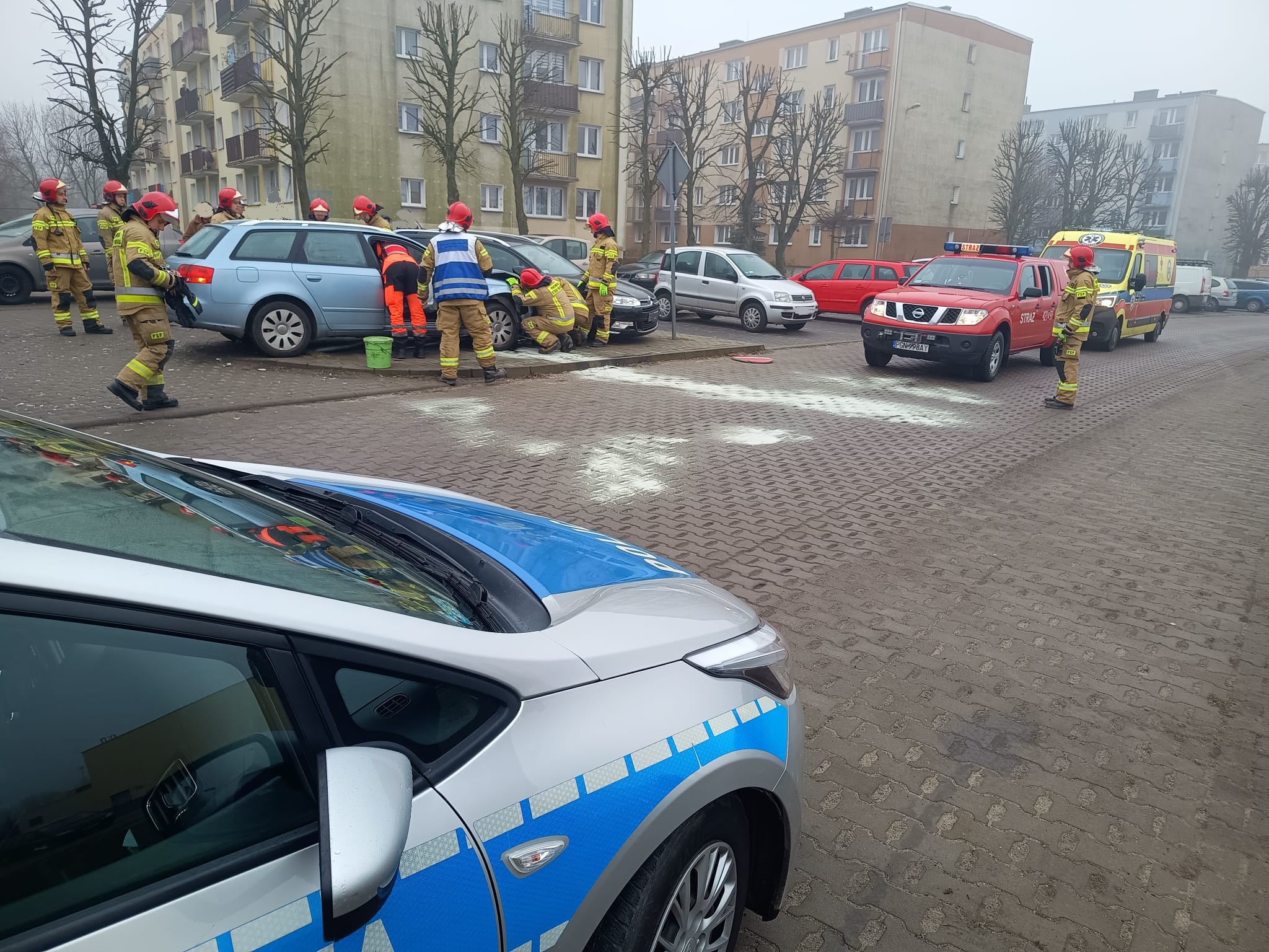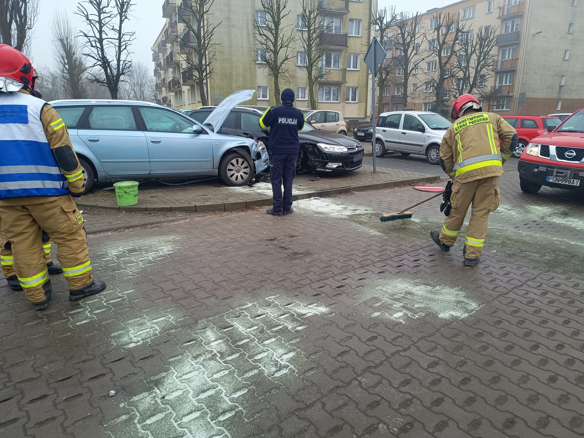 6 marca 2024 r. o godzinie 10.35 do Stanowiska Kierowania Komendanta Powiatowego Państwowej Straży Pożarnej w Gnieźnie wpłynęła informacja dotycząca wypadku drogowego w Gnieźnie przy ul. Sportowej. Na miejsce zdarzenia zadysponowano trzy zastępy z Jednostki Ratowniczo-Gaśniczej w Gnieźnie. Po przybyciu na miejsce zdarzenia pierwszego zastępu zastano samochód osobowy poza jezdnią w pozycji na kołach. W pojeździe znajdowała się jedna osoba, która wcześniej kierowała pojazdem – nie była ona uwięziona (dostęp poprzez drzwi kierowcy). Auto wcześniej uszkodziło pojemnik do segregacji szkła, ścięło znak drogowy i zatrzymało się uderzając w zaparkowany samochód.