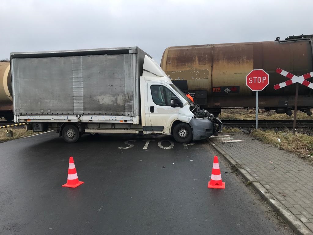 KOLIZJA SKŁADU KOLEJOWEGO Z SAMOCHODEM DOSTAWCZYM