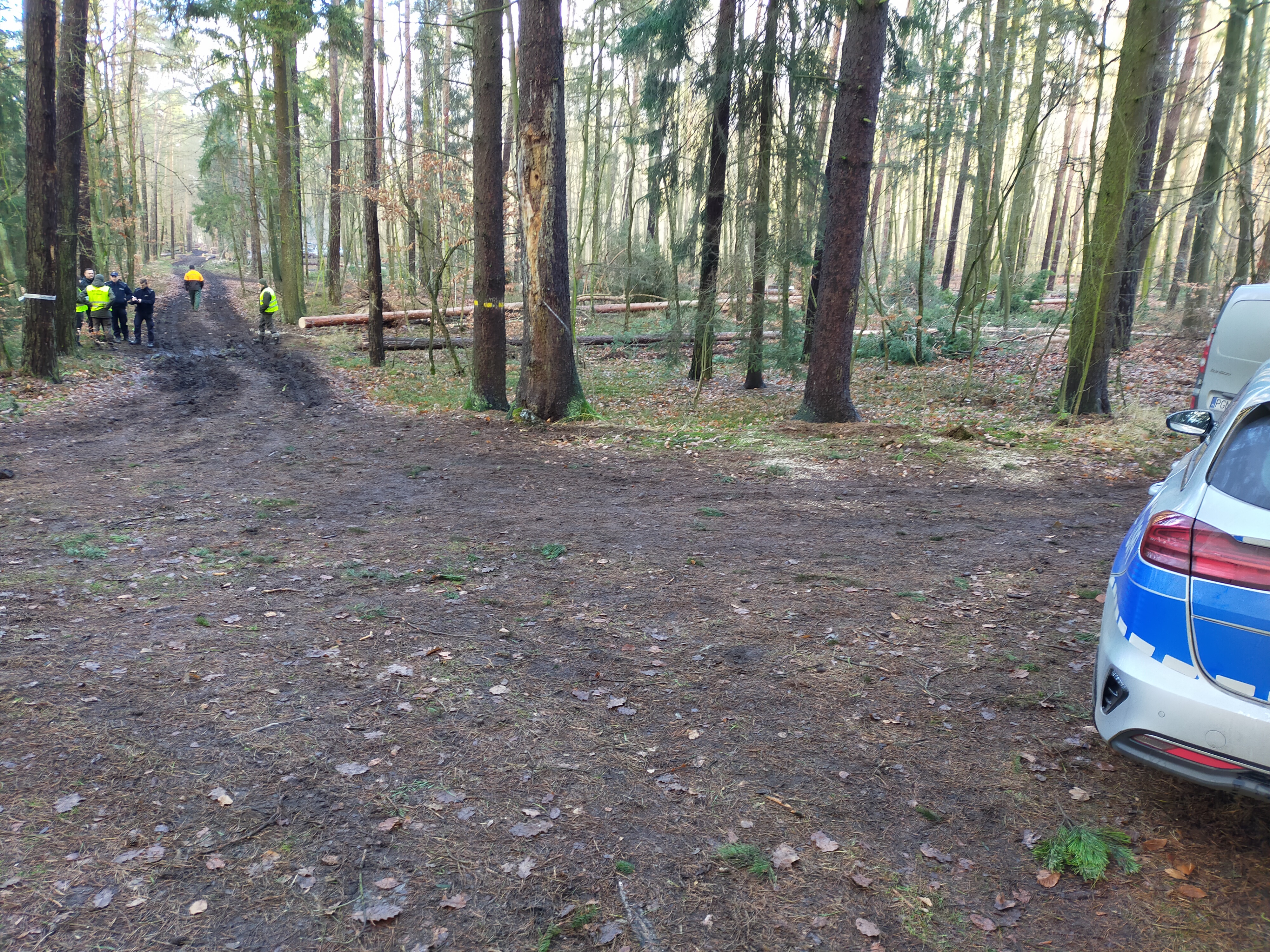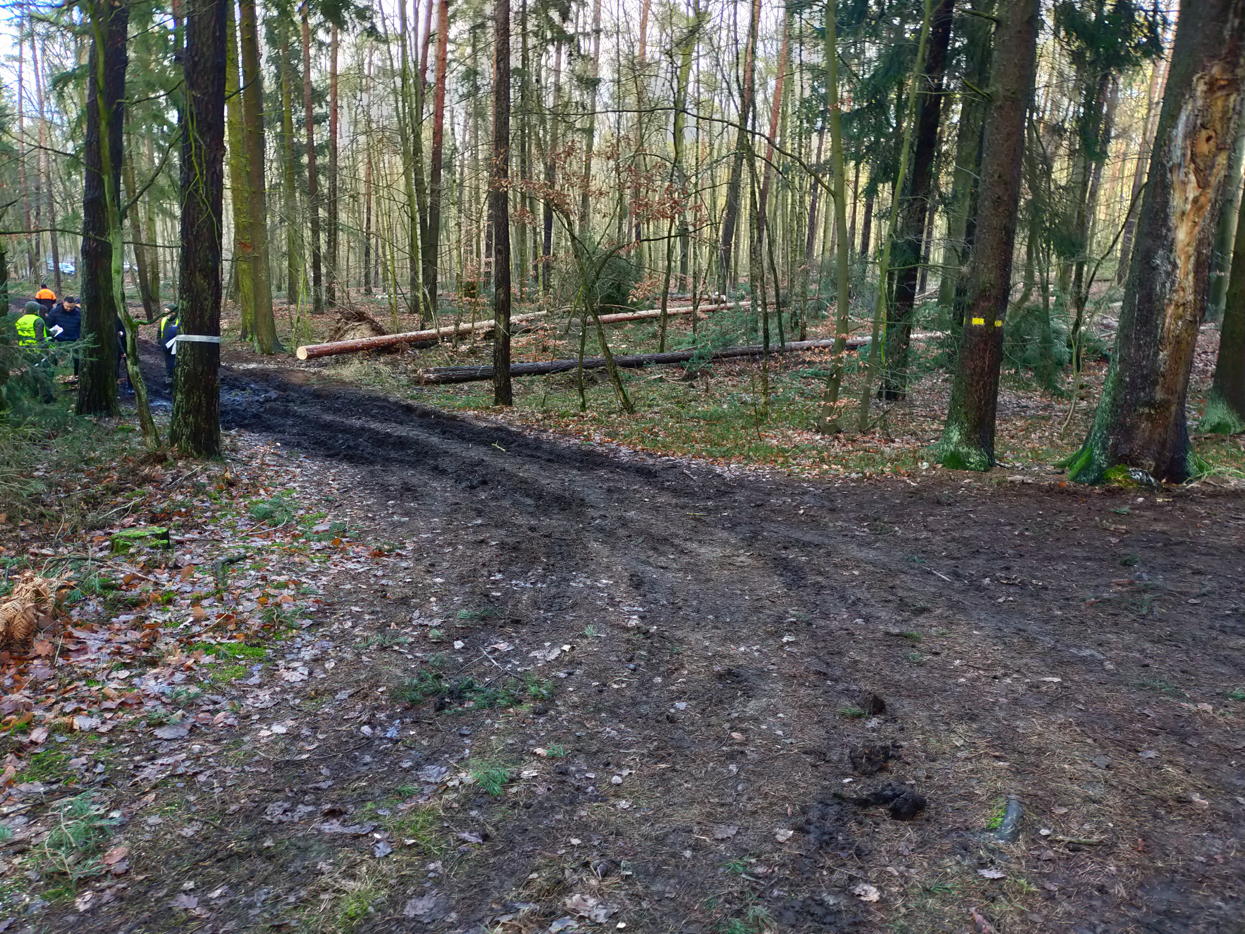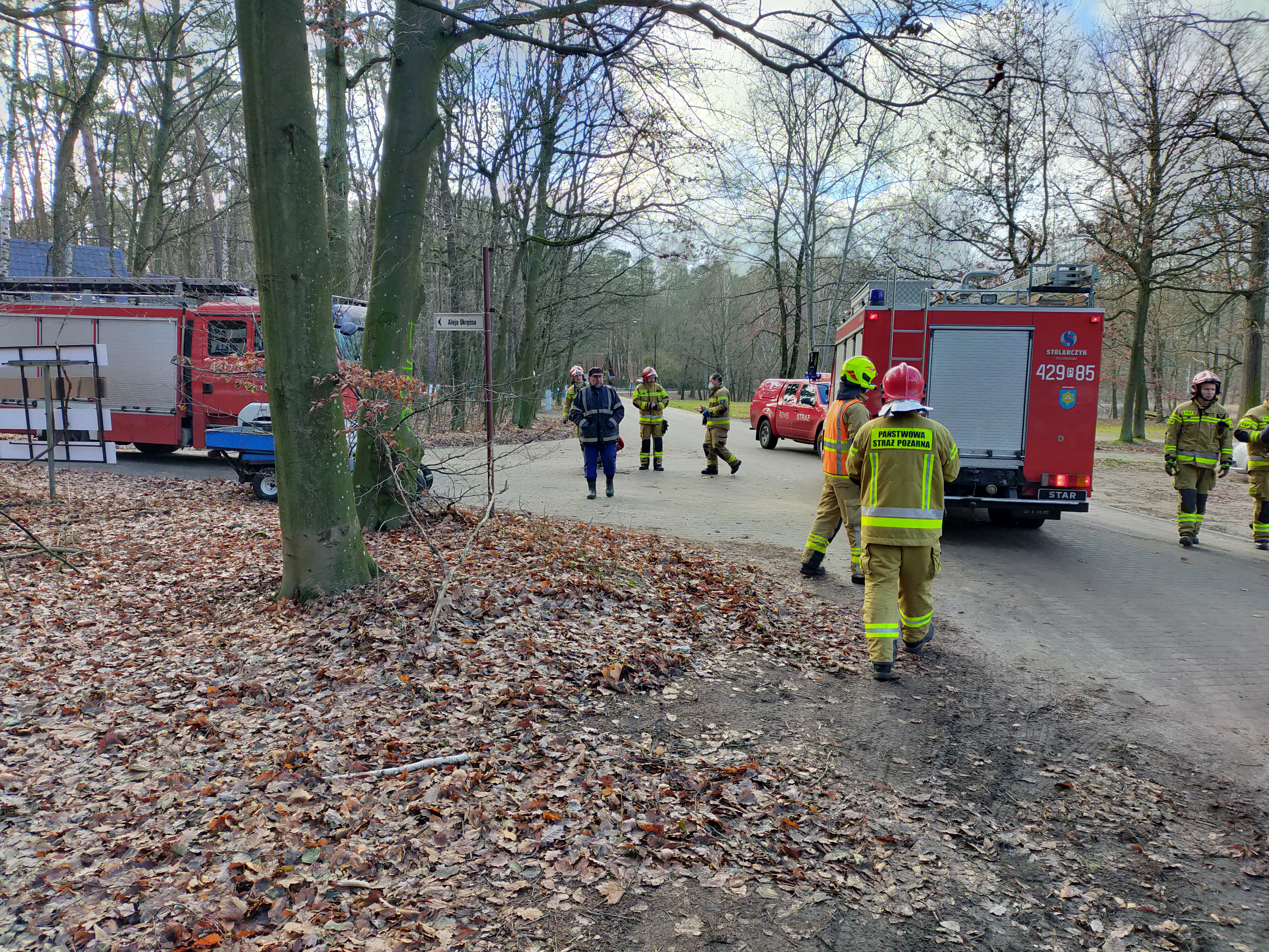 Po przybyciu na miejsce zdarzenia pierwszego zastępu zastano pracowników, którzy wcześniej prowadzili ścinkę drzew w wyznaczonym sektorze lasu. Obok ściętego drzewa leżała poszkodowana przytomna osoba, która została uderzona przez opadające po ścince drzewo.