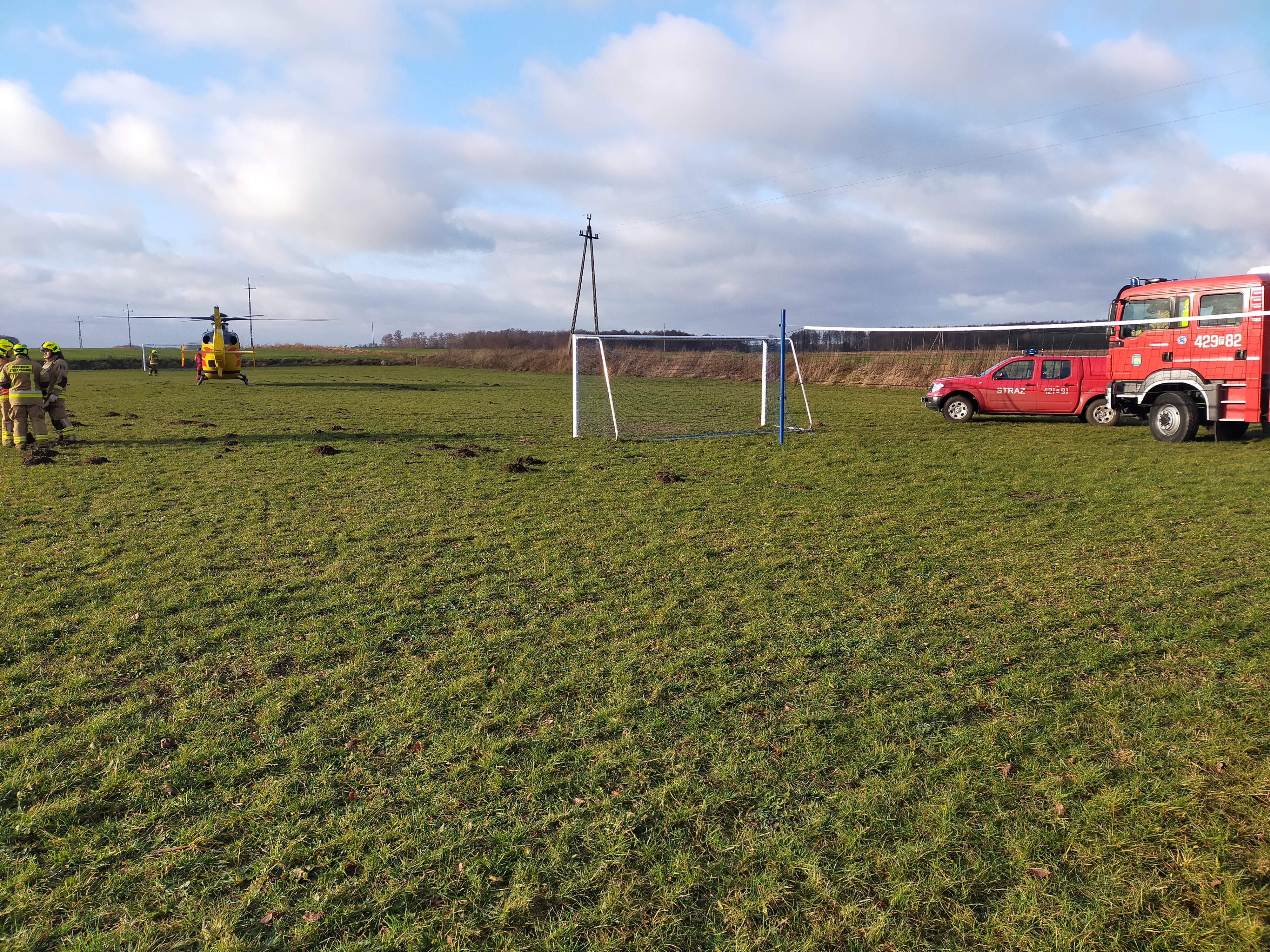 Działania Straży Pożarnej polegały na zabezpieczeniu miejsca zdarzenia i udzieleniu poszkodowanemu kwalifikowanej pierwszej pomocy. Na miejsce działań zadysponowano śmigłowiec LPR dlatego strażacy zabezpieczyli również lądowisko. Po przebadaniu poszkodowanego przez lekarza został on przewieziony na wyznaczone lądowisko i zabrany śmigłowcem LPR do szpitala. Dokładne okoliczności zdarzenia ustala Policja.