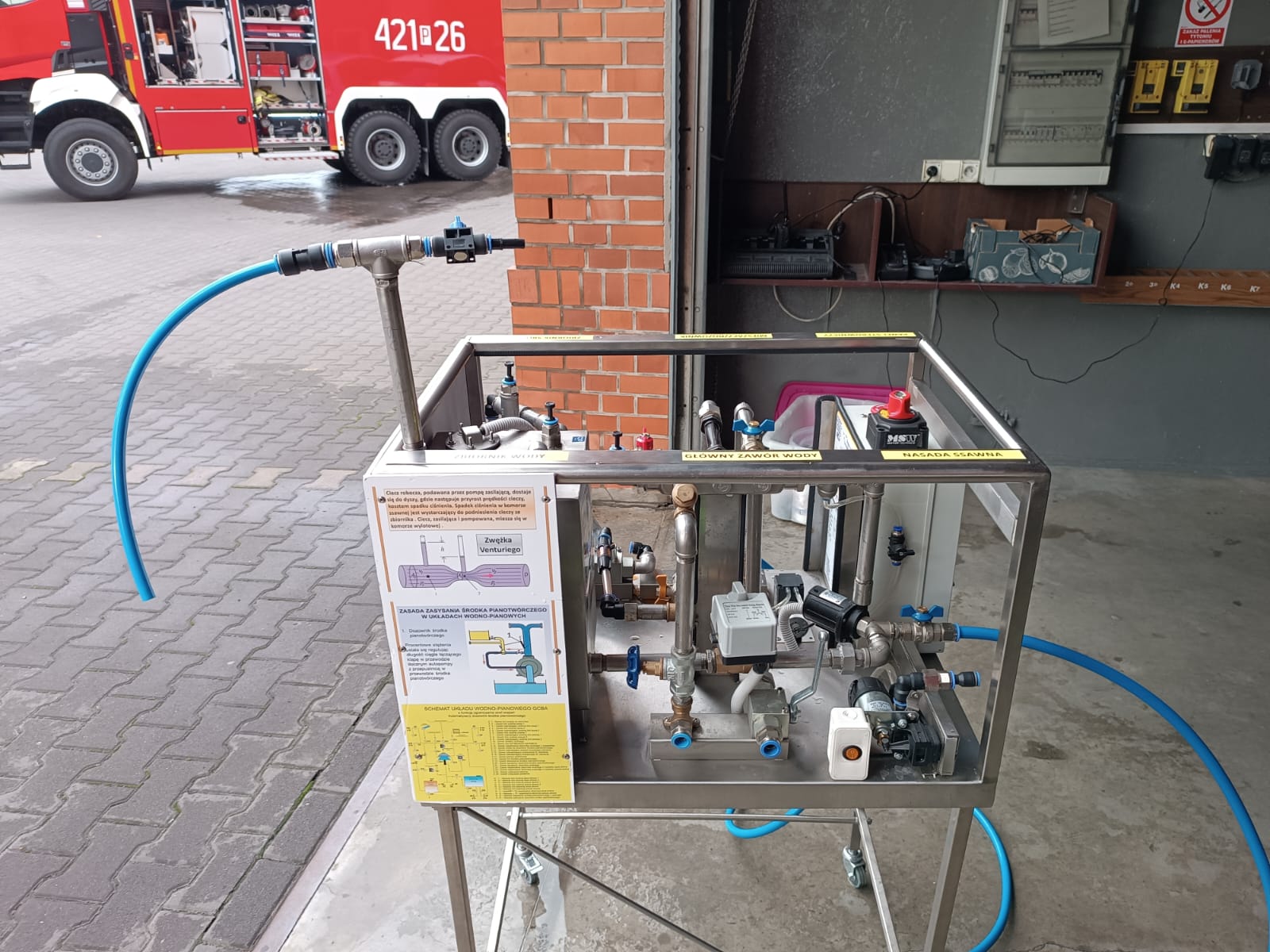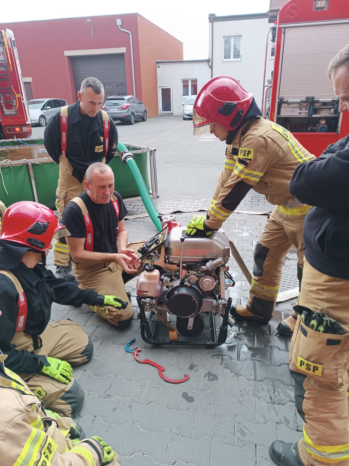 W dniach 12, 13, 14 października br. wszystkie zmiany służbowe mogły odświeżyć swoją wiedzę w zakresie zaopatrzenia wodnego. Podczas części teoretycznej asp. Mariusz Janowicz przypomniał podstawową wiedzę na temat parametrów i budowy pomp pożarniczych. Natomiast w części praktycznej przy użyciu wykonanej przez siebie makiety przybliżył zagadnienia związane z układem wodno-pianowym dzięki czemu w sposób przystępny i zrozumiały omówił budowę autopomp używanych w samochodach pożarniczych. Przećwiczono również zassanie wody ze zbiornika zewnętrznego oraz omówiono mały i duży by-pass. Celem zajęć było ustandaryzowanie wiedzy oraz odświeżenie wcześniej wypracowanych rozwiązań, które pozwalają w sposób bezpieczny i efektywny organizować zaopatrzenie wodne na potrzeby dużych akcji gaśniczych.