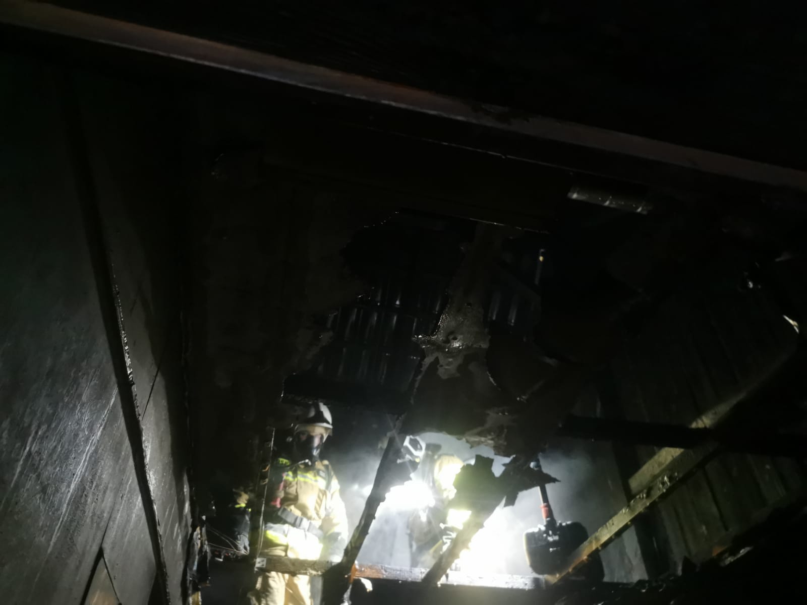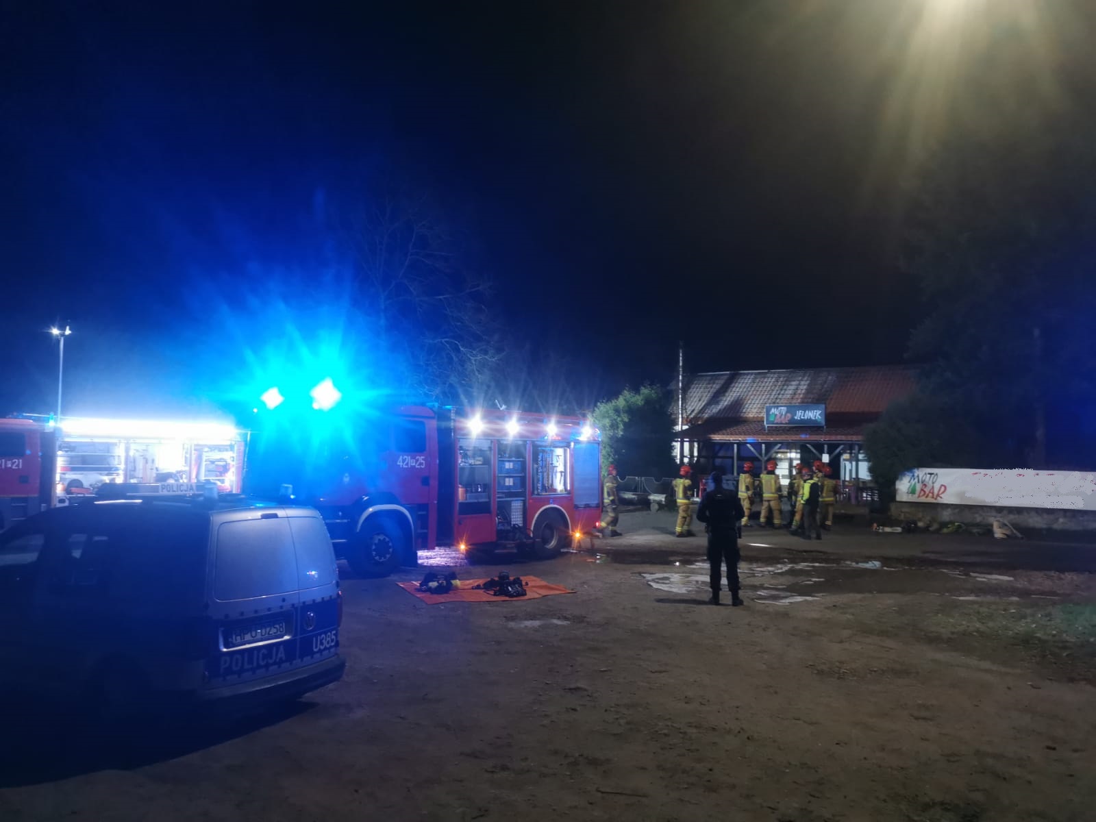 W pierwszej części akcji nasze działania polegały na zabezpieczeniu miejsca zdarzenia oraz stłumieniu płomieni wydobywających się z budynku. Drugi prąd wody podano do wnętrza przez wypalony otwór w ścianie znajdujący się w okolicy kotłowni. Ze względu na silne zadymienie strażacy pracowali w aparatach ochrony dróg oddechowych. Po otwarciu drzwi rota wyposażona w kamerę termowizyjną weszła do środka w celu zlokalizowania źródła ognia. W obiekcie odłączono dopływ energii elektrycznej. Równolegle działania prowadzono z kosza drabiny mechanicznej, z którego wykonano przecinkę dachową przy użyciu pilarki ratowniczej. Umożliwiło to odprowadzenie dymu na zewnątrz dzięki zastosowaniu wentylatorów nadciśnieniowych, co znacząco poprawiło widoczność. Strażacy wynieśli z budynku również dwie 11-kilogramowe butle gazowe. Następnie usuwano i dogaszano tlące się elementy wyposażenia oraz przystąpiono do częściowej rozbiórki nadpalonych fragmentów dachu i ścian. Dokładne okoliczności zdarzenia ustala Policja.
