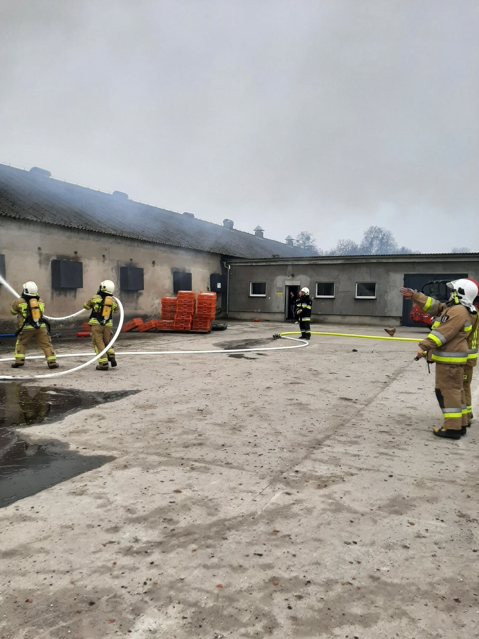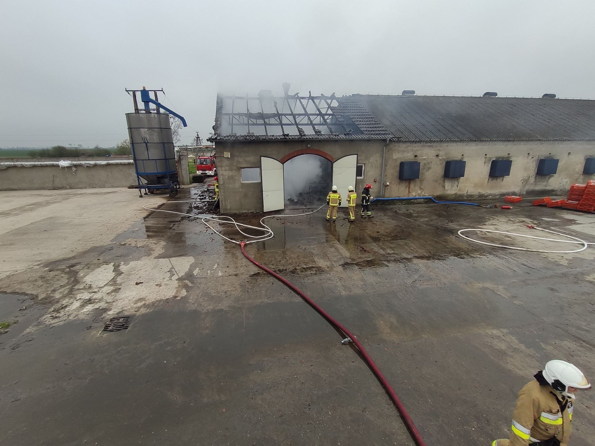 1 maja 2021 roku podczas zmiany służby o godzinie 7:53 do Stanowiska Kierowania Komendanta Powiatowego Państwowej Straży Pożarnej w Gnieźnie (SK KP) wpłynęła informacja o pożarze budynku inwentarskiego, w którym miało znajdować się około 10 tysięcy sztuk drobiu. Cały budynek miał być objęty ogniem. Dyżurny SK KP w Gnieźnie na miejsce zdarzenia natychmiast zadysponował zastępy z Jednostki Ratowniczo-Gaśniczej w Gnieźnie (JRG) tj. GCBA-Rt 5/32, GCBA9,5/50, SD-37 oraz SLRr, a także zastępy Ochotniczych Straży Pożarnych (OSP) z Niechanowa (GBA3/16 i GBA-Rt2/17), Witkowa (GBA-Rt 2,5/25,GCBA 6,6/32) Mielżyna (GBA 3/30), Wiekowa (GLBAM 0,7/22/16 – jednostka pompowa). Po dojeździe na miejsce zdarzenia i przeprowadzeniu rozpoznania ustalono, że pali się kotłownia zlokalizowana przy budynku inwentarskim. W kurniku znajdowało się około 7000 tysięcy kur. Wewnątrz kotłowni znajdował się piec na bale słomiane oraz duże ilości pojemników do przechowywania jajek. Jeszcze przed przybyciem pierwszych zastępów w całym gospodarstwie, na terenie którego wybuchł pożar odłączono dopływ energii elektrycznej. Działania zastępów straży pożarnej polegały na zabezpieczeniu miejsca zdarzenia oraz podaniu trzech prądów gaśniczych – jeden w natarciu do wnętrza kotłowni oraz dwóch w obronie budynku inwentarskiego. Po przybyciu kolejnych sił i środków wprowadzono dwa dodatkowe prądy gaśnicze, w tym z kosza drabiny mechanicznej. Kolejne przybyłe zastępu utworzyły Punkt Czerpania Wody (PCK) ze znajdujących się na terenie gospodarstwa stawu oraz hydrantów naziemnych. Ze względu na oddzielenie ścianą kotłowni od części inwentarskiej nie było potrzeby ewakuacji hodowanego ptactwa. Przez cały czas działań prowadzono monitorowanie poziomu tlenku węgla w kurniku oraz sprawdzano strop kamerą termowizyjną. Na miejsce zdarzenia zadysponowano oficera w dyspozycji komendanta powiatowego. Teren akcji podzielono na dwa odcinki bojowe, zorganizowano łączność na potrzeby Kierującego Działaniem Ratowniczym (KDR) wykorzystująca kanał dowodzenia i współdziałania KDW, przydzielony przez Stanowisko Kierowania Komendanta Wojewódzkiego Państwowej Straży Pożarnej w Poznaniu. Po lokalizacji pożaru sukcesywnie dogaszano pogorzelisko oraz wykonywano prace rozbiórkowe nadpalonego dachu.