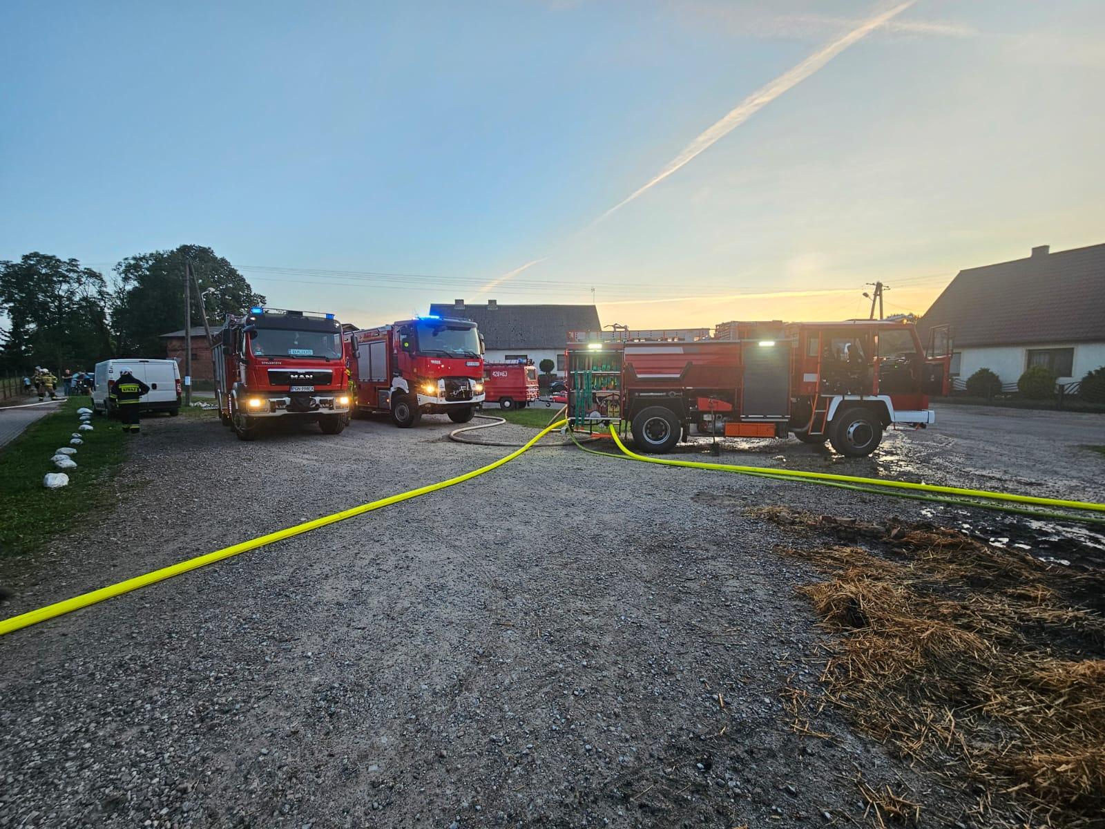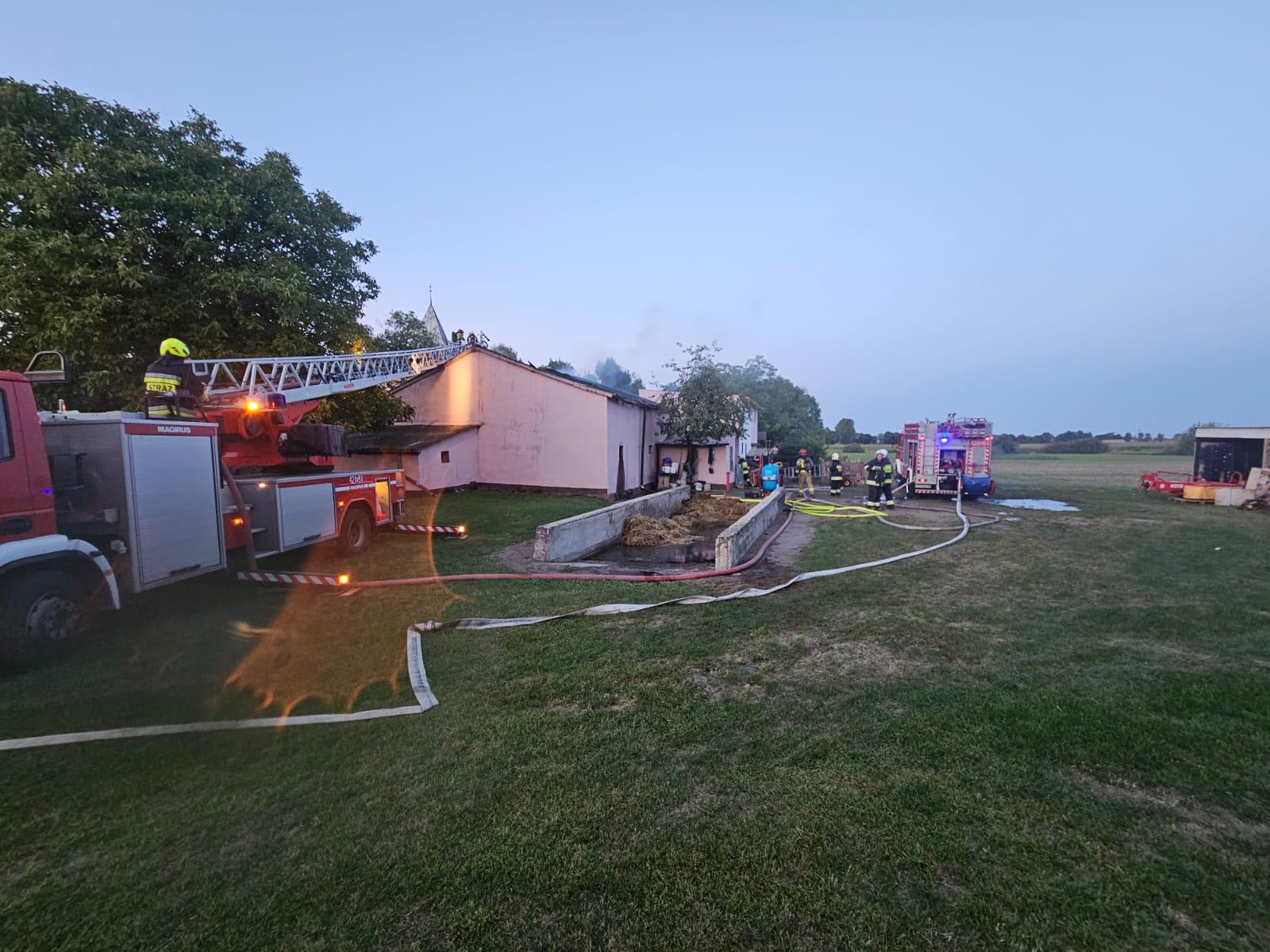 1 sierpnia 2024 roku przed godziną 20:00 Stanowisko Kierowania Komendanta Powiatowego Państwowej Straży Pożarnej w Gnieźnie (SKKP)otrzymało informację w postaci tzw. formatki o pożarze budynku gospodarczego w miejscowości Jastrzębowo (gm. Trzemeszno). Ze zgłoszenia wynikało, że w środku budynku znajdują się zwierzęta hodowlane, a mianowicie krowy, świnie oraz kury. Na miejsce zdarzenia zadysponowano zastępy z Jednostki Ratowniczo-Gaśniczej w Gnieźnie (GCBA -Rt 5/32, GCBA 9,1/60 oraz SD-37), a także zastępy ochotniczych straży pożarnych z gmin Trzemeszno i Gniezno tj. OSP Trzemeszno (GBA-Rt 2,5/23 i GCBA-Rt 5/35), OSP Kruchowo (GBAM 2,8/20/20), OSP Ławki (GLM 8) oraz OSP Strzyżewo Smykowe (GCBA 5/32).
