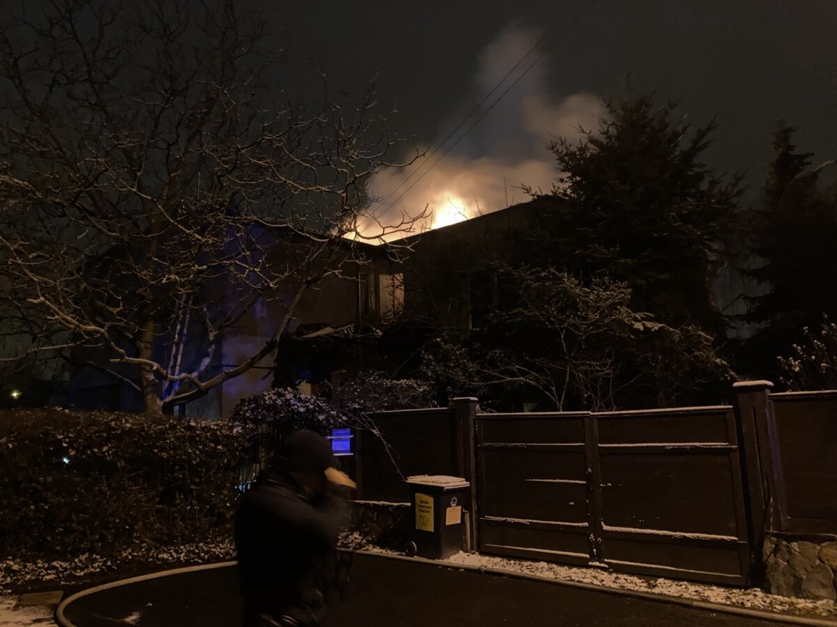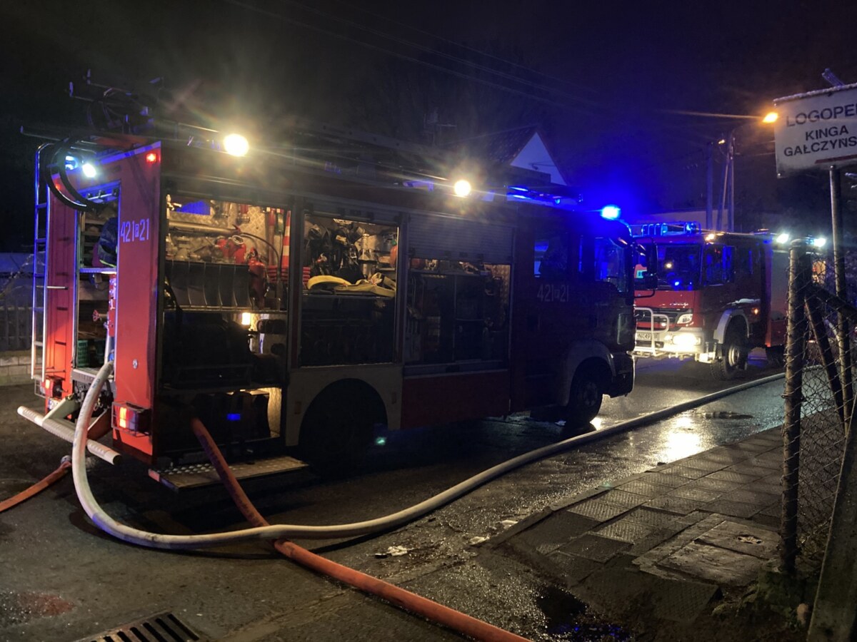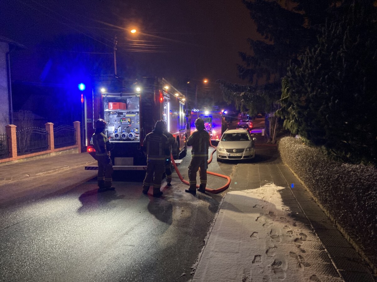 Po przybyciu na miejsce zdarzenia zastano rozwinięty pożar szklarni bezpośrednio przyległej do domu jednorodzinnego oraz pożar styropianowego ocieplenia elewacji zewnętrznej budynku. Poprzez otwory okienne ogień przedostał się również do wnętrza domu. W momencie powstania pożaru w budynku znajdowały się trzy osoby, które opuściły dom przed przybyciem służb ratunkowych.