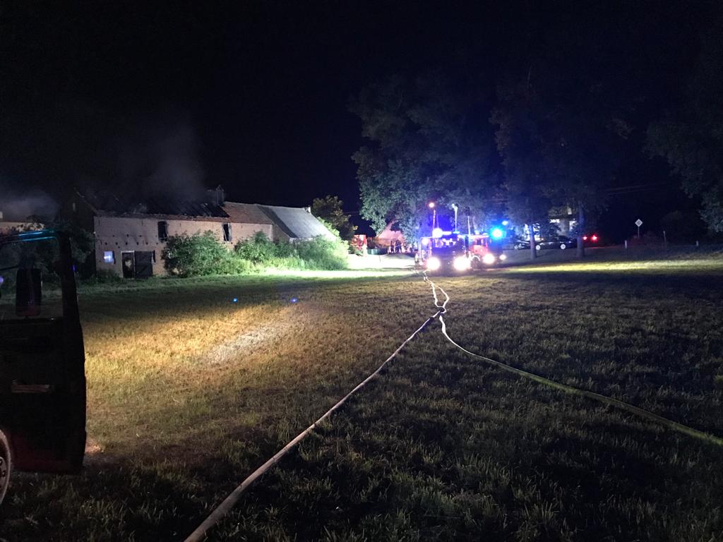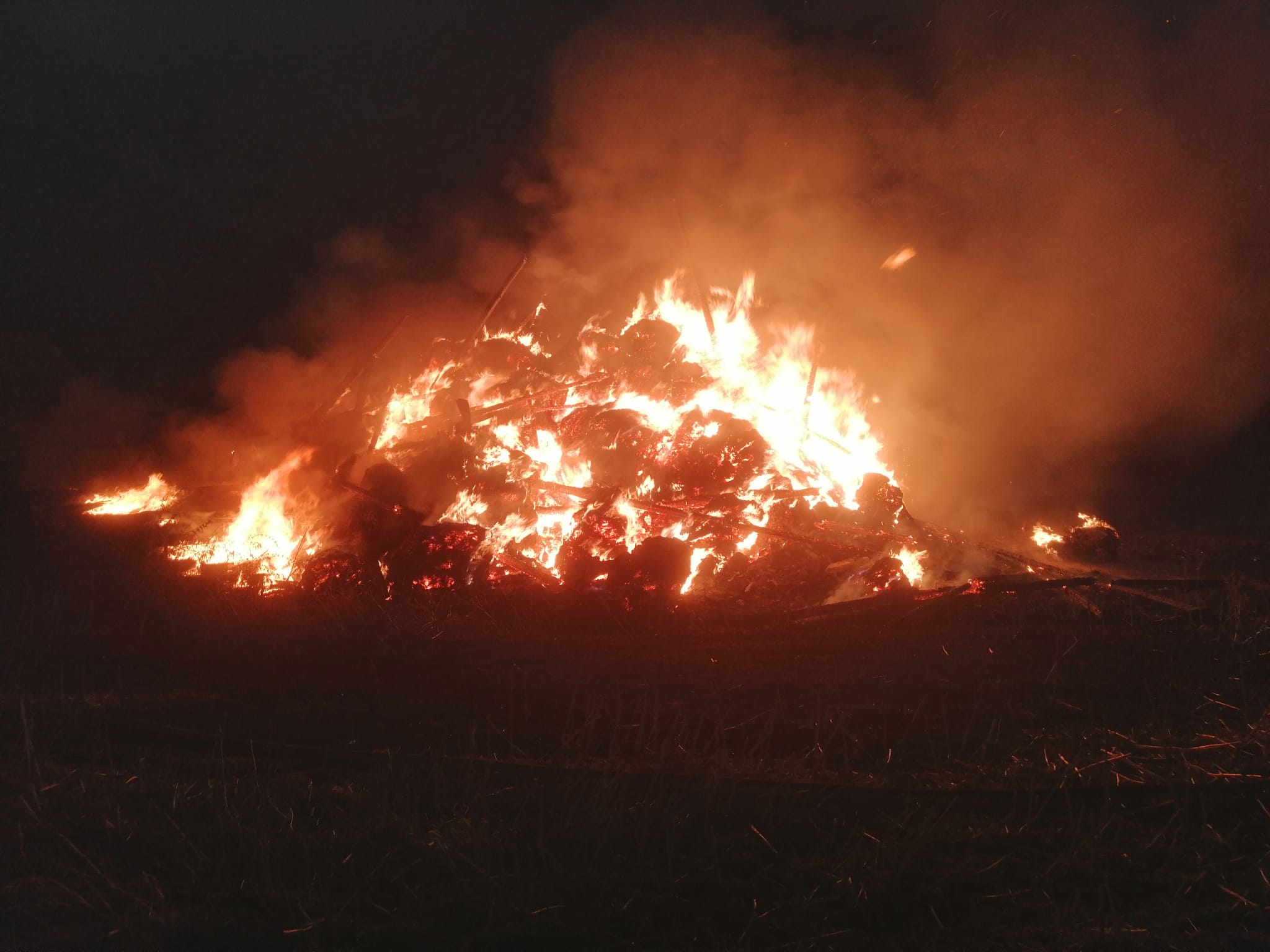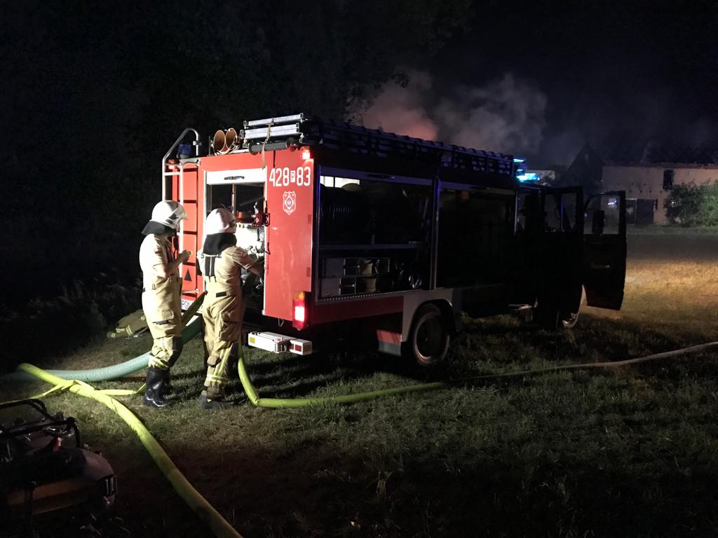 POŻAR DREWNIANEJ STODOŁY WYPEŁNIONEJ SŁOMĄ