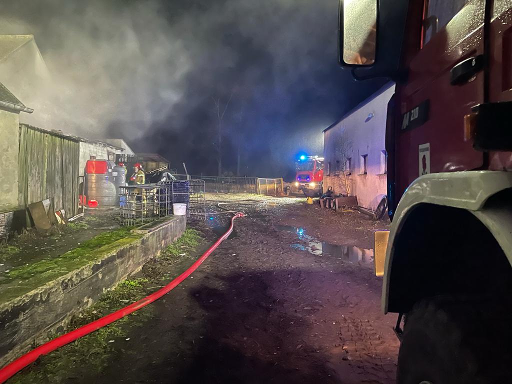 POŻAR WIATY W KTÓREJ SKŁADOWANY BYŁ OLEJ NAPĘDOWY