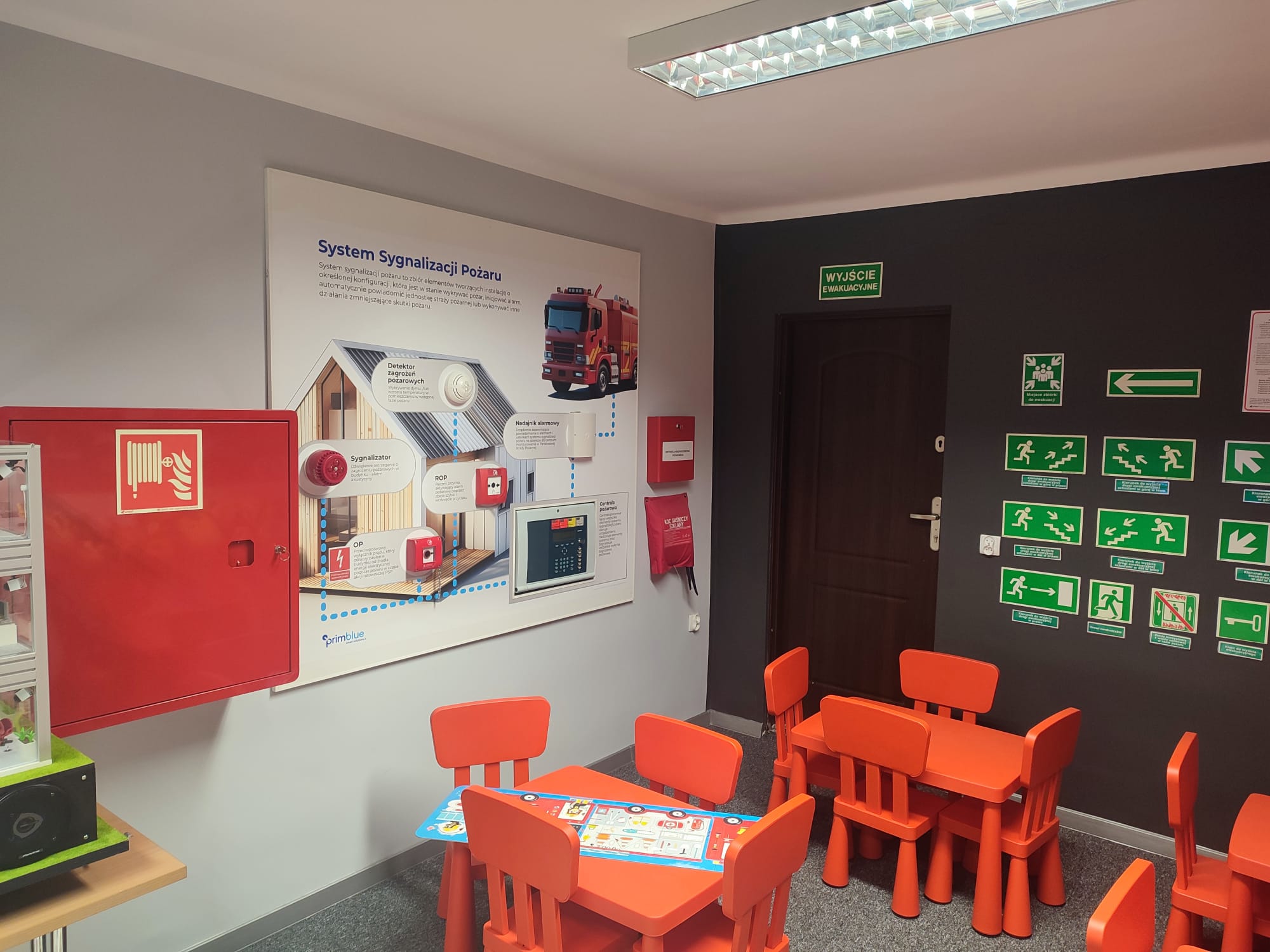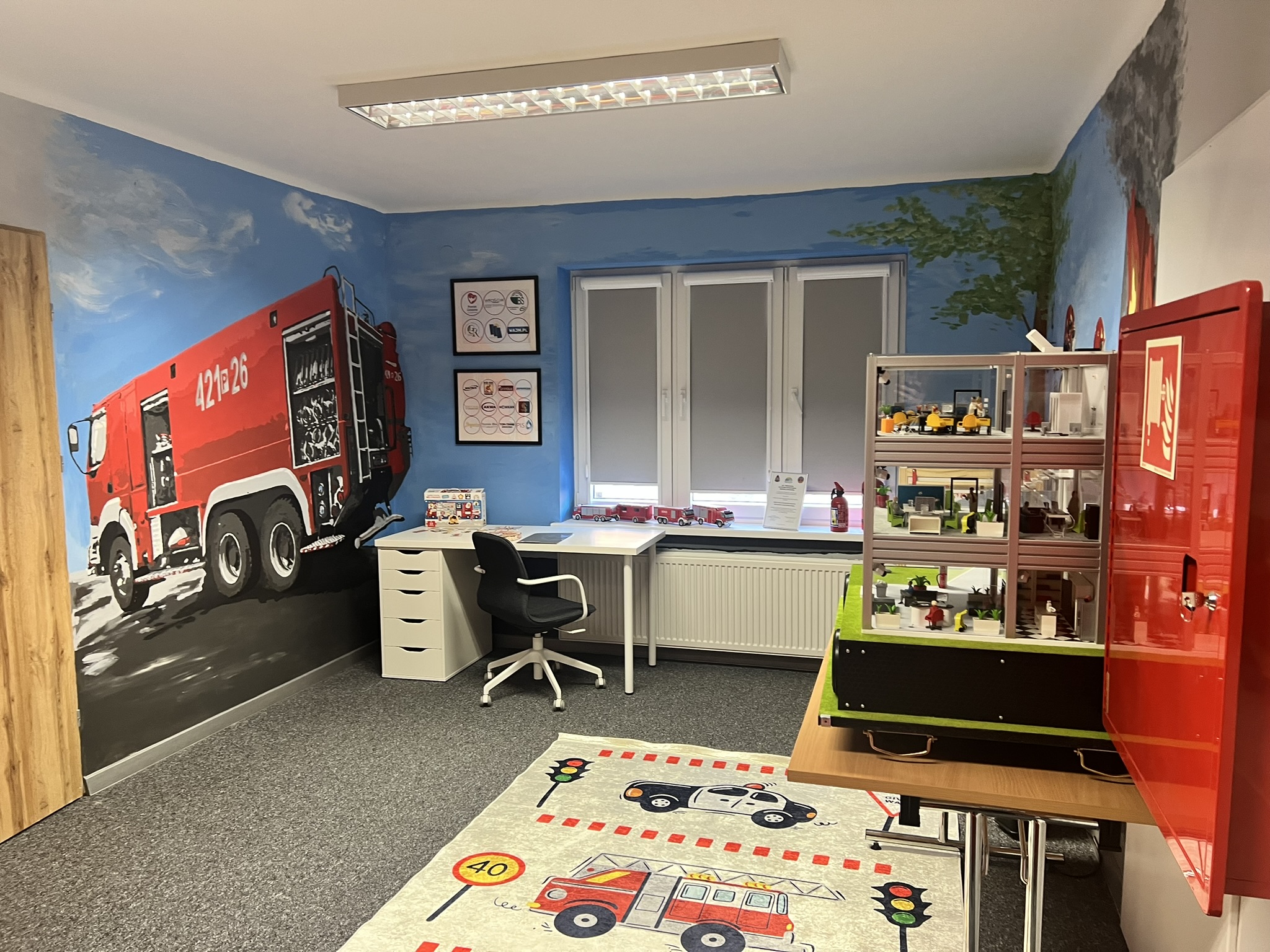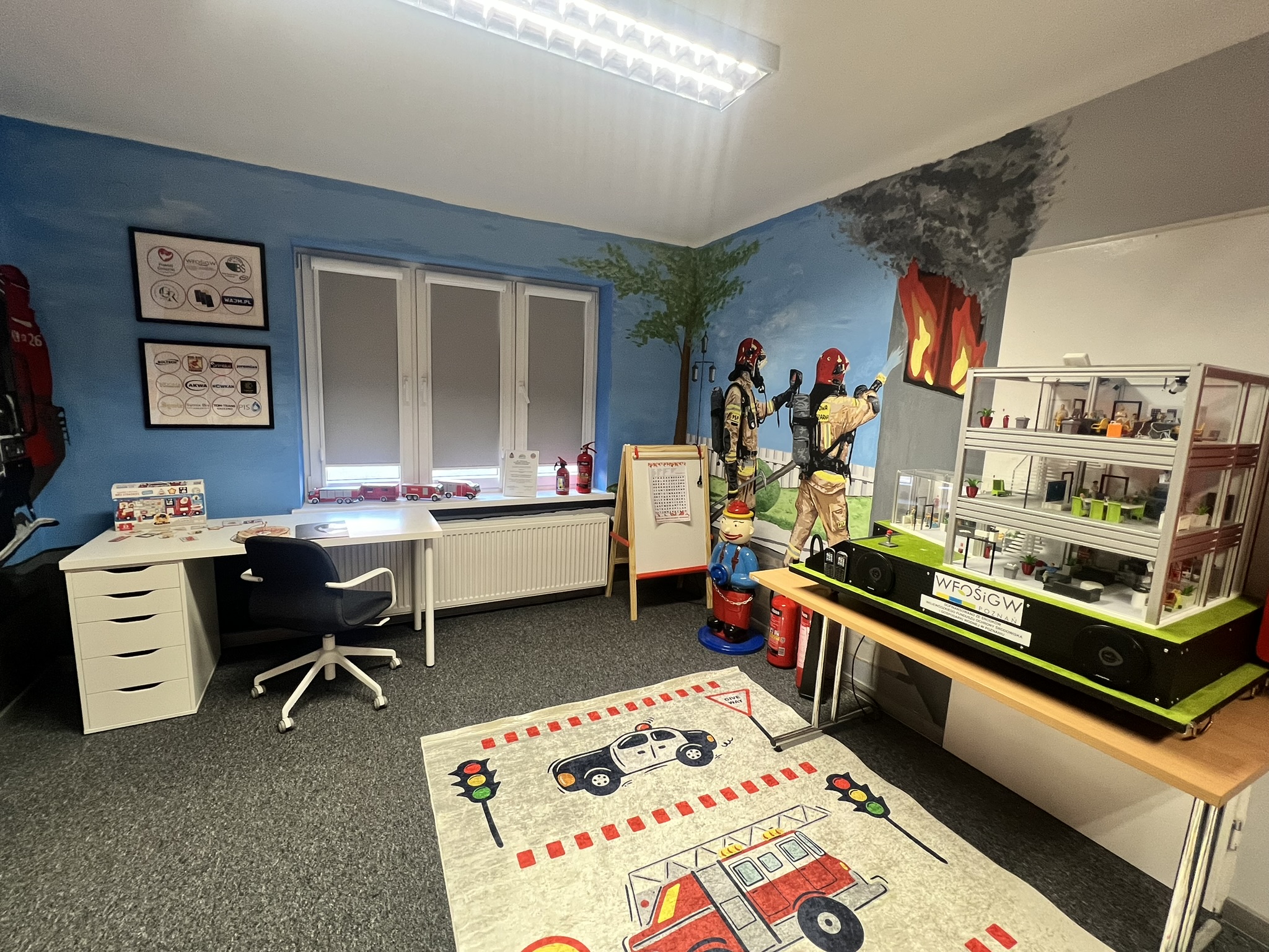 Ważnym atutem tej salki edukacyjnej jest to, że znajduje się ona na parterze w niezależnym budynku. Dzięki temu jest ona dostępna zarówno dla przedszkolaków, osób starszych jak i osób niepełnosprawnych oraz nie wpływa stresogennie na uczestników zajęć w związku z zakresem działań strażaków.