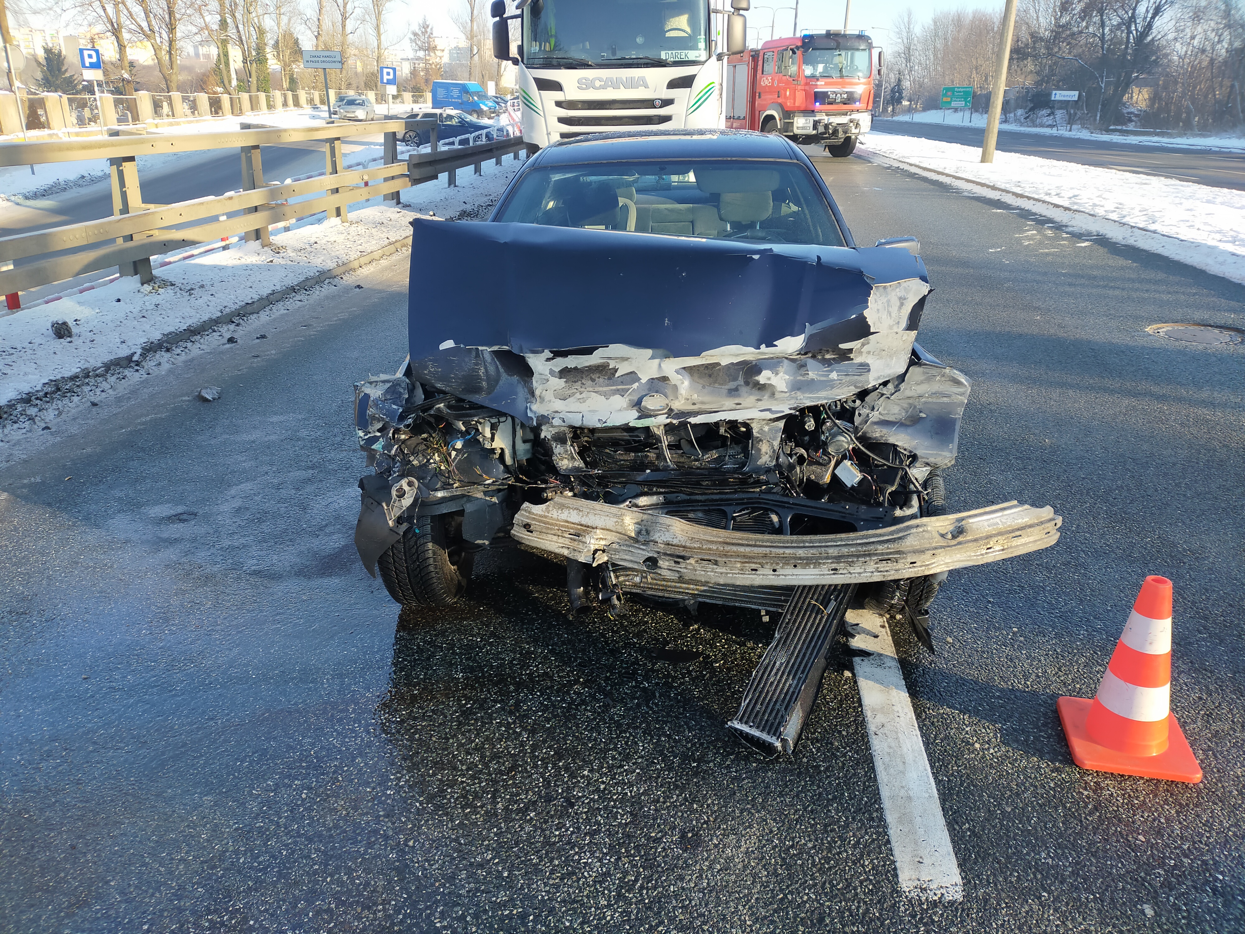 SAMOCHÓD OSOBOWY UDERZYŁ W BARIERĘ ENERGOCHŁONNĄ