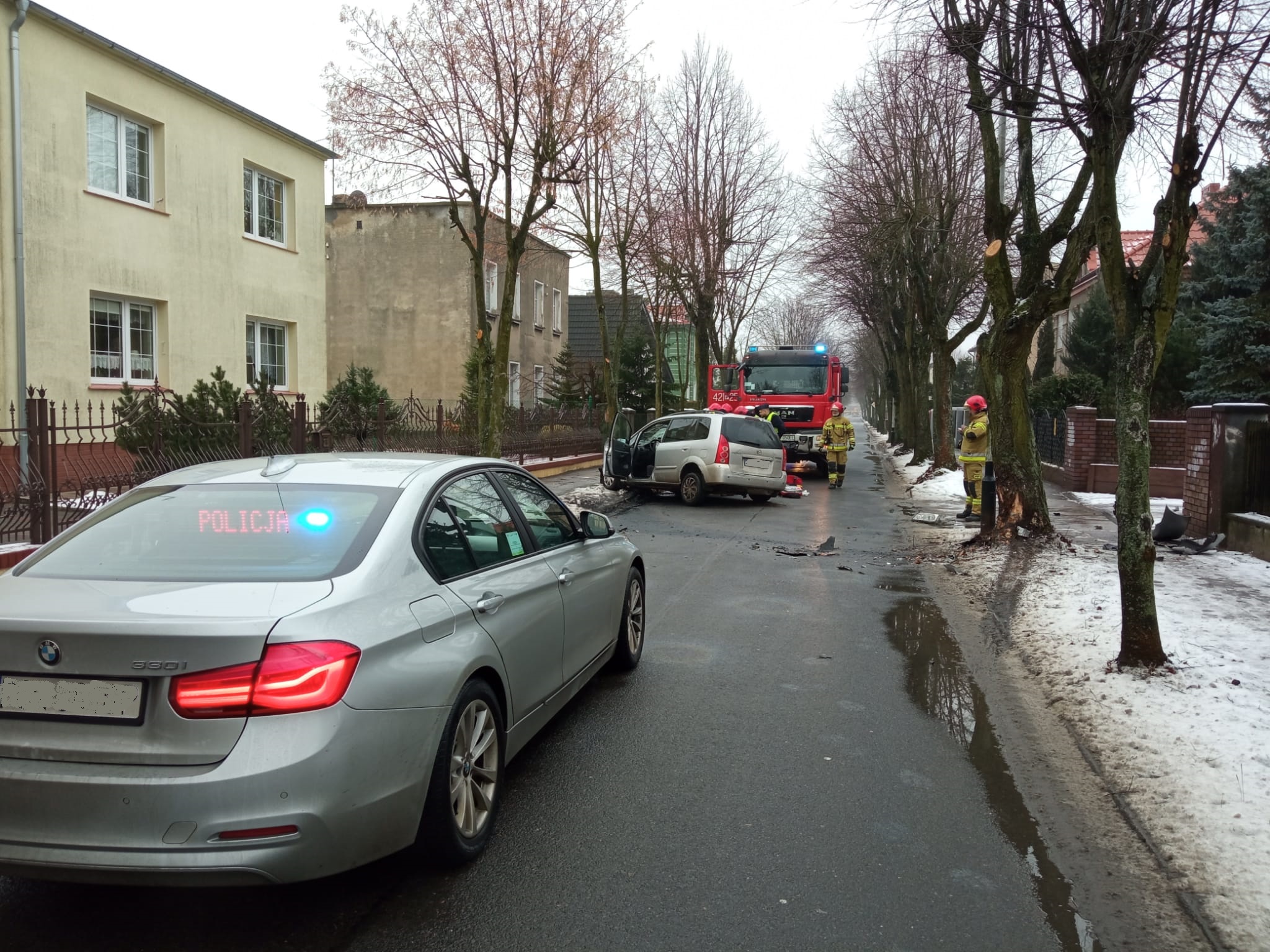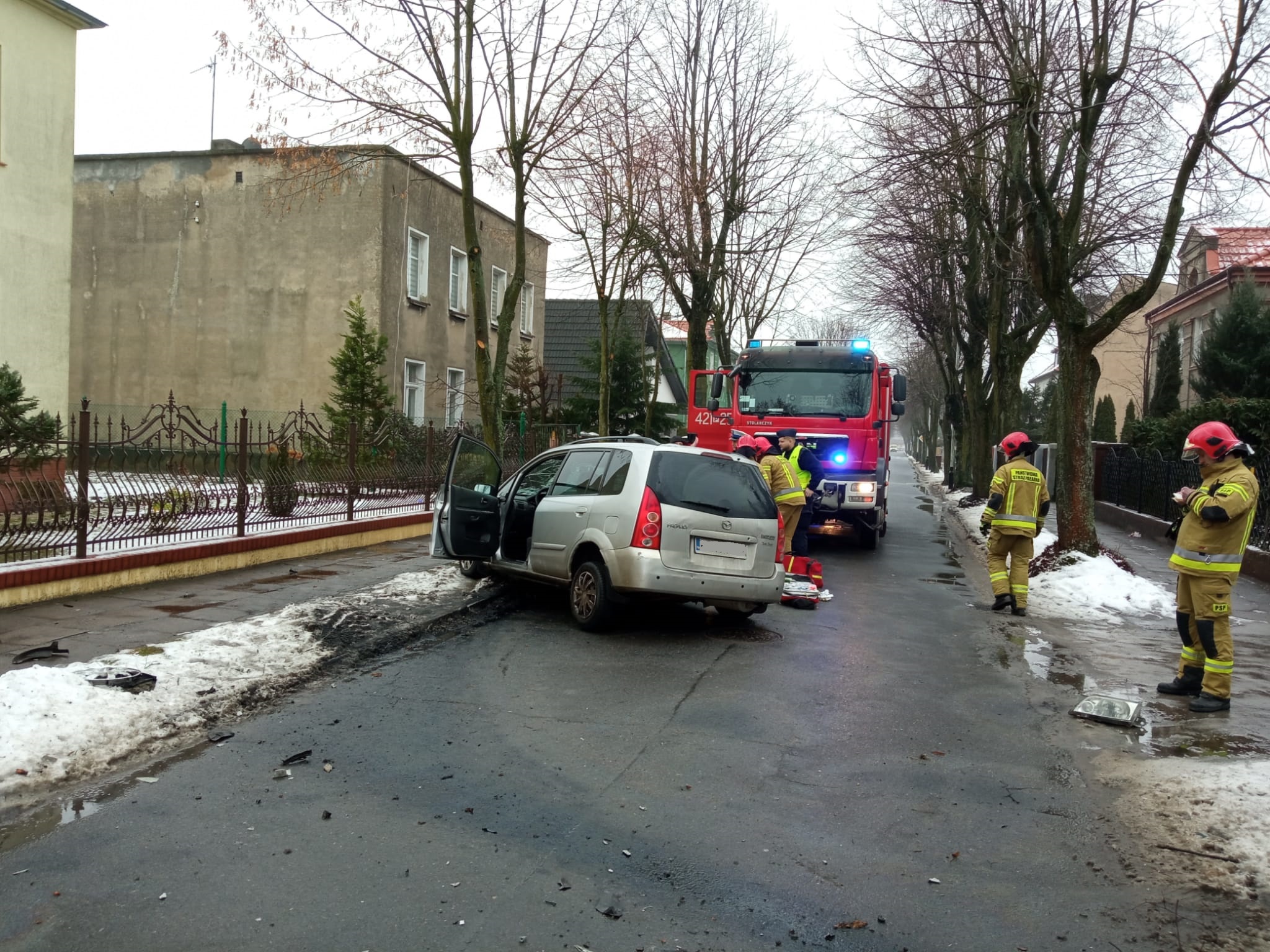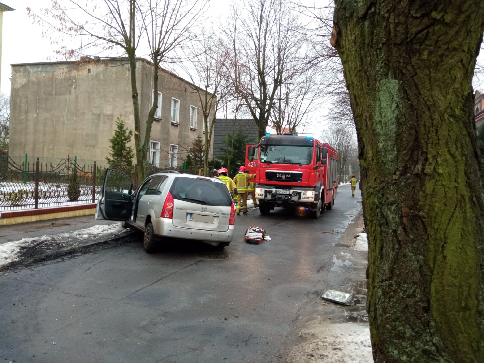 13 stycznia 2022 r. tuż po godzinie 10 do Stanowiska Kierowania Komendanta Powiatowego Państwowej Straży Pożarnej w Gnieźnie wpłynęła informacja o wypadku drogowym do którego doszło w Gnieźnie na ul Libelta. Na miejsce zdarzenia zadysponowano dwa zastępy z Jednostki Ratowniczo-Gaśniczej w Gnieźnie. Po przybyciu na miejsce zdarzenia zastano samochód osobowy po zderzeniu z przydrożnym drzewem. Rozbite auto znajdowało się w pozycji na kołach a pojazdem podróżowały dwie osoby.