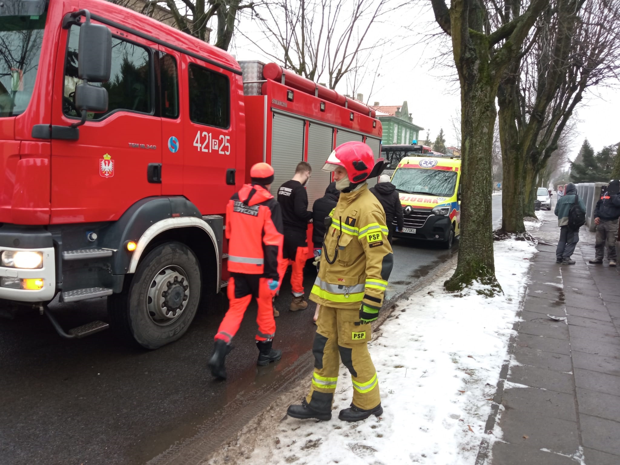 Na czas prowadzonych działań ruch na tym odcinku drogi był utrudniony. Na miejsce zdarzenia przybył również patrol Policji, który ustala dokładne okoliczności zdarzenia.
