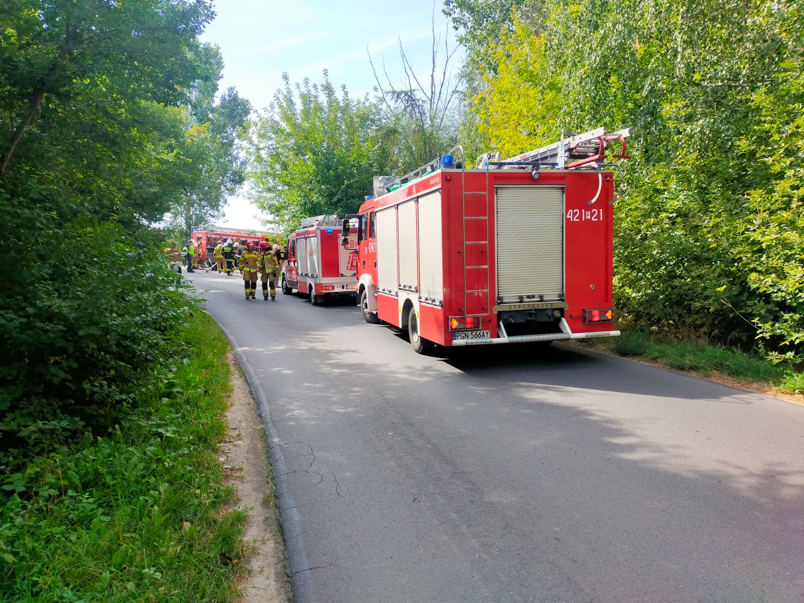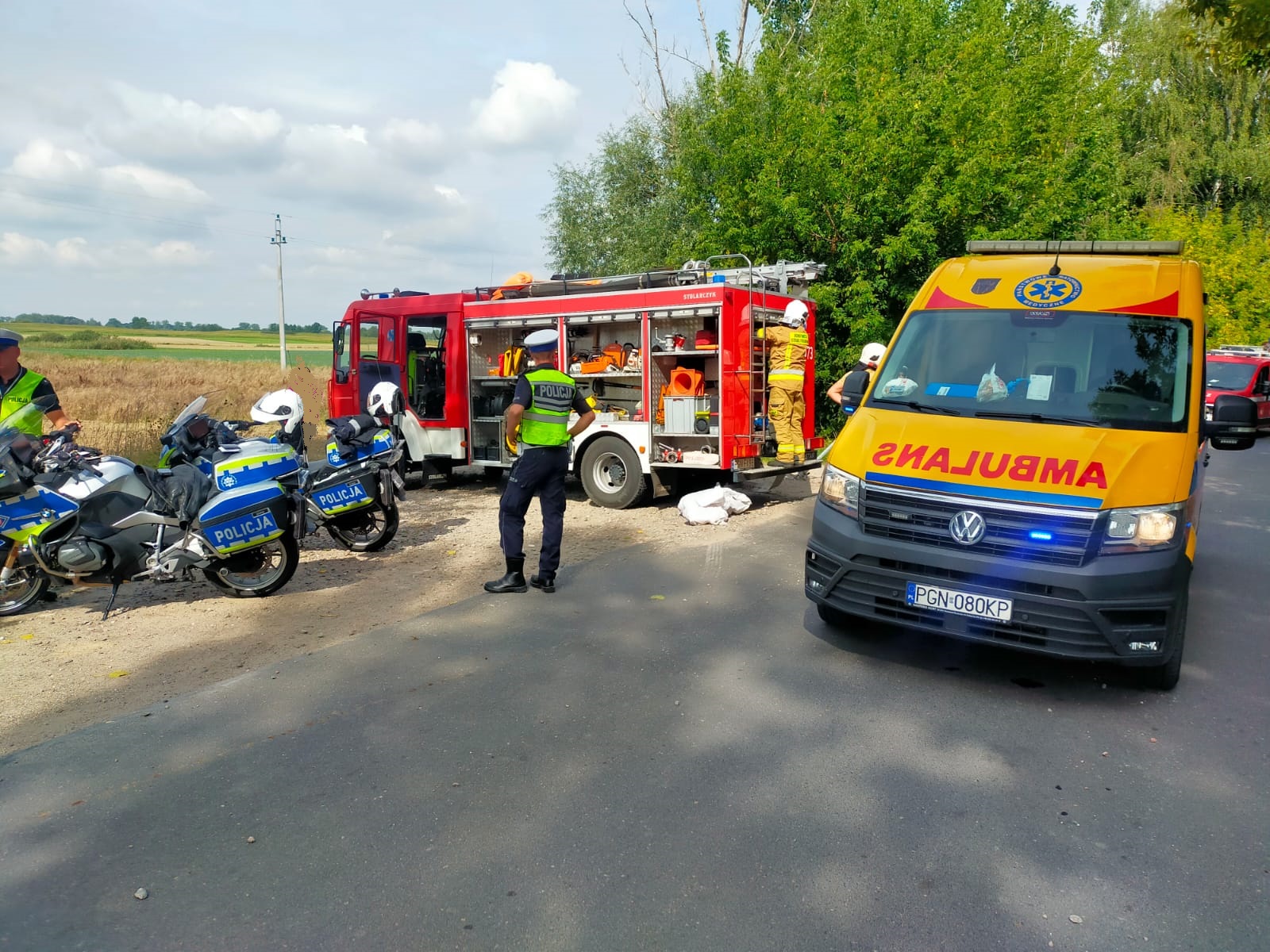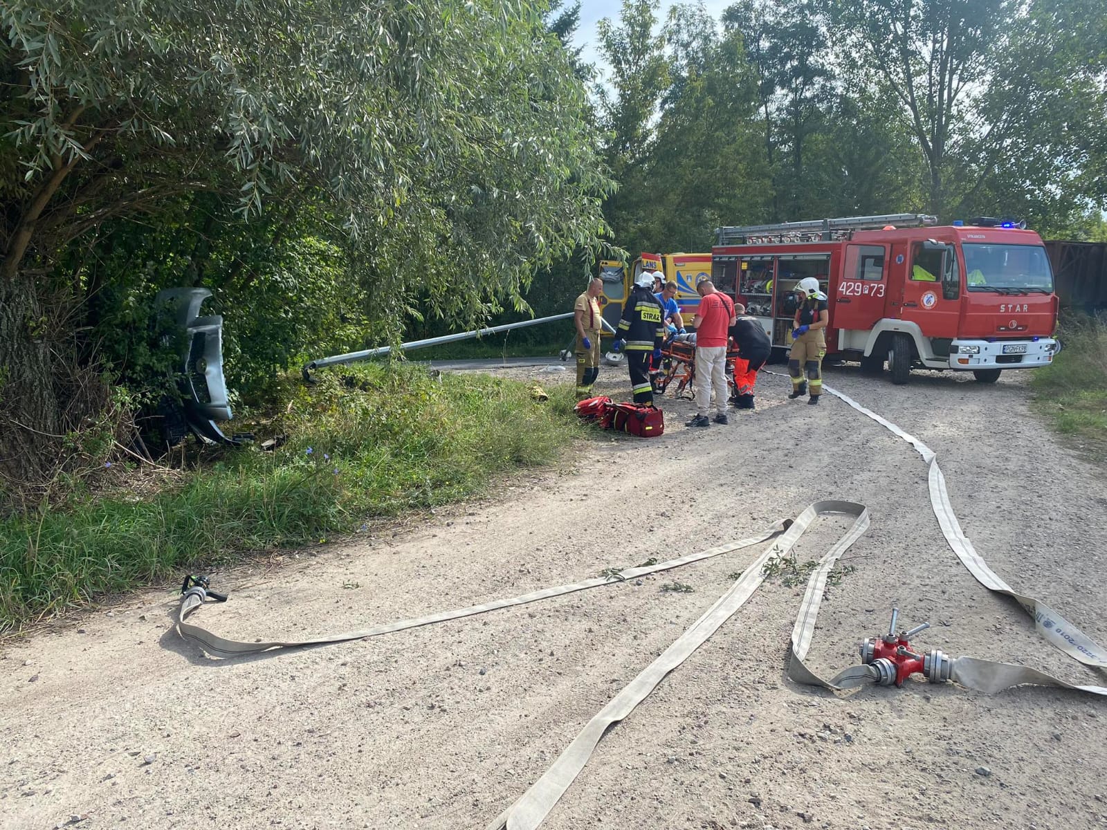 5 września 2023 r. o godzinie 10.46 do Stanowiska Kierowania Komendanta Powiatowego Państwowej Straży Pożarnej w Gnieźnie wpłynęła informacja dotycząca wypadku drogowego w miejscowości Zieleń gm. Trzemeszno. Na miejsce zdarzenia zadysponowano dwa zastępy z Jednostki Ratowniczo-Gaśniczej w Gnieźnie oraz po jednym zastępie z OSP w Trzemesznie i OSP w Trzemżalu. Po przybyciu na miejsce zdarzenia pierwszego zastępu zastano samochód osobowy poza jezdnią w pozycji na boku. Auto wcześniej uderzyło w lampę oświetleniową, która na skutek uderzenia została przewrócona, następnie pojazd przemieścił się w przydrożne zarośla i zatrzymał na lewym boku. Samochodem podróżowała jedna osoba która nie mogła samodzielnie opuścić pojazdu.