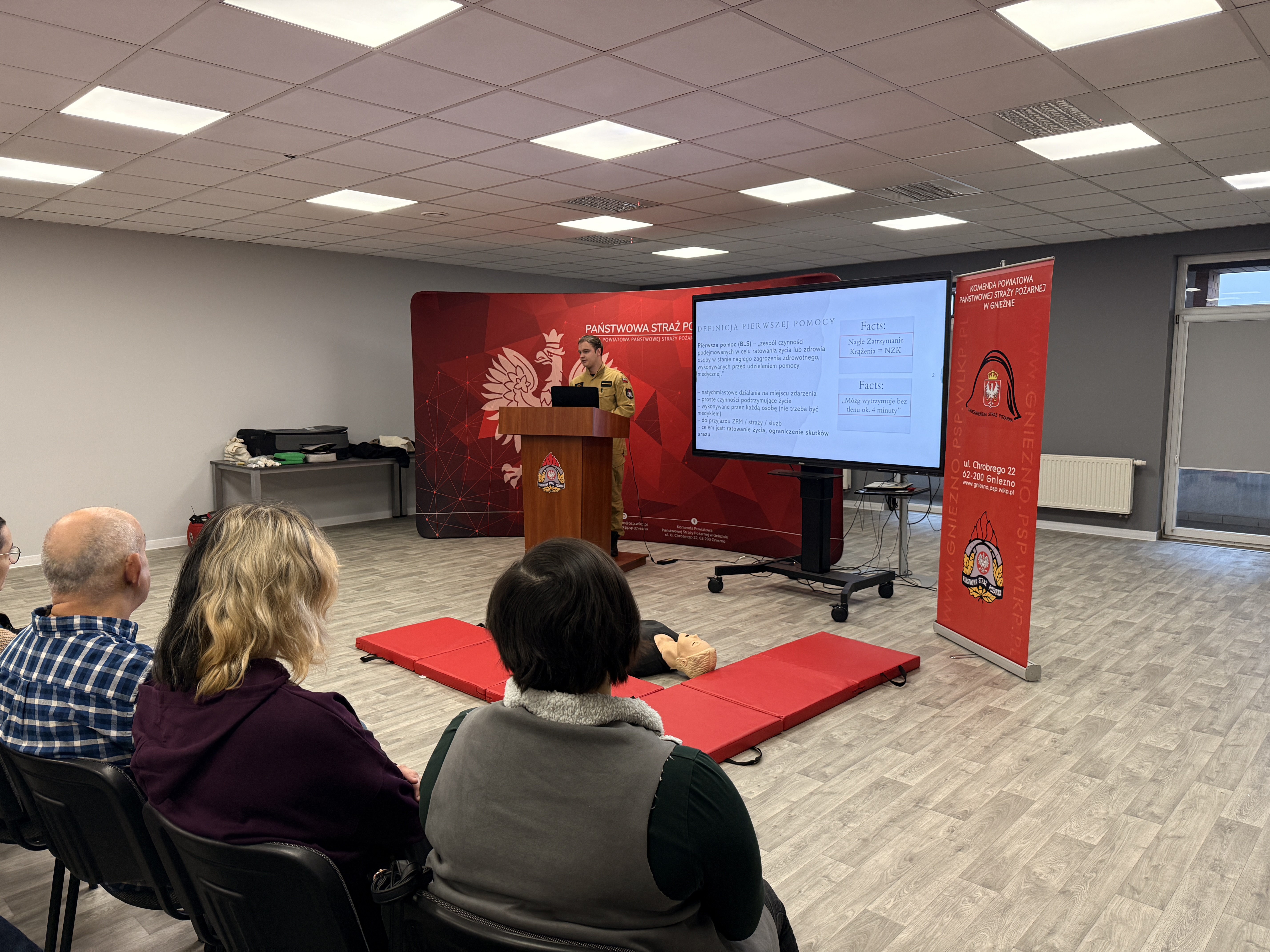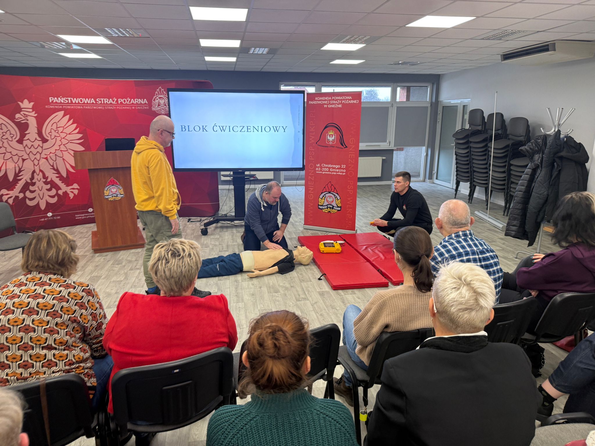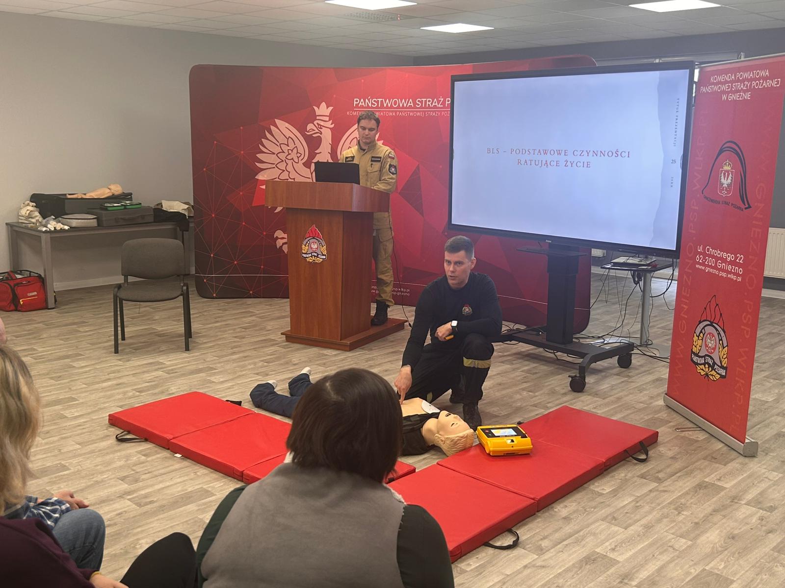 3 grudnia 2025 r. w Komendzie Powiatowej Państwowej Straży Pożarnej w Gnieźnie przeprowadzono szkolenie z zakresu udzielania pierwszej pomocy, skierowane do pracowników Biblioteki Publicznej Miasta Gniezna.