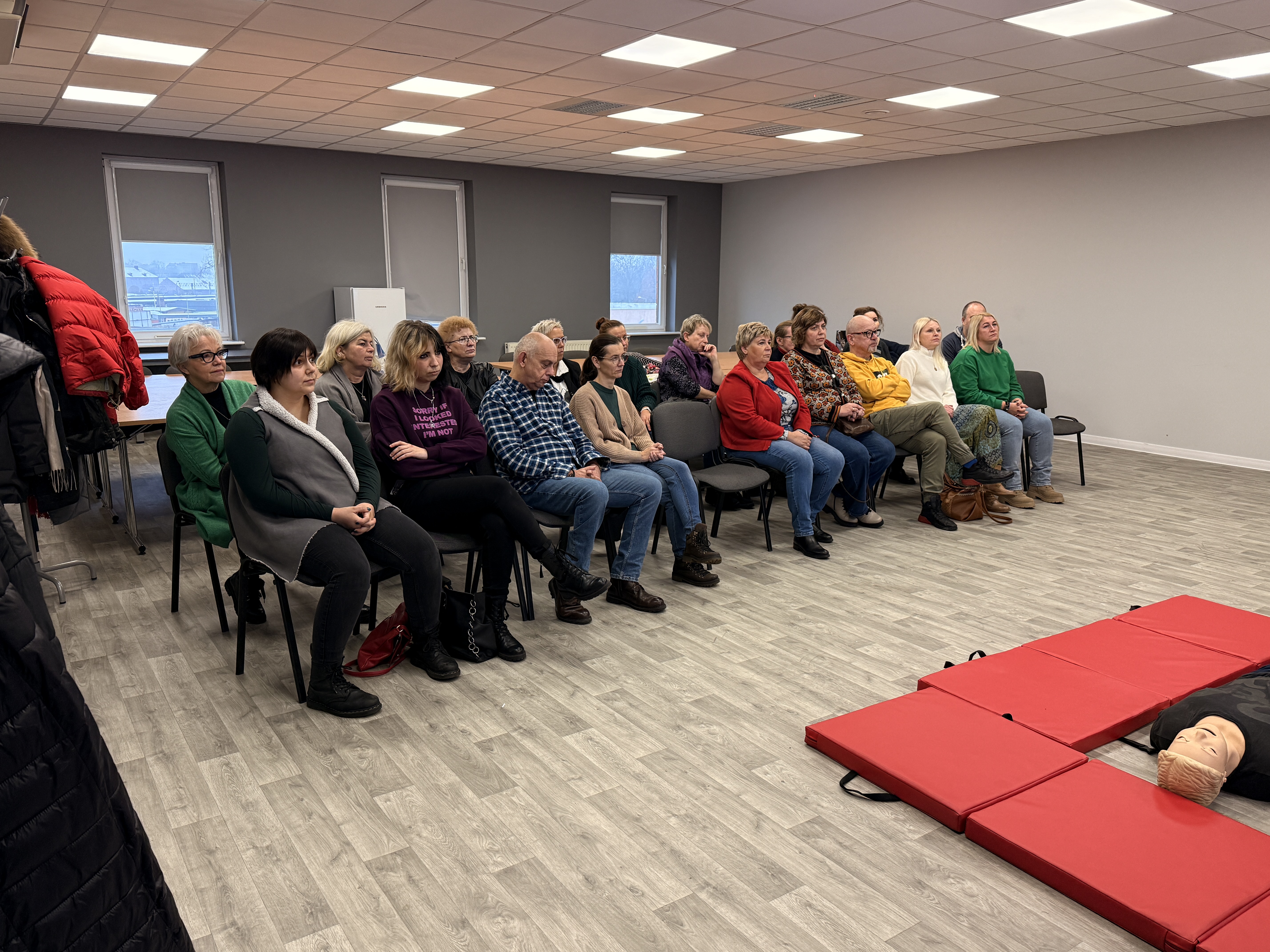 Uczestnicy aktywnie brali udział w części praktycznej, zadając pytania dotyczące realnych sytuacji, z jakimi mogą się spotkać zarówno w miejscu pracy, jak i w życiu codziennym. Zdobyta wiedza i przećwiczone umiejętności zwiększają ich gotowość do udzielenia pomocy i przyczyniają się do poprawy bezpieczeństwa społeczności lokalnej.