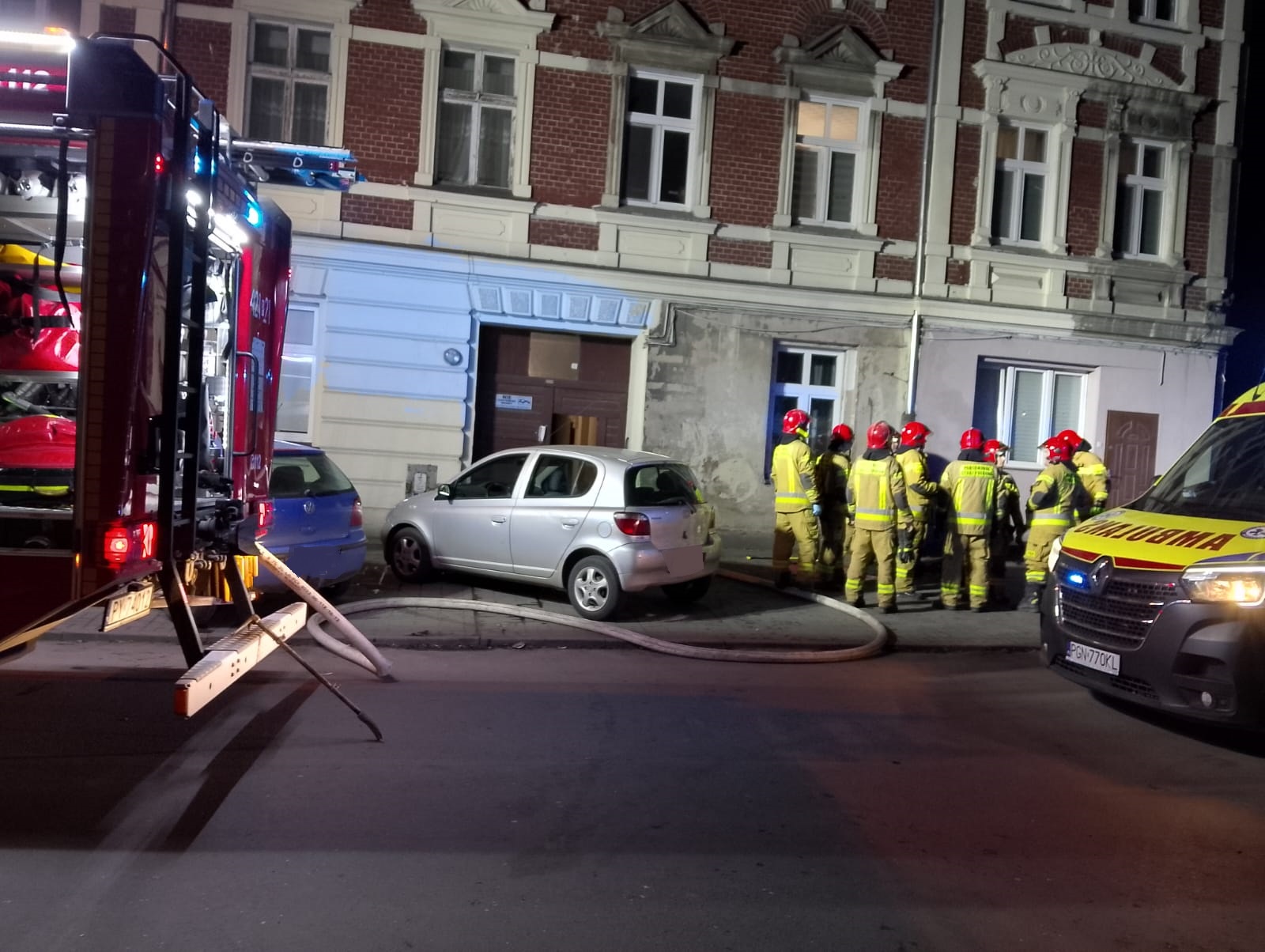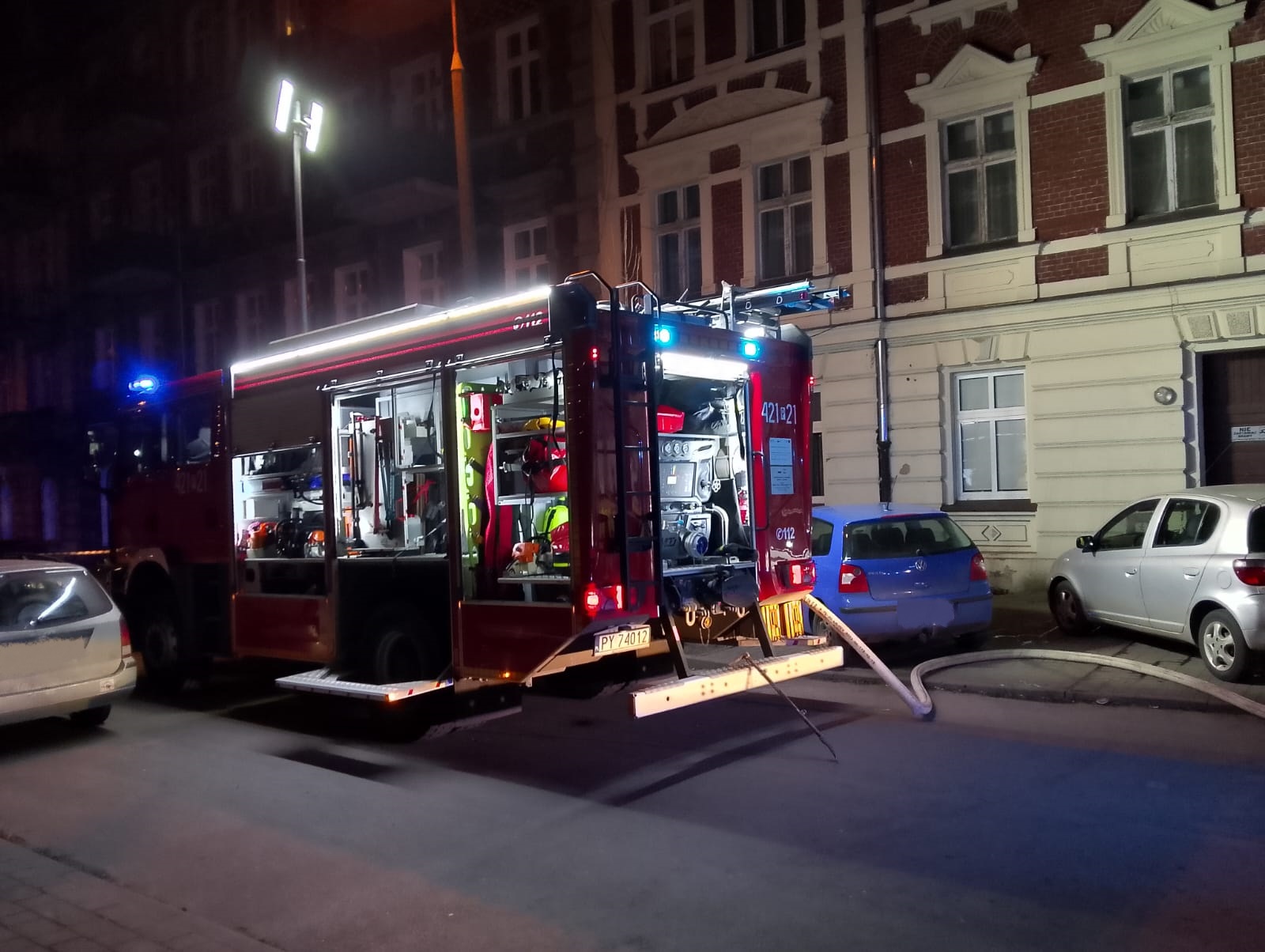 9 lutego 2025 r. o godzinie 21.17 do Stanowiska Kierowania Komendanta Powiatowego Państwowej Straży Pożarnej w Gnieźnie wpłynęła informacja dotycząca zadymienia w budynku wielorodzinnym w Gnieźnie przy ul. Św. Wawrzyńca. Natychmiast na miejsce zdarzenia zadysponowano trzy zastępy z Jednostki Ratowniczo-Gaśniczej w Gnieźnie. Po przybyciu na miejsce zdarzenia pierwszego zastępu zastano nieprzytomnego mężczyznę leżącego przy wyjściu z budynku na którym paliła się odzież. Po ugaszeniu palącej się odzieży stwierdzono zgon poszkodowanego. W międzyczasie druga rota zabezpieczona w aparaty ochrony dróg oddechowych, oraz kamerę termowizyjną weszła do pomieszczeń piwnicznych gdzie w jednej z komórek lokatorskich odnaleziono źródło ognia oraz drugą osobę, która na wskutek pożaru poniosła śmierć. Strażacy ewakuowali również poprzez klatkę schodową pięcioosobową rodzinę z mieszkania na pierwszym piętrze w którym panowało zadymienie. Wcześniej klatkę schodową oddymiono przy użyciu wentylatora nadciśnieniowego. Dalsze czynności strażaków skupiły się na ugaszeniu zarzewi pożaru, oddymieniu i przewietrzeniu piwnicy oraz reszty kamienicy. Po sprawdzeniu miernikiem wielogazowym mieszkania na pierwszym piętrze (w którym wcześniej panowało zadymienie), podjęto decyzję o powrocie ewakuowanych lokatorów do swojego mieszkania. Następnie sprawdzono pozostałe mieszkania w budynku, nie stwierdzono żadnego zagrożenia. Na miejsce zdarzenia przybył również Zastępca Komendanta Powiatowego Państwowej Straży Pożarnej w Gnieźnie mł.bryg. Łukasz Michalak. Dalsze czynności strażaków skupiły się na oświetleniu miejsca działań w czasie trwania oględzin prowadzonych przez policyjnych techników i prokuratora, którzy prowadzą czynności wyjaśniające okoliczności powstania zdarzenia.