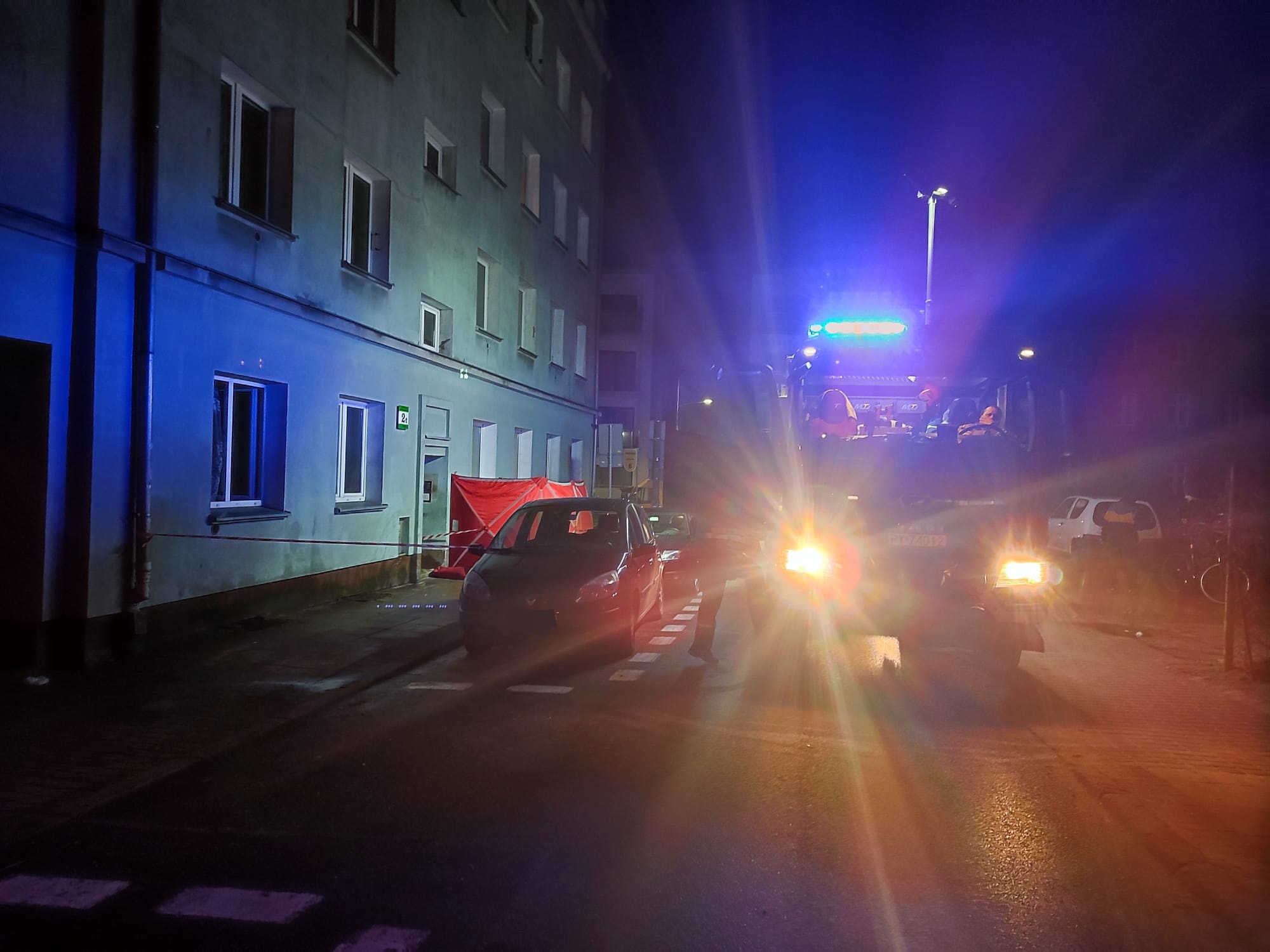 W pierwszej części akcji działania Straży Pożarnej polegały na zabezpieczeniu miejsca zdarzenia oraz otwarciu mieszkania objętego pożarem poprzez wyważenie drzwi wejściowych. Następnie strażacy zabezpieczeni w aparaty ochrony dróg oddechowych, linię gaśniczą oraz kamerę termowizyjną przeszukali pomieszczenia w których odnaleźli dwie nieprzytomne osoby. Poszkodowanych natychmiast ewakuowano na zewnątrz budynku i wspólnie z Policjantami rozpoczęto resuscytację krążeniowo-oddechową. Po przybyciu Zespołu Ratownictwa Medycznego poszkodowanych przejęli lekarz z ratownikami medycznymi, którzy kontynuowali resuscytację. Niestety pomimo wytężonych działań nie udało się uratować poszkodowanych i lekarz stwierdził ich zgon. Dalsze działania strażaków polegały na oddymieniu klatki schodowej oraz zadymionego mieszkania przy użyciu wentylatora nadciśnieniowego. Sprawdzono również pozostałe mieszkania w budynku pod kątem obecności tlenku węgla - nie stwierdzono zagrożenia. Dokładne okoliczności zdarzenia ustala Policja pod nadzorem Prokuratora.