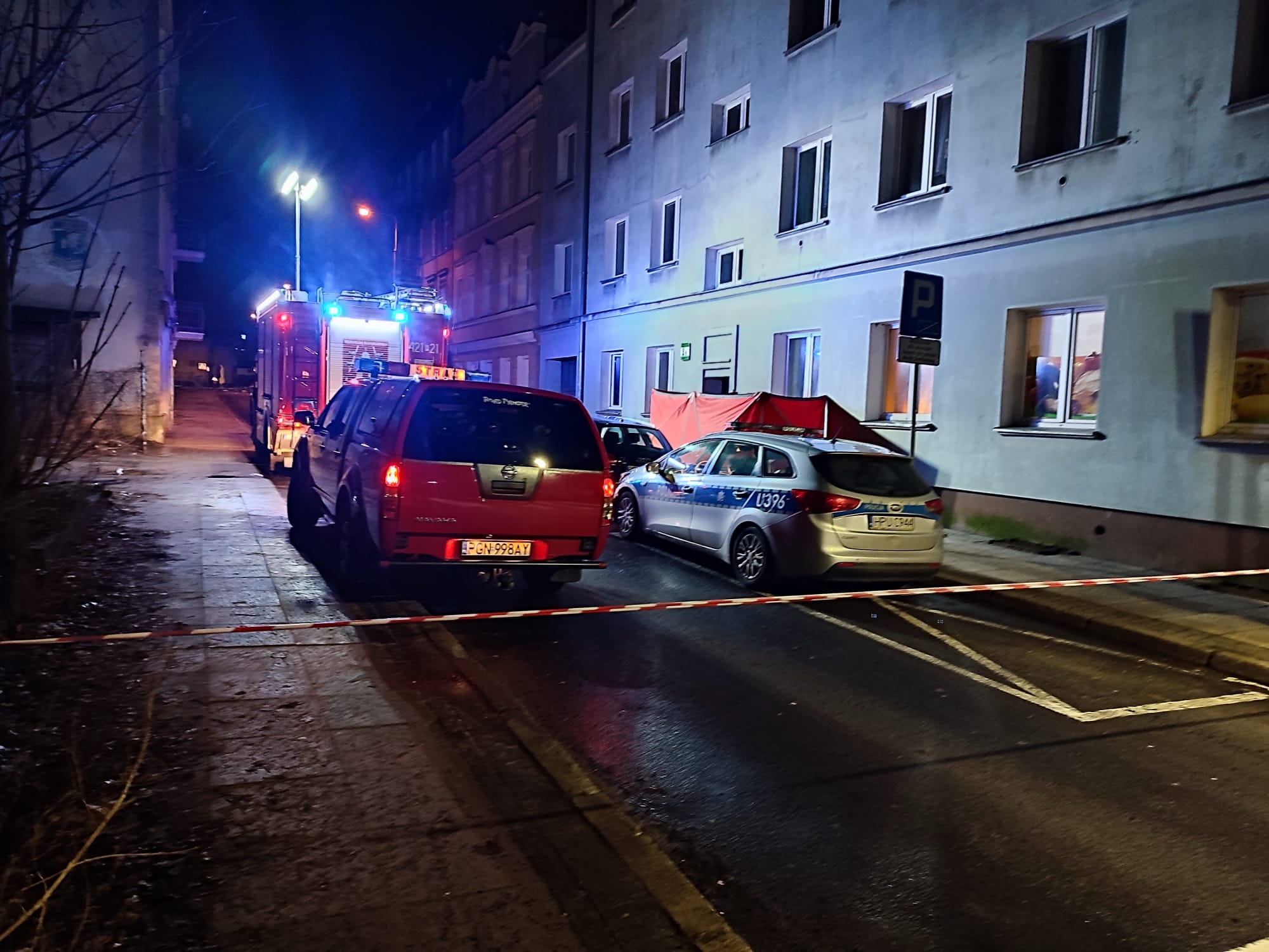 26 stycznia 2024 r. o godzinie 4.42 do Stanowiska Kierowania Komendanta Powiatowego Państwowej Straży Pożarnej w Gnieźnie wpłynęła informacja dotycząca zadymienia w budynku wielorodzinnym w Gnieźnie przy ul. Czystej. Na miejsce zdarzenia zadysponowano trzy zastępy z Jednostki Ratowniczo-Gaśniczej w Gnieźnie. Po przybyciu na miejsce zdarzenia pierwszego zastępu zastano duże zadymienie na klatce schodowej w budynku wielorodzinnym. Pożar powstał w mieszkaniu na parterze. Na miejscu obecna była Policja. Ze względu na silne zadymienie klatki schodowej i braku dymu w pozostałych mieszkaniach Kierujący Działaniem Ratowniczym podjął decyzję o nieprzeprowadzaniu ewakuacji całej kamienicy.