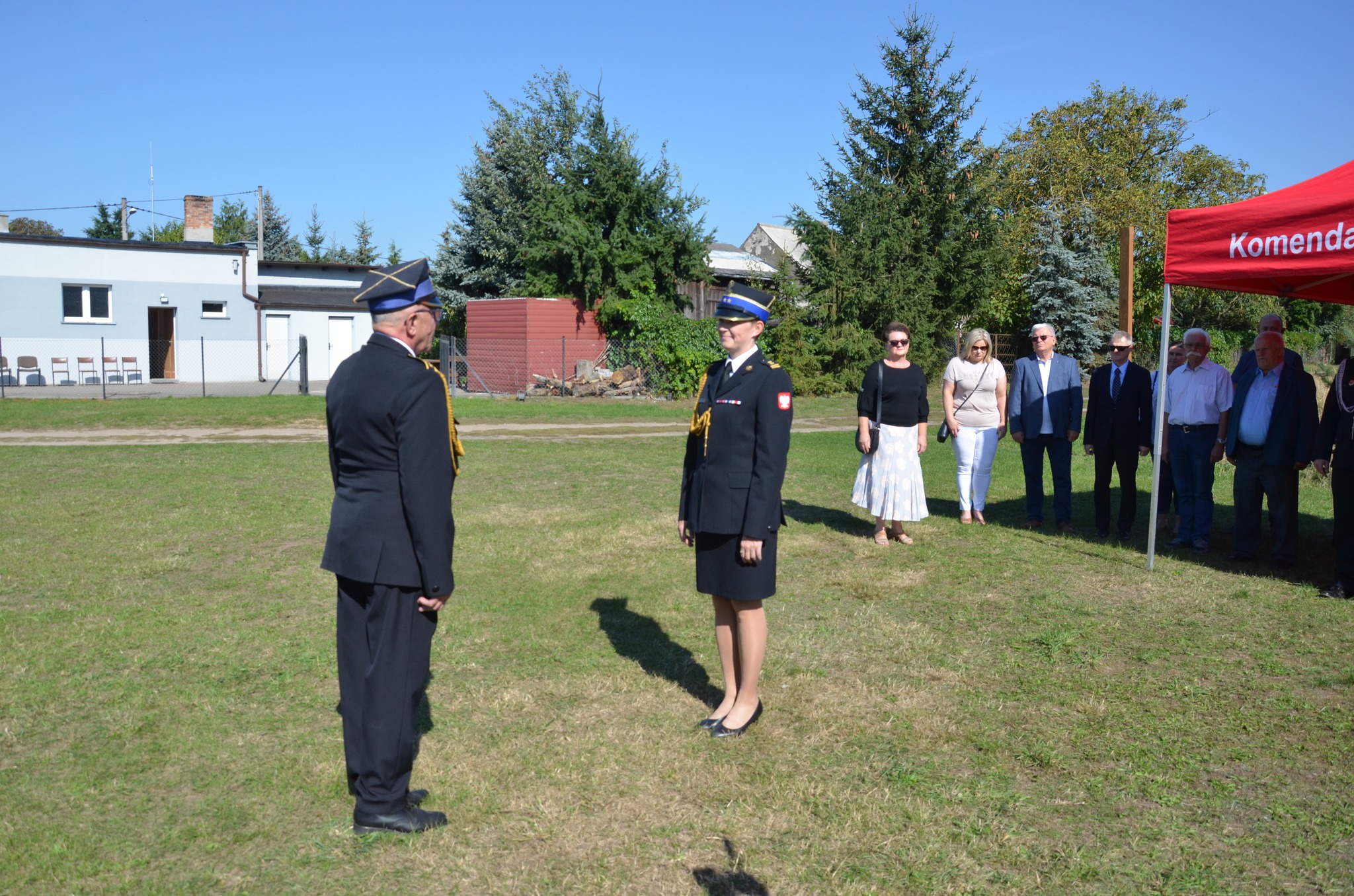 Uroczystość rozpoczęła się od złożenia meldunku komendantowi powiatowemu Państwowej Straży Pożarnej w Gnieźnie bryg. Marcie Kacprzyckiej przez dowódcę uroczystości asp. sztab. w stanie spoczynku Grzegorza Szymańskiego (komendanta gminnego jednostek OSP gminy Kiszkowo). Następnie dh Rafał Wysiecki – prezes Ochotniczej Straży Pożarnej w Dąbrówce Kościelnej, witając zaproszonych gości podkreślił trud, wysiłek oraz pomoc wielu osób zaangażowanych w przedsięwzięcie jakim było staranie się o tak nowoczesny samochód.
