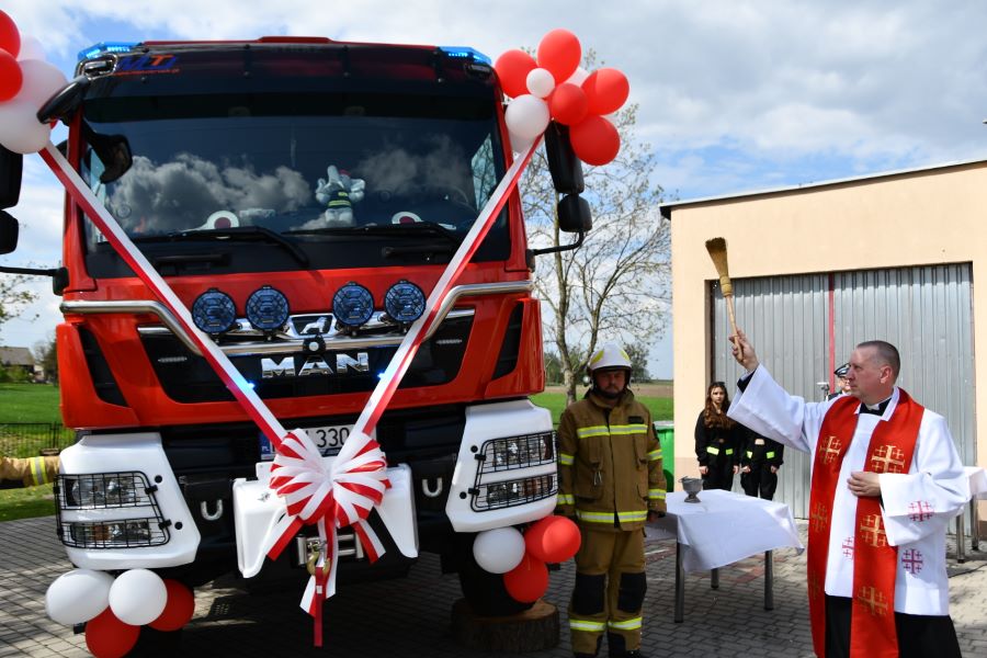 Następnie ks. Michał Drzewiecki - proboszcza parafii pw. Wszystkich Świętych w Mielżynie dokonał uroczystego poświęcenia pojazdu.