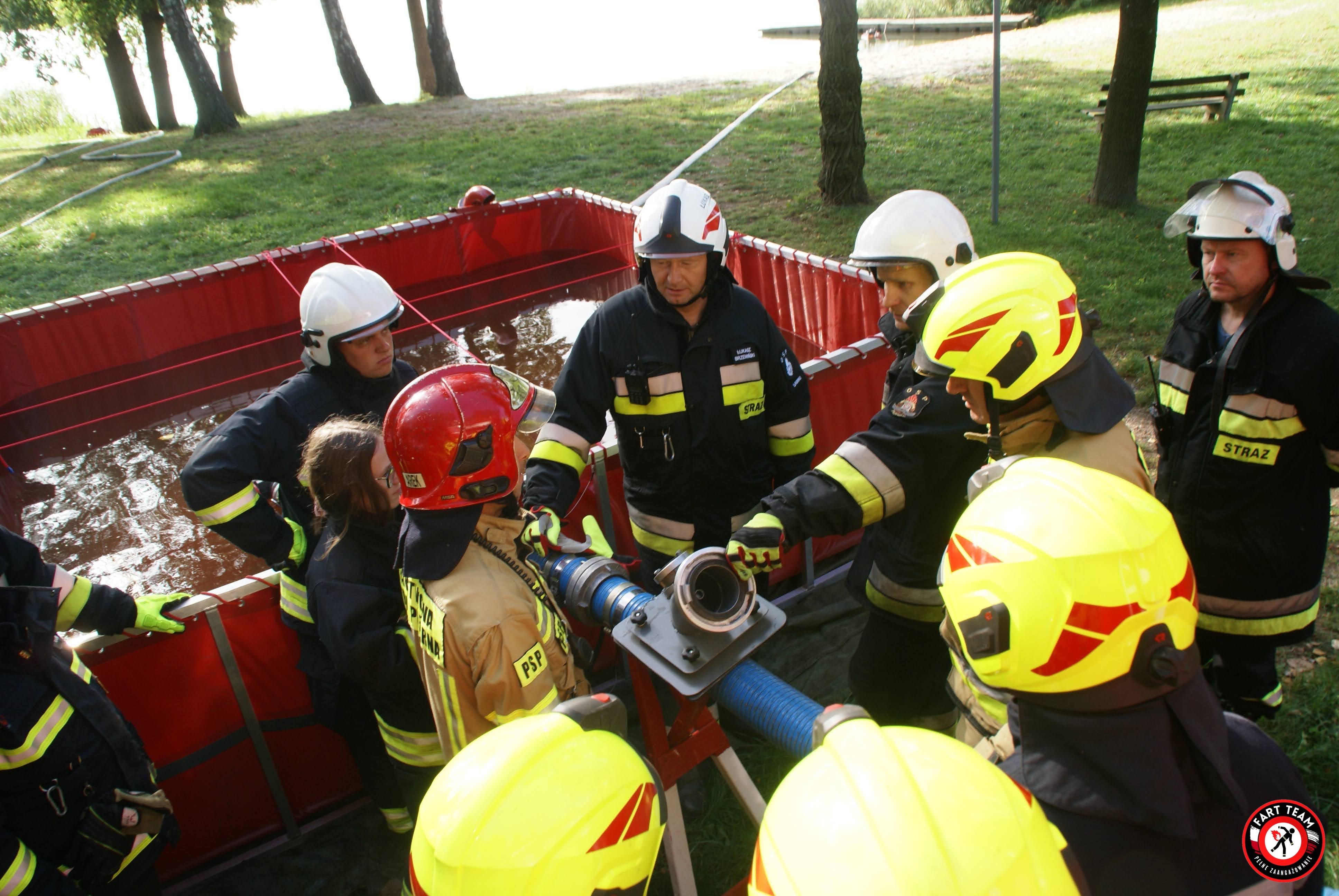 - poszerzenie wiedzy z zakresu organizacji zaopatrzenia wodnego, w tym budowy punktu czerpania wody, budowy buforu wodnego, dostarczenia wody do pożaru,