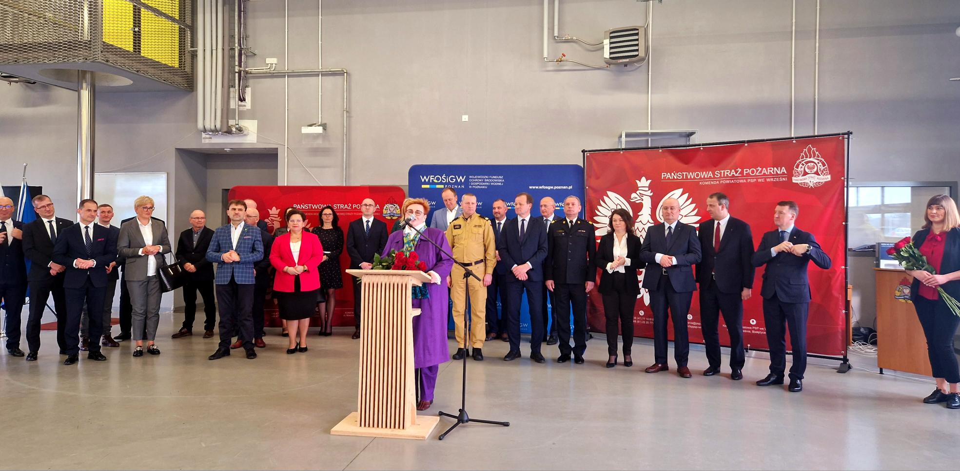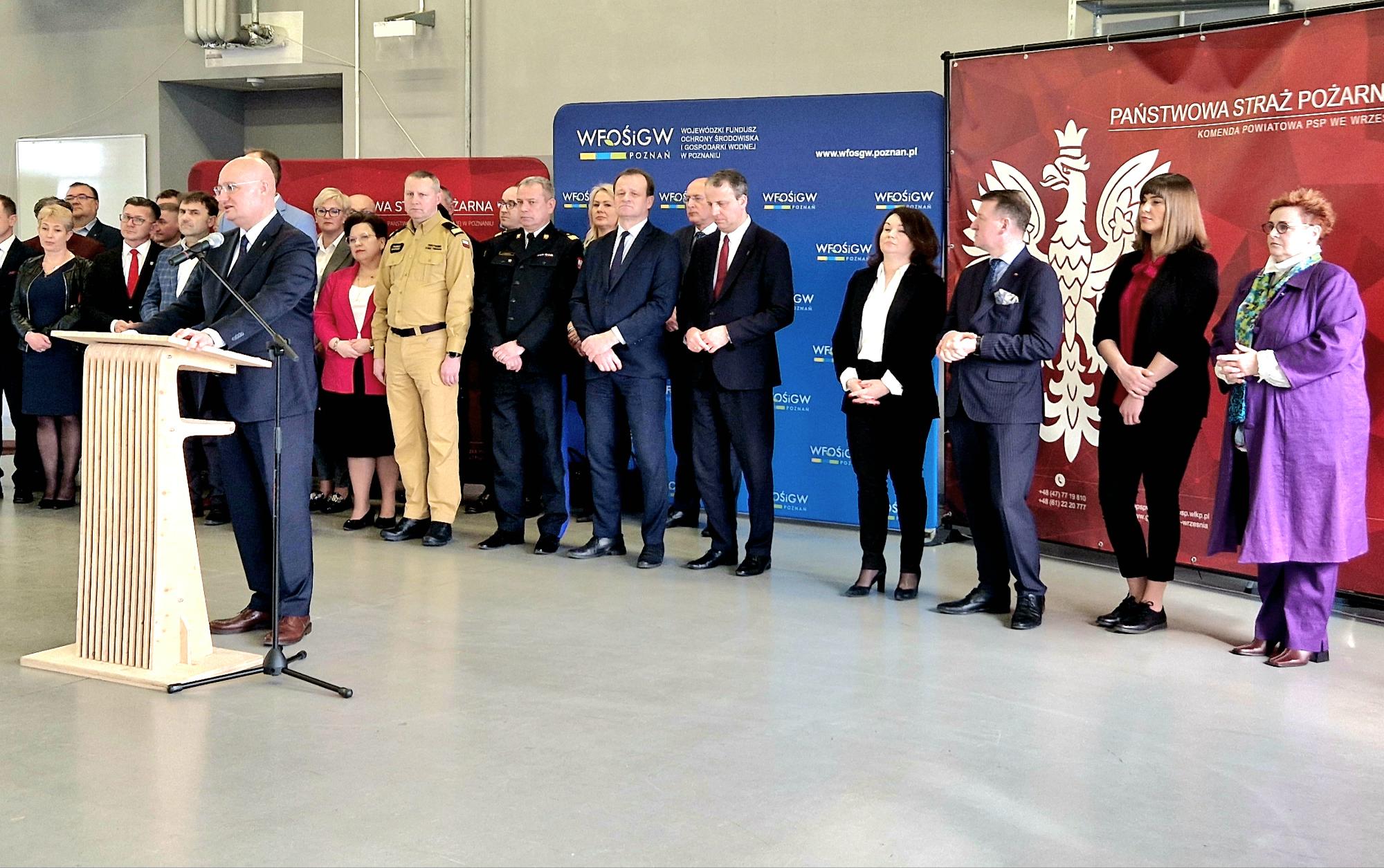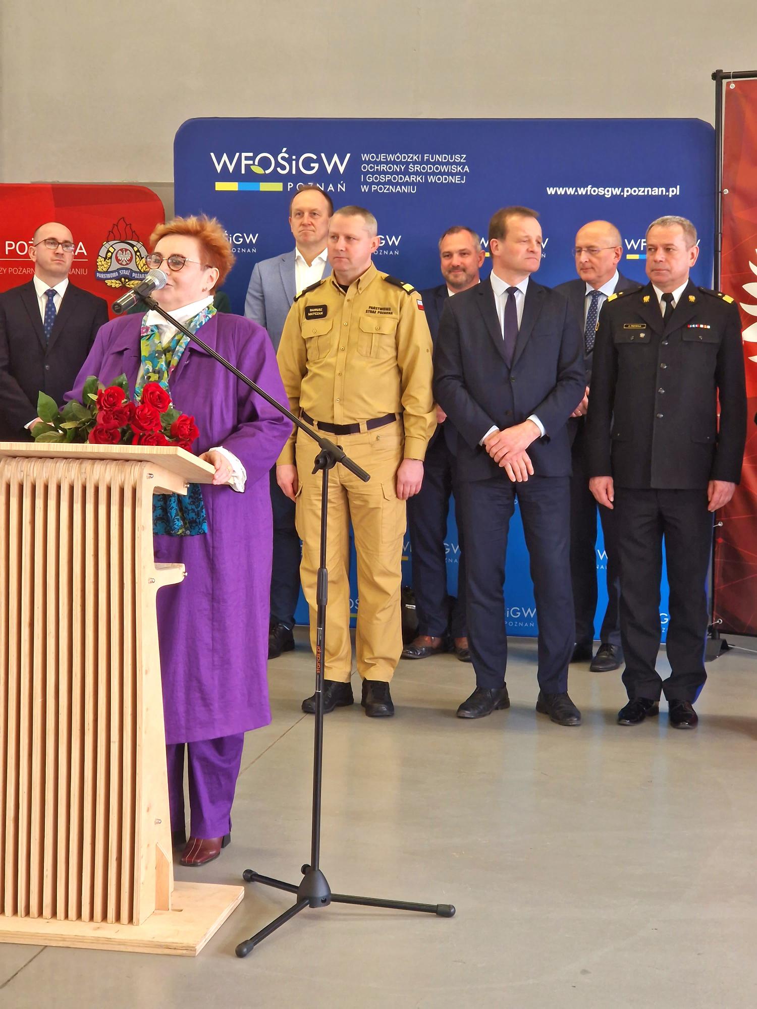 Prezes Zarządu Wojewódzkiego Funduszu Ochrony Środowiska i Gospodarki Wodnej w Poznaniu, Pani Jolanta Ratajczak oraz Zastępca Zarządu WFOŚiGW w Poznaniu, Pani Aleksandra Durkowska powitały szanownych gości uroczystości: Ministra, członka Rady Ministrów, Sekretarza Komitetu Rady Ministrów do Spraw Bezpieczeństwa – Pana Zbigniewa Hoffmanna, Posła na Sejm RP – Pana Witolda Czarneckiego, Posła na Sejm RP – Pana Zbigniewa Dolatę, Posła na Sejm RP – Pana Leszka Galembę, Wojewodę Wielkopolskiego – Pana Michała Zielińskiego, Wicewojewodę Wielkopolski – Panią Anetę Niestrawską, Zastępcę Komendanta Głównego Państwowej Straży Pożarnej – nadbryg. Arkadiusza Przybyłę, Wielkopolskiego Komendanta Wojewódzkiego Państwowej Straży Pożarnej – bryg. Dariusza Matczaka, Komendantów Miejskich i Powiatowych Państwowej Straży Pożarnej z Gniezna, Konina, Koła, Słupcy, Śremu, Środy Wielkopolskiej, Turku i Wrześni.
