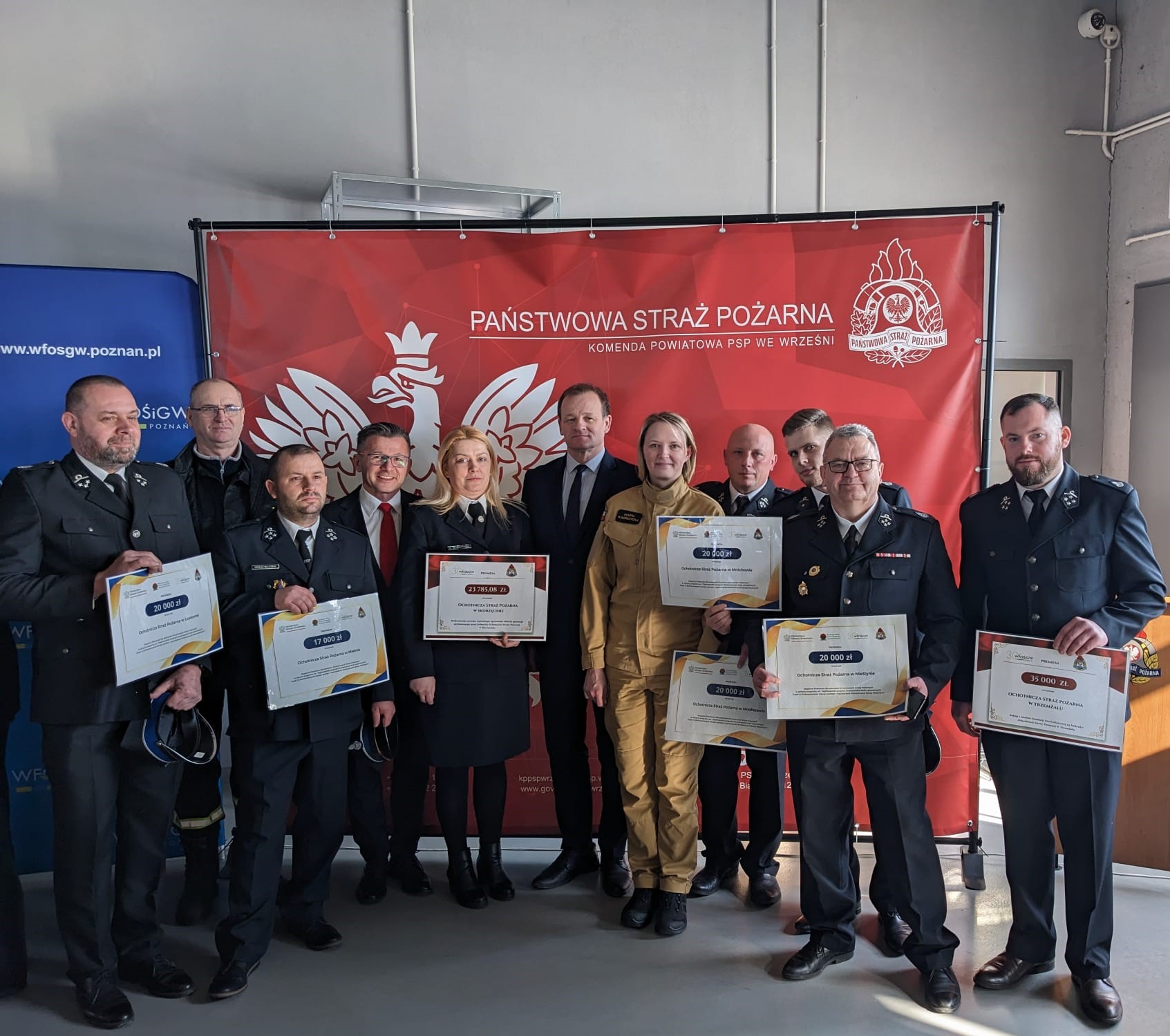 20 marca br. w siedzibie Komendy Powiatowej Państwowej Straży Pożarnej we Wrześni odbyło się uroczyste wręczenie promes Wojewódzkiego Funduszu Ochrony Środowiska i Gospodarki Wodnej w Poznaniu jednostkom Państwowej i Ochotniczej Straży Pożarnej dla ośmiu powiatów z terenu Wielkopolski.
