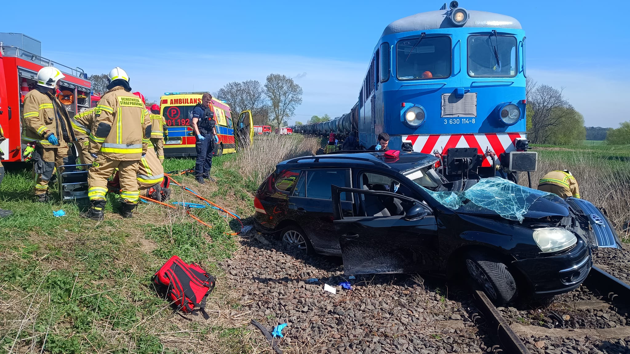 Działania Straży Pożarnej polegały na zabezpieczeniu miejsca zdarzenia oraz przeprowadzeniu rozpoznania ratowniczego. Następnie strażacy przy użyciu narzędzi hydraulicznych wykonali dostęp do poszkodowanego kierowcy. Na miejsce zdarzenia przybył również Zespół Ratownictwa Medycznego oraz śmigłowiec Lotniczego Pogotowia Ratunkowego – strażacy zabezpieczyli lądowisko. Po wstępnym zaopatrzeniu medycznym poszkodowany został ewakuowany z uszkodzonego pojazdu do karetki na noszach typu deska. Po ustabilizowaniu stanu poszkodowanego został on przeniesiony do śmigłowca LPR i przetransportowany do szpitala w Poznaniu. Na miejsce przyjechał przedstawiciel PKP PLK SA - zarządcy linii kolejowej. Na skutek wypadku doszło do całkowitego zablokowania przejazdu kolejowego oraz drogi. Na czas prowadzanych działań Policja wyznaczyła objazdy. Dokładne okoliczności zdarzenia wyjaśnia Policja.