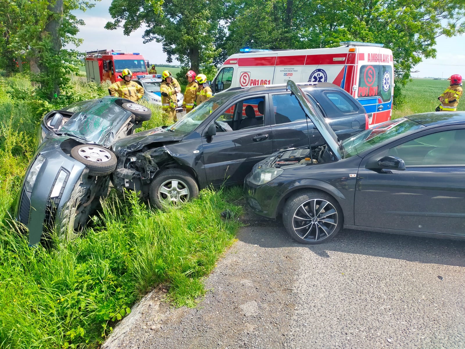 1 czerwca 2022 r. o godzinie 12.34 do Stanowiska Kierowania Komendanta Powiatowego Państwowej Straży Pożarnej w Gnieźnie wpłynęła informacja o wypadku trzech samochodów osobowych w miejscowości Czeluścin, gm. Czerniejewo. Na miejsce zdarzenia zadysponowano jednostki Straży Pożarnej z terenu powiatu gnieźnieńskiego oraz wrzesińskiego. Po przybyciu na miejsce zdarzenia pierwszego zastępu zastano trzy uszkodzone pojazdy na skrzyżowaniu z DK 15. Jedno z aut znajdowało się w rowie w pozycji na boku natomiast dwa pojazdy stały częściowo na drodze i były na kołach. Samochodami podróżowało łącznie trzy osoby - wszystkie osoby opuściły swoje pojazdy przed przybyciem straży pożarnej.