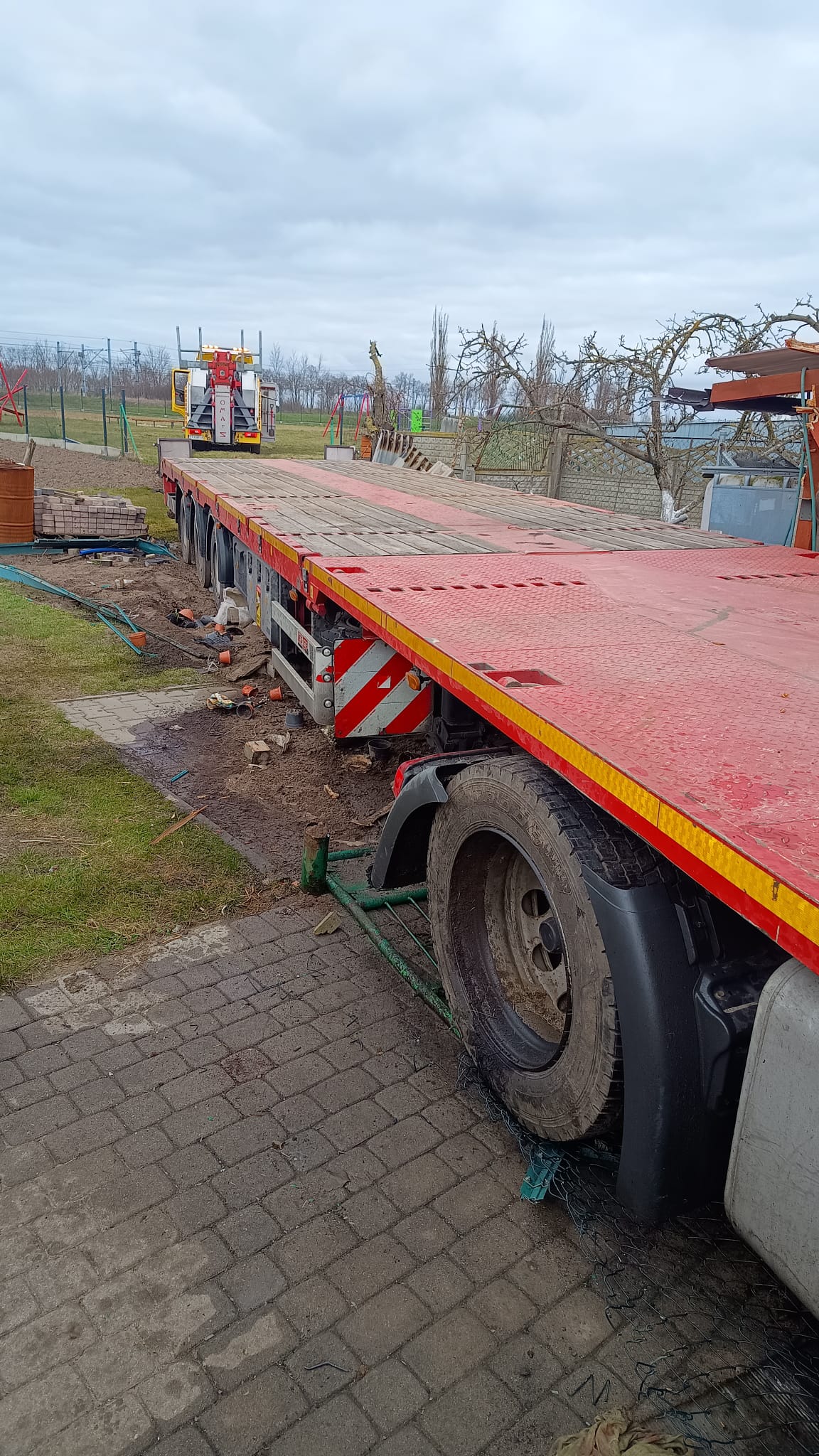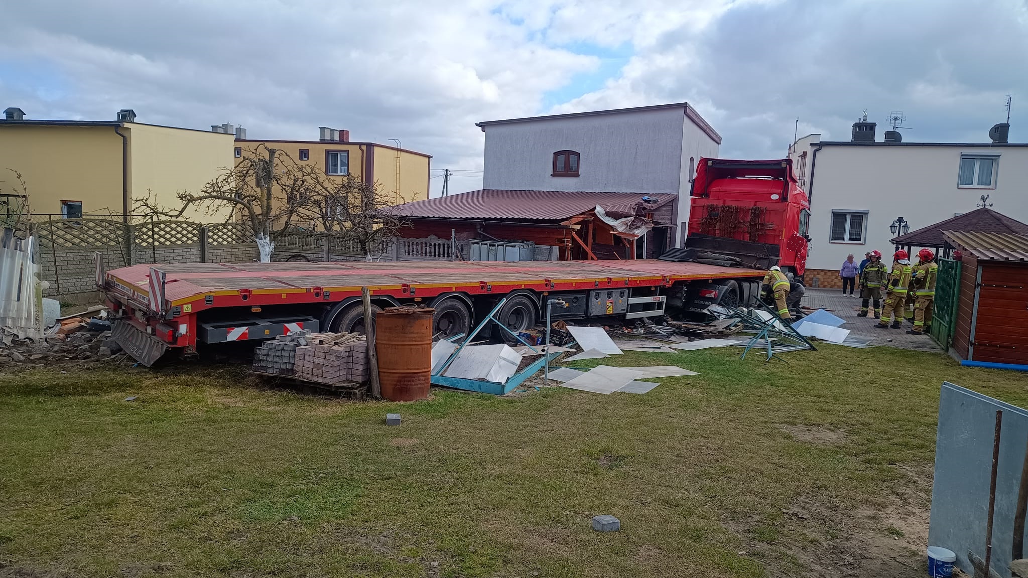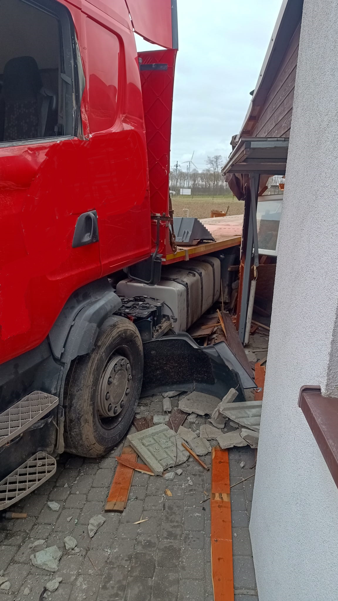 Z drogi na podwórko - TIR zniszczył drewniany garaż